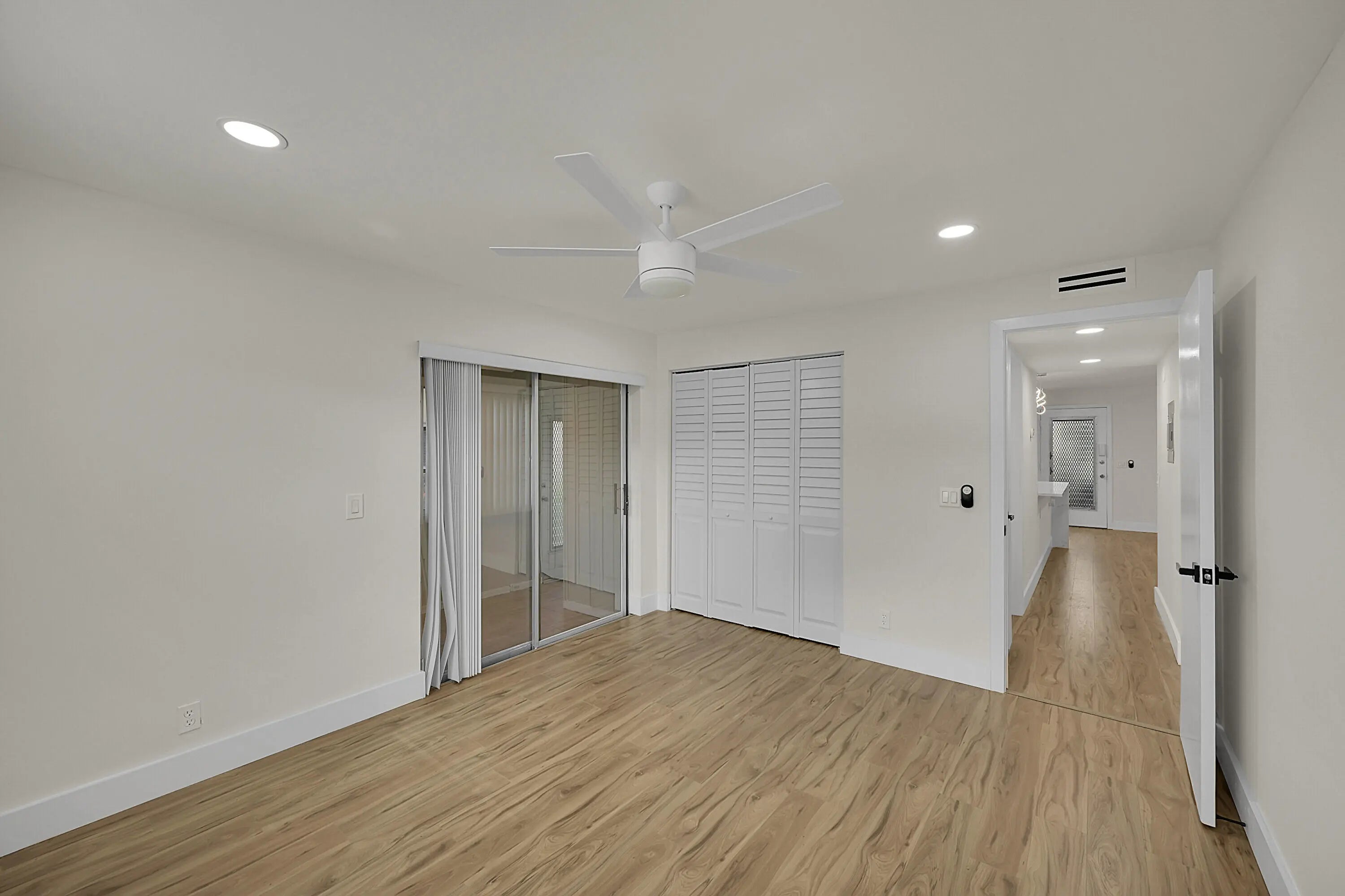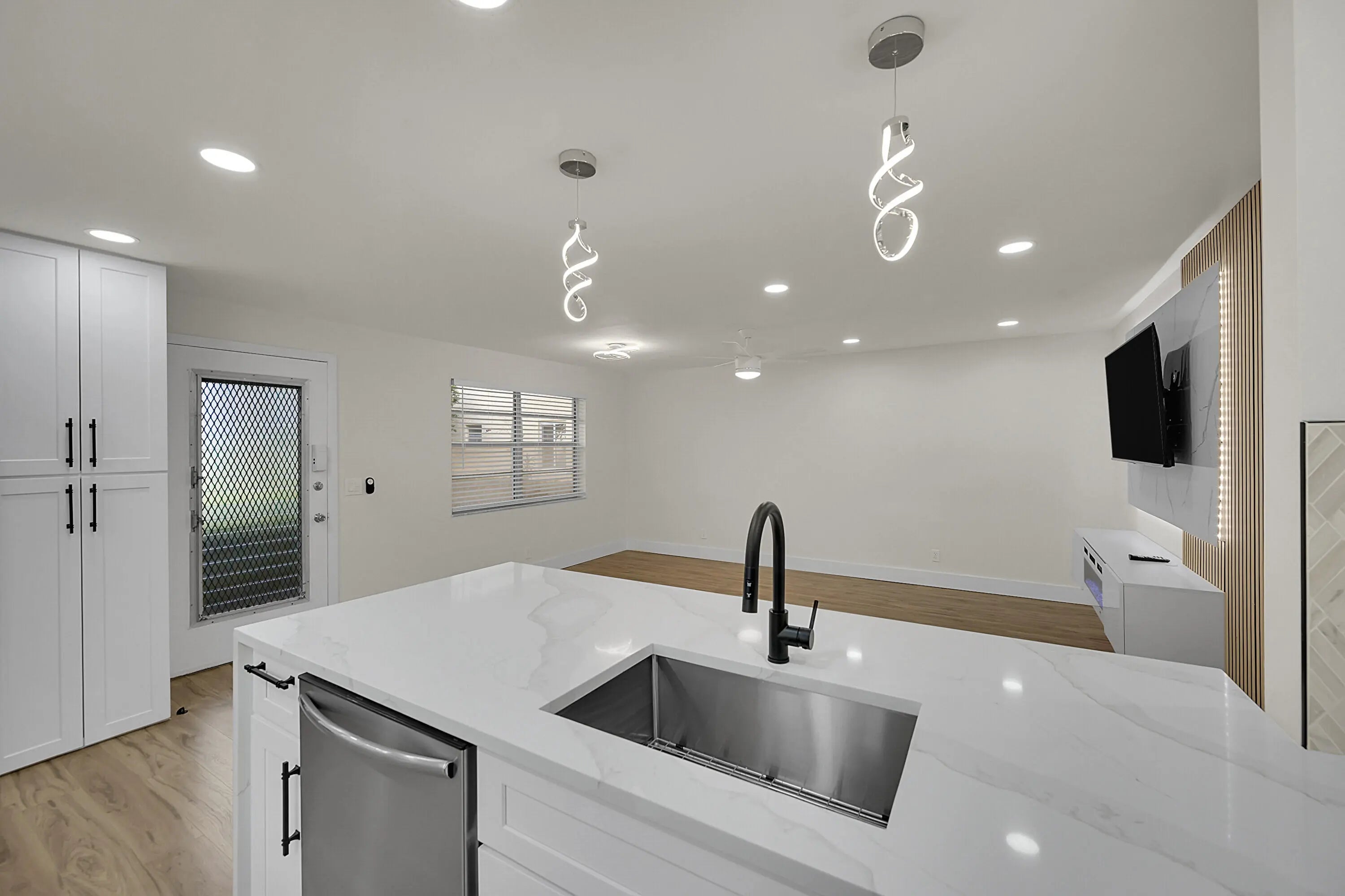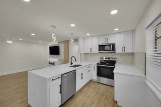 Fully renovated 2-bedroom, 2-bath condo designed for easy living, entertaining, and peace of mind. From the open kitchen to the turnkey finishes, this home lets you move in without lifting a finger.The open-concept living space features a modern kitchen with brand new white cabinets, quartz countertops, waterfall island, and stainless steel appliances. Wide-plank laminate flooring flows throughout, leading to a bright living area with a custom LED-lit entertainment wall. Both bathrooms are fully updated with new tile, vanities, toilets, and fixtures, and the unit has fresh paint, recessed lighting, and an in-unit washer and dryer.Enjoy resort-style amenities including pools, golf, theater, and multiple clubhouses. A beautifully upgraded home in a community that offers