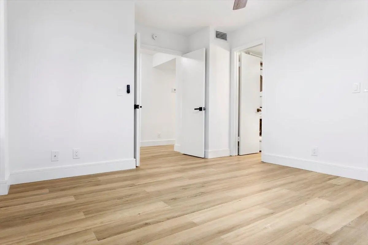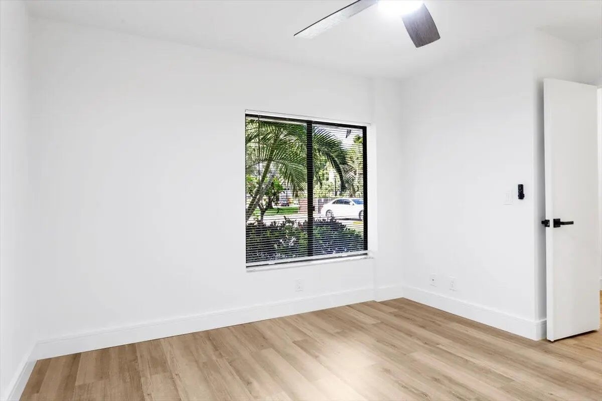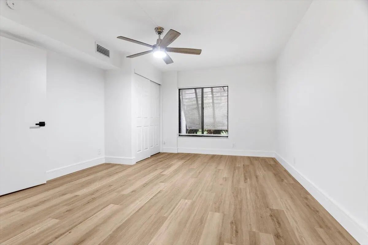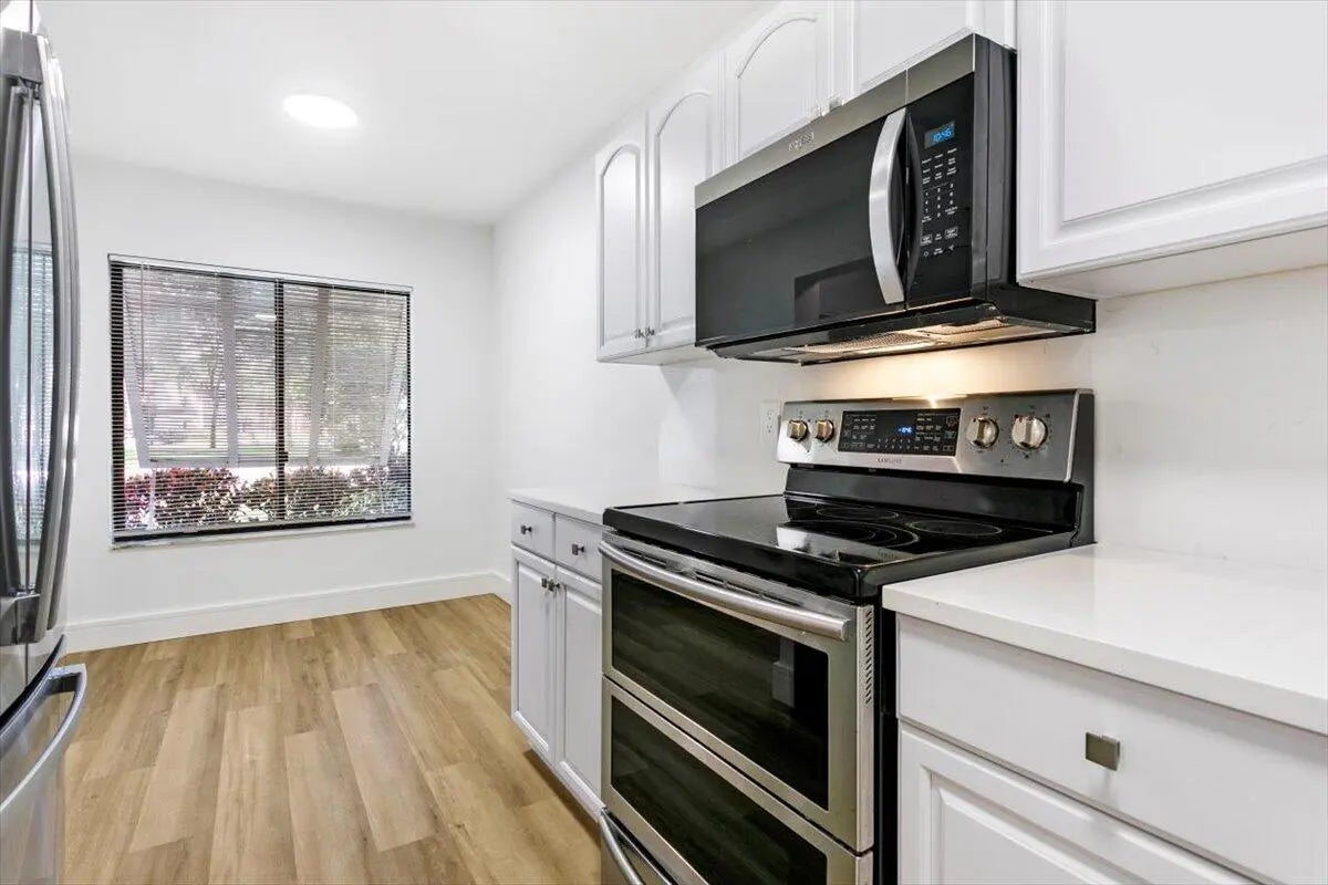 Experience South Florida living in this beautifully renovated first-floor 2-bedroom, 2-bath corner residence located in the desirable 55+ gated community of Banyan Springs. This inviting home features new luxury vinyl flooring, upgraded baseboards, fresh interior designer paint, modernized bathrooms, and an updated kitchen with quartz countertops and backsplash, pantry with pull-out drawers and custom lighting. The spacious main living area flows seamlessly to a enclosed patio overlooking lush landscaping, and inviting extension of the home ideal for everyday enjoyment or entertaining. The primary suite offers E exposure, generous closet space, and a renovated bath with walk-in shower. The guest bedroom has ample closet space, renovated bath w walk-in shower and a full-size stackable W/D.