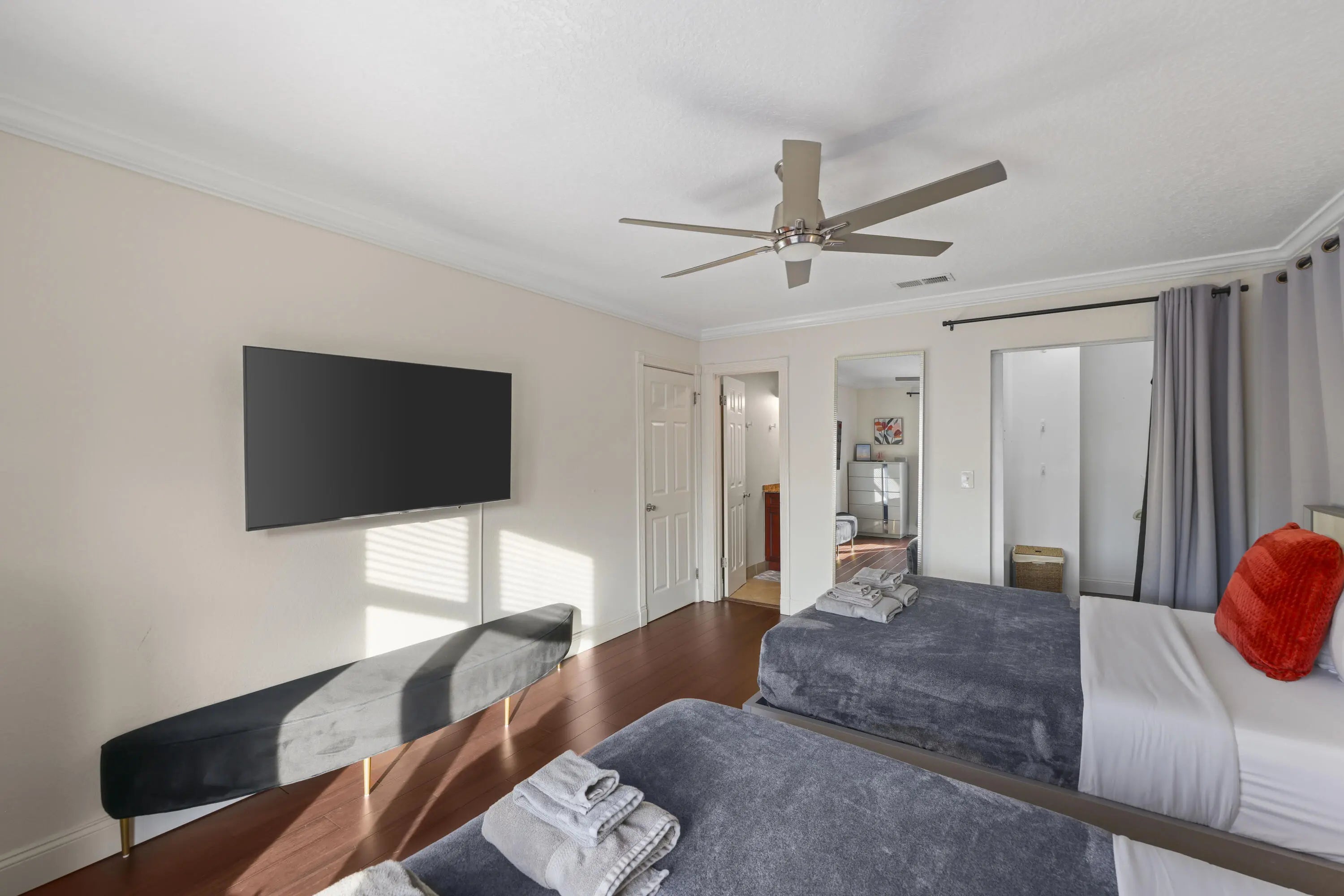 Discover the perfect move-in-ready home in Delray Beach--just 1 mile to the beach and minutes to Downtown Delray's shops, restaurants, bars, and vibrant Atlantic Avenue lifestyle. This fully furnished 3-bedroom, 3-bathroom, 1,655 sq ft property is ideal for full-time living, seasonal use, investment, or Airbnb / short-term rental opportunities. With no HOA, this home offers exceptional flexibility and freedom rarely found this close to the coast.Step inside to an open-concept layout featuring vaulted wood ceilings, abundant natural light, and a seamless flow for entertaining. Each of the three bedrooms includes its own en-suite bathroom and walk-in closet, providing privacy and comfort for guests, renters, or family members.The backyard is a true private oasis