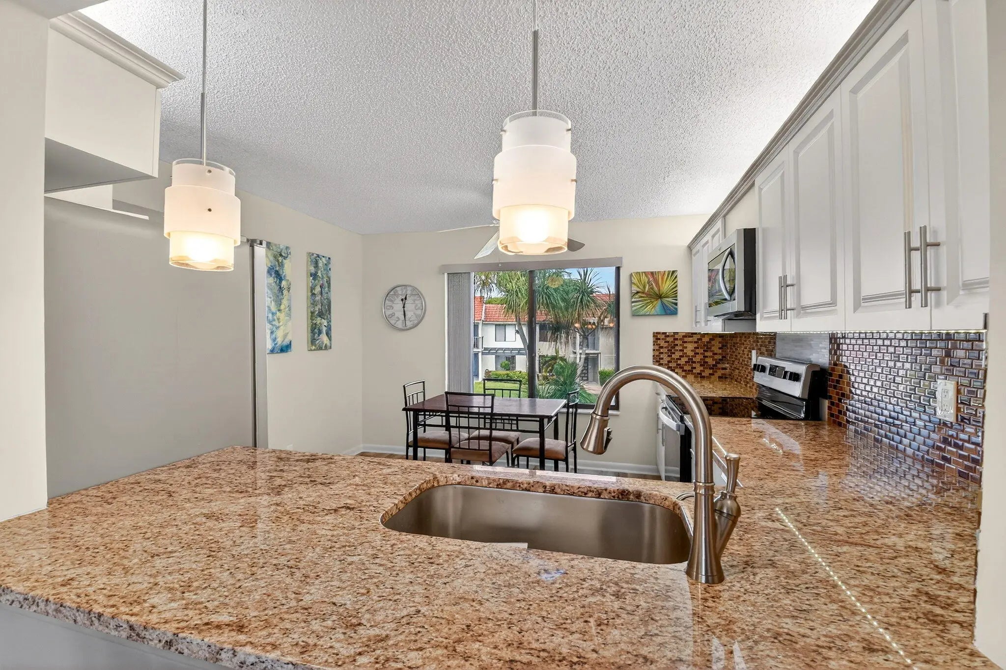 Spacious 2nd-floor, 2-bedroom, 2-bath condo located in Indian Spring Country Club. Enjoy stunning nightly sunsets and a fabulous golf course views from your enclosed patio. The updated kitchen features new flooring and stainless steel appliances, and the home offers valuable upgrades including a new AC unit installed in 2022, a new washer and dryer added in 2024, and a new microwave and oven installed in 2022. Located near the satellite pool, the condo provides comfort, convenience, and a serene setting. The community offers a 24-hour manned gate, and golf and social memberships are available but not mandatory. The unit is also being sold partially furnished,