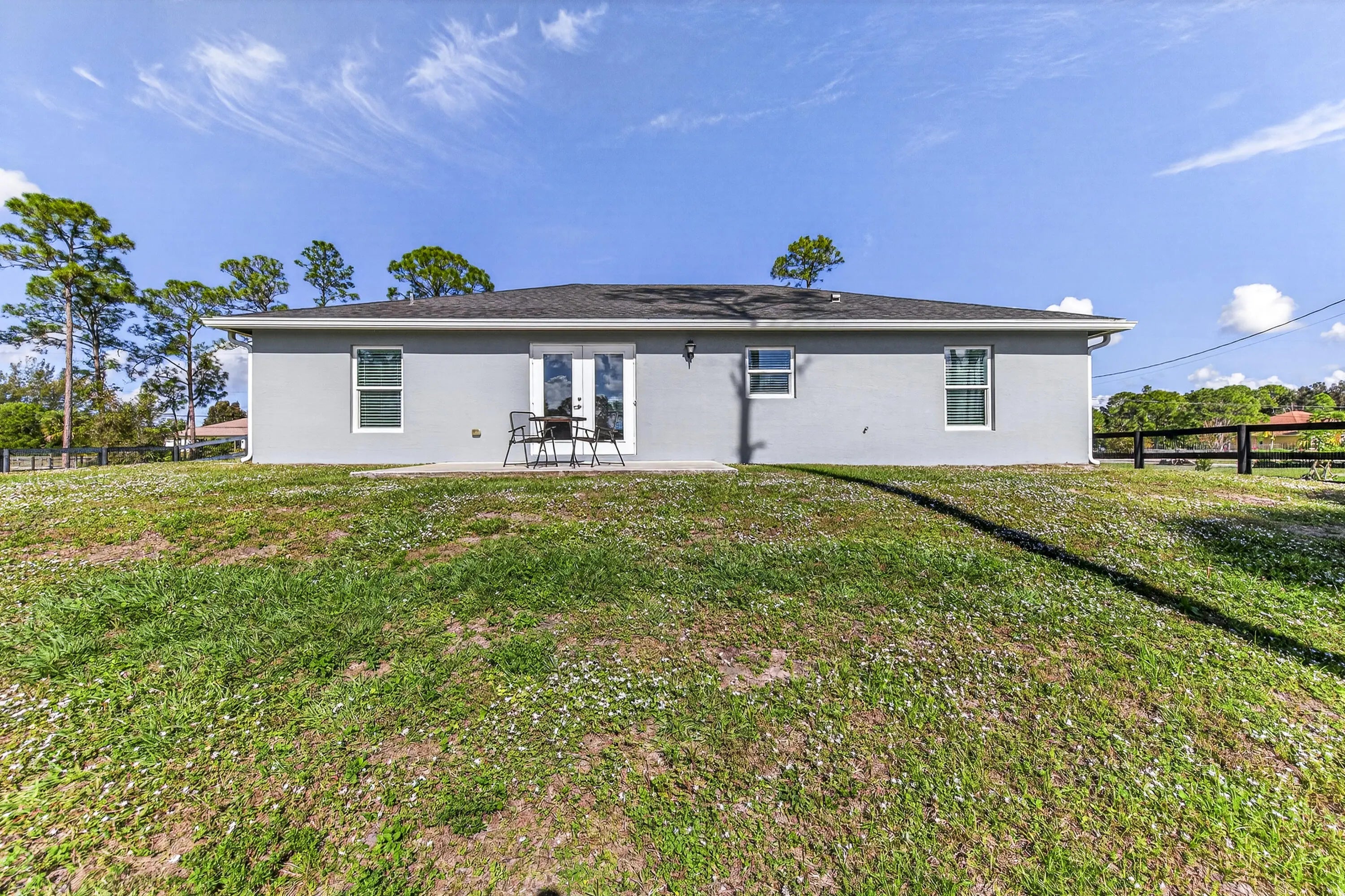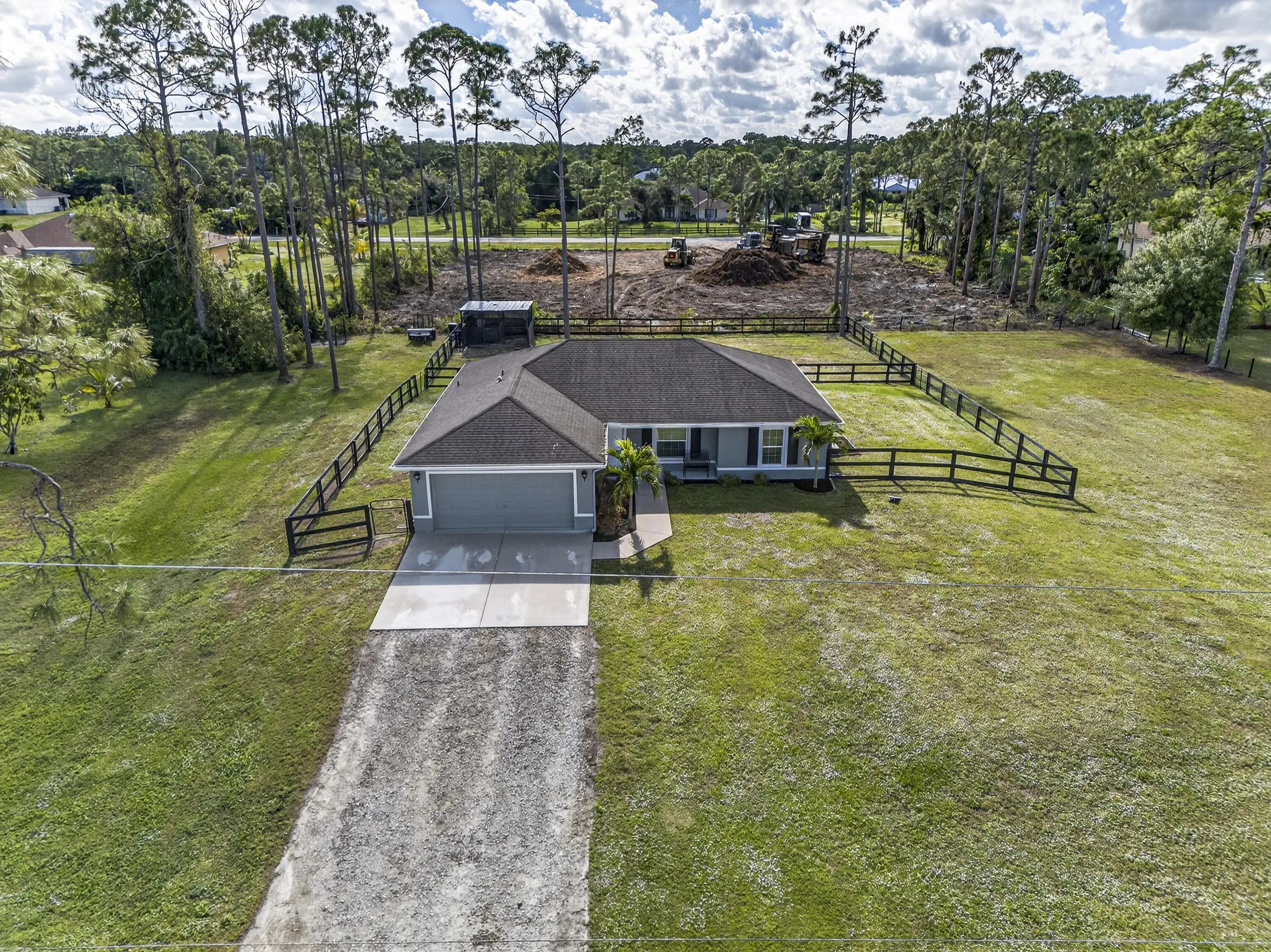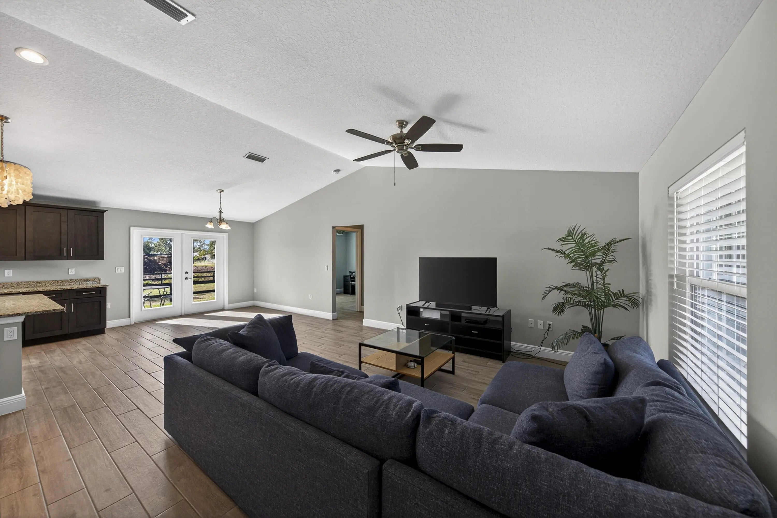 MOVE IN READY! This Home shows Pride of Ownership w/ Original Owners! Built in 2019 on 1.15 Acres, this lovingly maintained home boasts vaulted ceilings to maximize space & give a large airy feel. The focal point is the impressive great room w/ all the natural light. This Synergy Gold Series home is up to 50% more energy efficient than avg new construction homes! Freshly painted, & tile wood look floors just steam cleaned. Hurricane impact windows, Granite counters, Reverse Osmosis water treatment, ceiling fans, stainless steel appliances! French Doors lead you out to your generous fenced-in backyard! Versatile Outdoor Enclosure w/ Ready-to-Use Garden/Hobby Farm Space. Generator hook-up in Garage. Space for RV, Boat, Trailer, Etc.! With 1438sq ft under air, this house has it all!