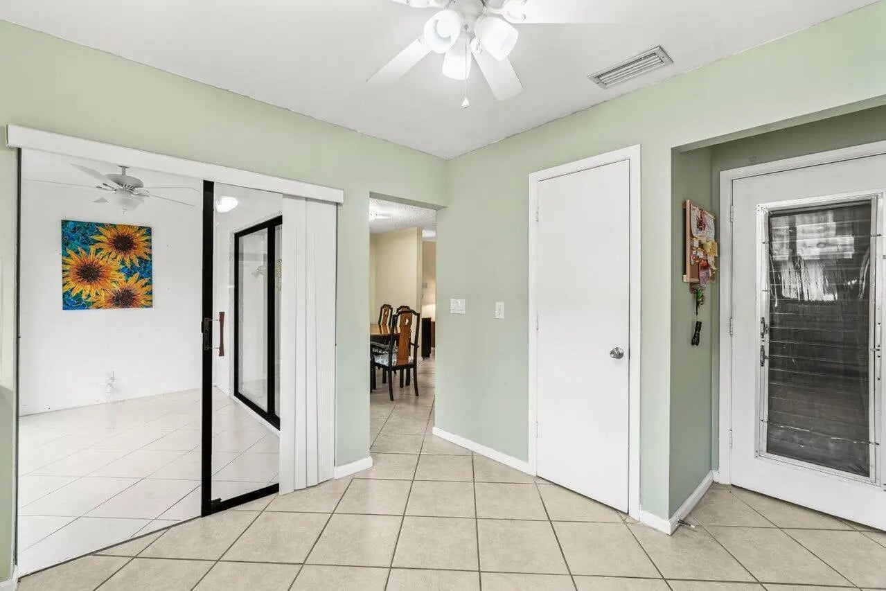 Step into this cozy yet bright 2-bedroom, 2-bath residence featuring modern impact windows and doors and a 1-car garage complemented by an exceptional long driveway accommodating two additional vehicles. Natural light fills the home, highlighting the inviting Florida room, perfect for relaxing or entertaining.The primary suite offers impressive storage with a walk-in closet, grab closet, and linen closet, creating a well-organized and functional retreat. The kitchen showcases white cabinetry, granite countertops, and a clean, timeless design that opens seamlessly to the living space.Ideally located just steps from the clubhouse and community pool, this home blends comfort, convenience in the center of Boynton Beach surrounded by dining and nearby shopping.