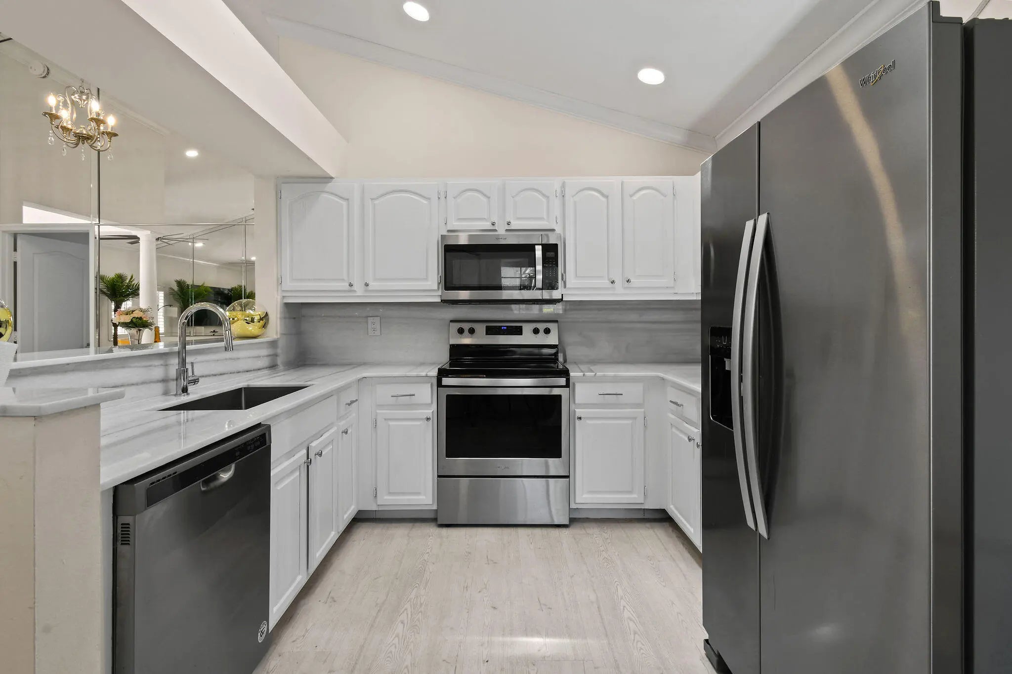 Welcome to your renovated oasis in Breakers West! This 3 bedroom, 2 bathroom home exudes elegance and comfort. The kitchen features new, authentic Italian marble countertops and backsplash, creating a sophisticated ambiance for cooking and entertaining. Both bathrooms have been tastefully renovated, offering modern finishes. Each bedroom boasts built-out closets, providing ample storage space and organizational solutions. Step outside to discover a spacious backyard patio, ideal for hosting gatherings or simply enjoying the beautiful Florida weather. Located in the prestigious Breakers West community, this home offers a perfect blend of luxury and convenience.