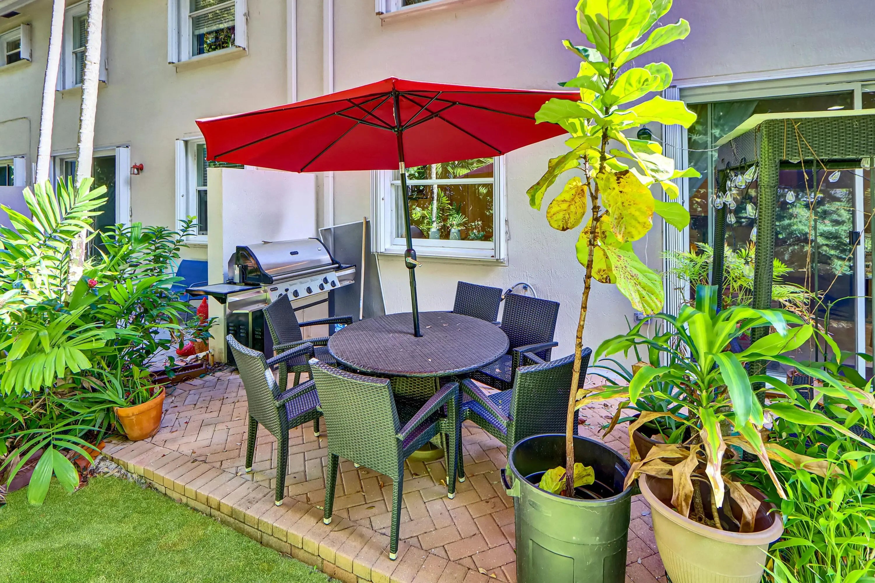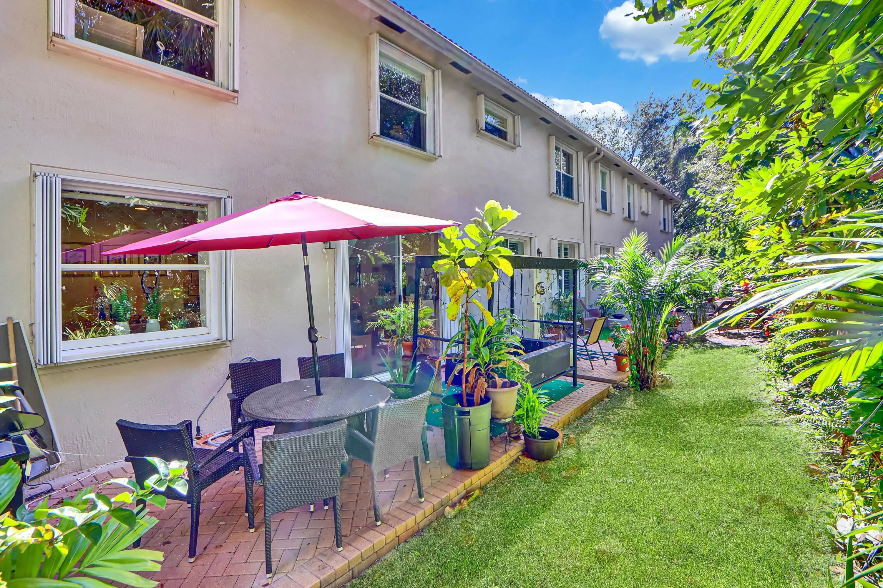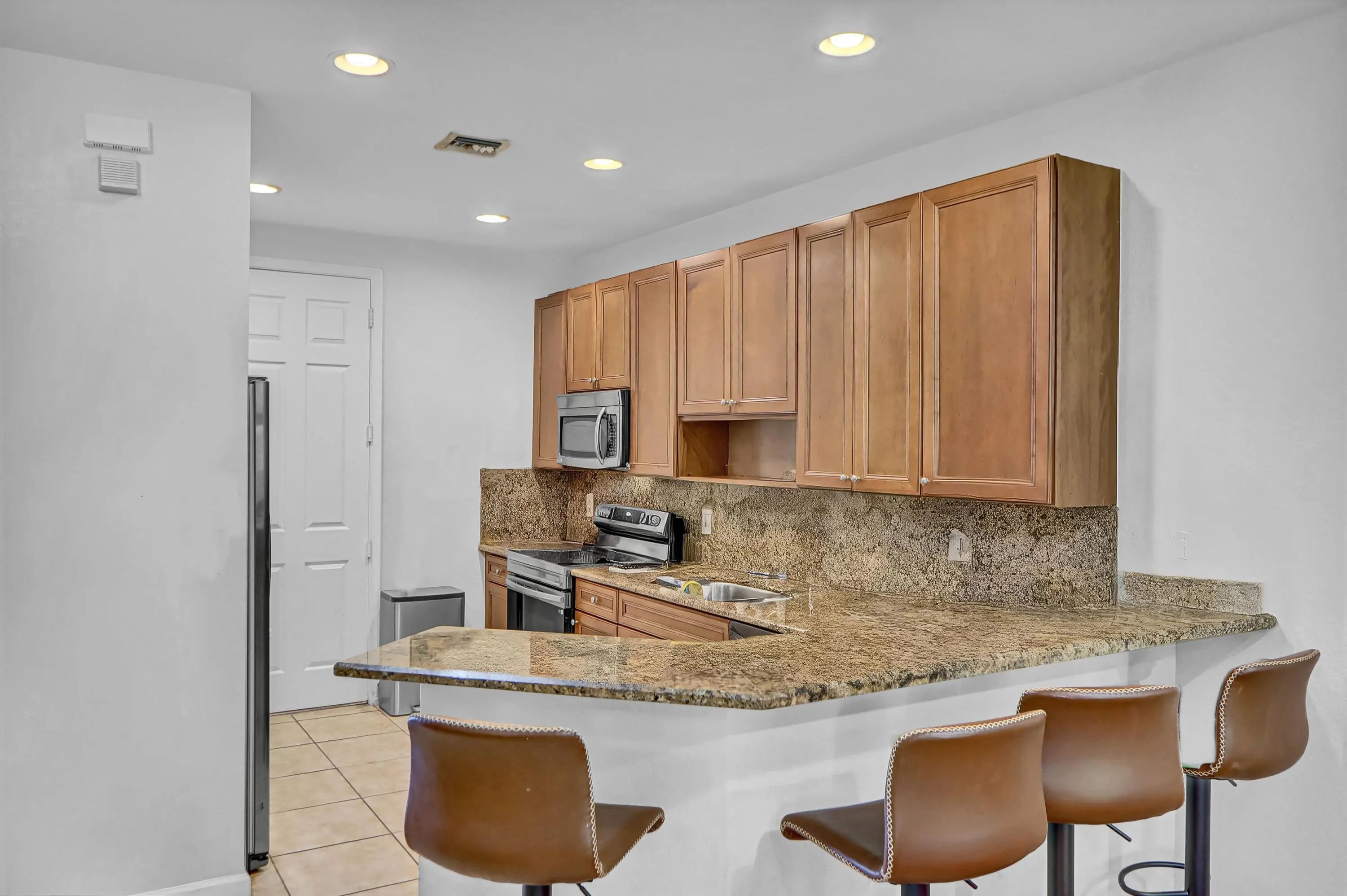 GREAT TOWNHOUSE IN GATED COMMUNITY NEAR SCHOOL & SHOPPING! This lovely townhome offers 3 bedrooms, 3 baths, and a versatile bonus room with a closet--ideal as a 4th bedroom or office--plus a one-car garage. Neutral tile and carpeting create a warm, inviting feel. The spacious kitchen features oak cabinetry, granite countertops and backsplash, stainless steel appliances, and convenient counter seating. All bedrooms are upstairs with generous closets and ceiling fans. Enjoy serene lake and fountain views from the front and unwind on your private, tropically landscaped patio with papaya trees in the rear. Community amenities include a clubhouse, pool, fitness center, playground and park. Guest parking in front. Call today!