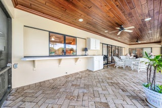 Set along the 3rd green of the Jack Nicklaus Signature Course, 1851 Thatch Palm Drive offers effortless single-story living with a serene golf course backdrop. Spanning over 2,400 square feet, the home is thoughtfully arranged with three bedrooms and two baths and is ideal for a home office or private retreat. A brick-paver circular driveway and covered entry create a polished arrival, leading into light-filled interiors enhanced by plantation window coverings and seamless, step-free transitions throughout. The spacious primary suite enjoys tranquil pool views and a comfortable sense of separation, while the overall layout balances openness with privacy. Outdoors, the gated backyard is designed for relaxed entertaining, featuring a custom heated pool and spa, along with a screenedlanai complete with summer kitchen and lounge areaperfect for enjoying Florida living year-round. Additional features such as natural gas and a generator add peace of mind and everyday convenience.