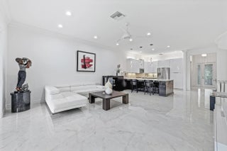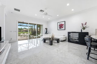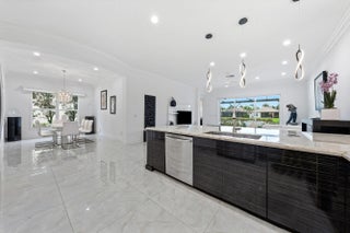 This beautifully appointed home (2/2+den) sits on a lakefront lot. Features include lush landscaping with landscape lighting, impact windows, decorative glass entry door, porcelain floors, wood look tile plank floors in bedrooms, crown moldings, built-in closets, LED hi-hats, designer light fixtures, plantation shutters, fans, upgraded baths and more! The gourmet kitchen features sleek European cabinetry, marble countertops with full height backsplash and all the bells & whistles! There is a large counter height breakfast bar with pendant lights and a formal dining room. Large primary suite with luxurious bath. The den has etched glass double doors and a custom built-in desk unit. You'll love the extended rear patio with covered area, ''birdcage'' with picture frame screen and lake views.