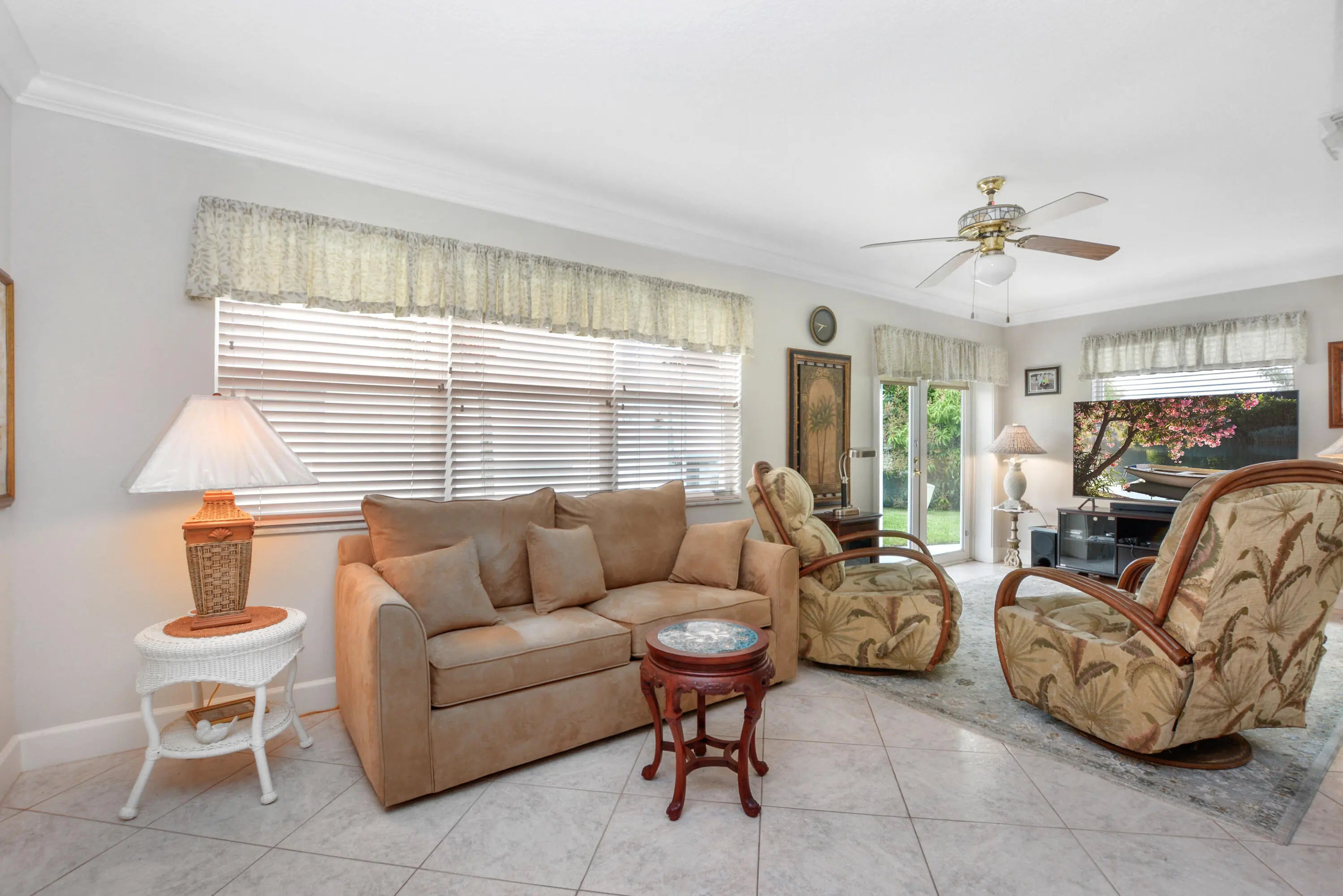 Fabulous expanded updated Regis 2Br/2Ba home Tile and Flat roof replaced 2020. All hurricane impact windows and impact French glass doors leading to back patio.. Front porch with insulated roof faces east for those gulfstream breezes. Double concrete driveway. Neutral tile thru out on the diaganol. 3 Ton A/C 2008. Both baths updated. Kitchen cabinetry replaced plus updated appliances. Recessed lighting. Knockdown textured ceilings plus crown molding. FREE 18 HOLE PAR 3 GOLF COURSE.Three clubhouses with 3 heated pools. Minutes to ocean beaches, I95, shopping, restaurants and banks. Paid up recreation lease in full. Vacant for quick close..A Must see.