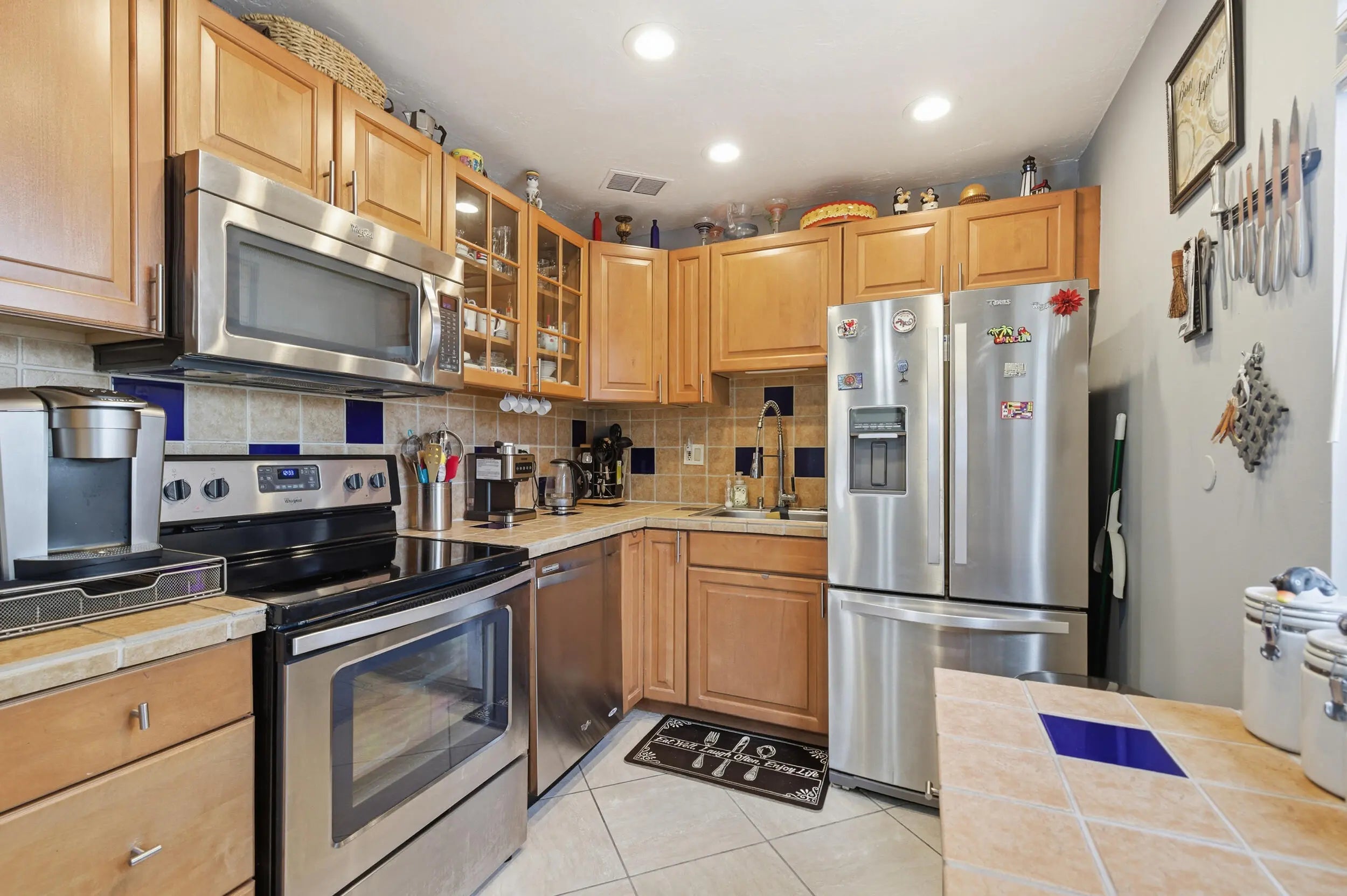 Beautifully updated 2nd-floor condo in a vibrant 55+ community. Features tile flooring, an updated kitchen with stainless steel appliances, and CBS construction. AC (2012) with replaced blower and water heater (2013). Enjoy a peaceful garden view and AC on the patio. Community amenities include golf, putting green, two clubhouses, billiards, indoor pool, game room, gym, and a courtesy bus. Gated community with 24/7 security.