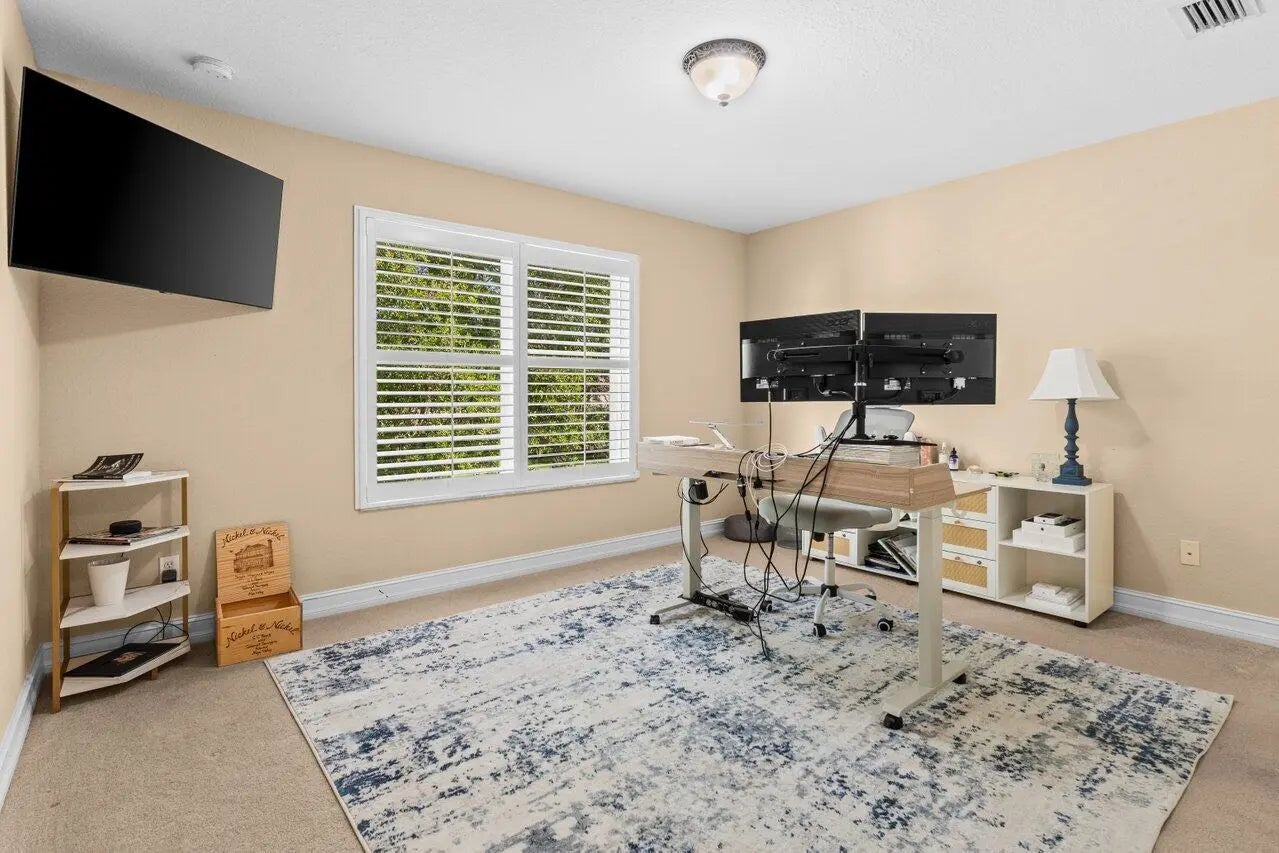 Incredible 6 Bedroom Home in Canyon Springs. You Will be Immediately Drawn in By the Gorgeous Front Landscaping. There's also Accordion Hurricane Shutters for the Second Floor. Entering You Will be Impressed by New Flooring Throughout. The Windows are Adorned with Custom Plantation Shutters and there is Crown Molding Throughout as Well. The Massive Updated Kitchen is a Chef's Dream and Includes Quartz Counters with Huge Center Island, Subway Tile Backsplash, Two Tone Wood Cabinets and Newer Appliances. Out Back is a Large Covered Patio Overlooking the Very Private Yard Complete with Beautiful Artificial Turf With 3 Hole Putting Green that Always Looks Beautiful. Upstairs the Huge Primary Suite with a Sitting Room that Can Be a Home Gym or Office. Two Guest Rooms Share a Jack & Jill Setup