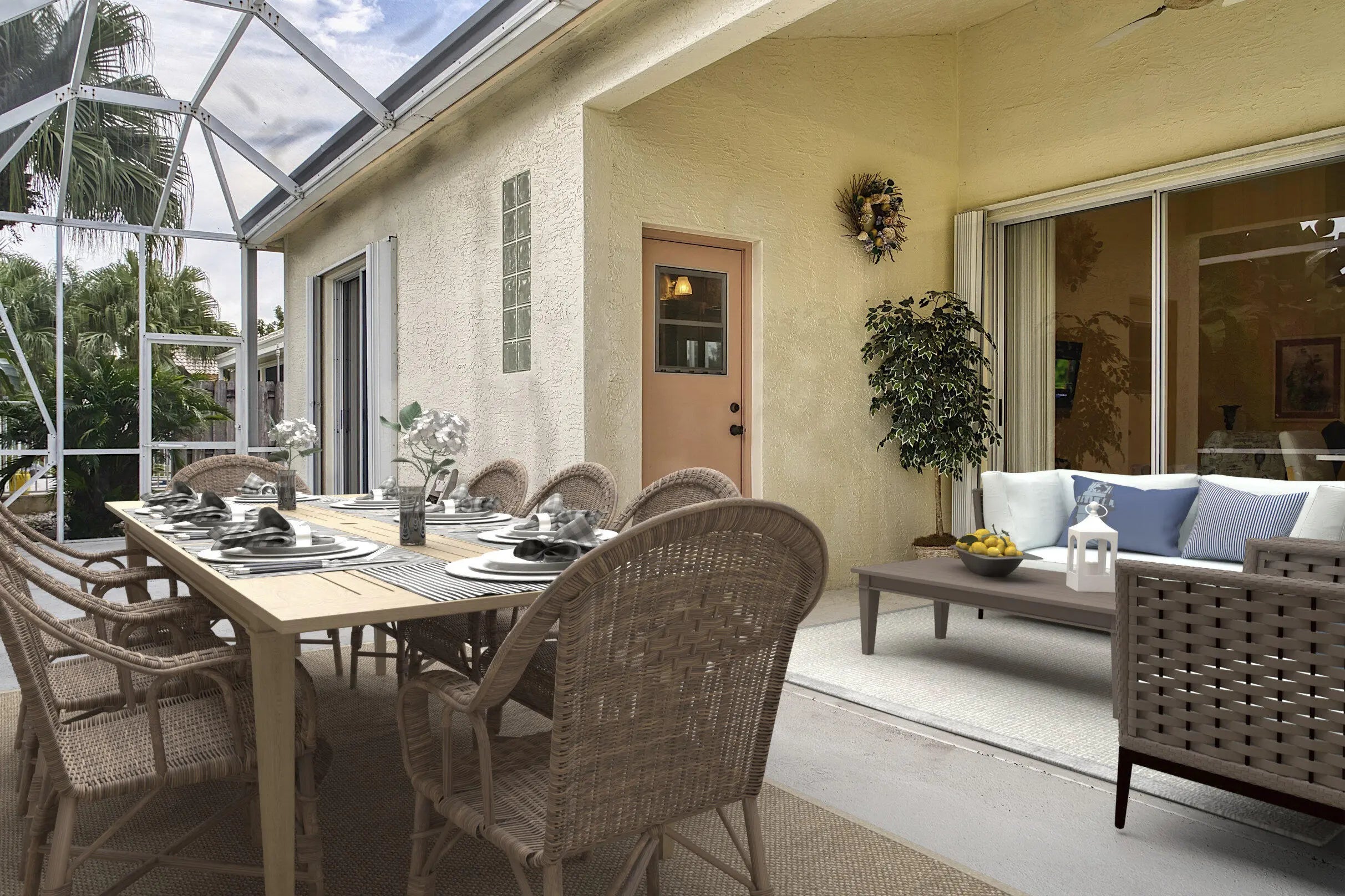 Welcome home! This 2,052-square-foot builder's model home on the lake features three bedrooms and two-and-a-half baths. From the moment you enter, you'll notice how bright and open this home feels. The open floor plan makes it easy to host gatherings. The primary bedroom located in its own private section of the home with access to enclosed patio. This home also features hurricane shutters! Short drive to the Beach and Atlantic Avenue, well-known for its dining, nightlife, art, and entertainment. The home is being offered either furnished turnkey or unfurnished, giving buyers flexibility. Easy Access to the Florida Turnpike and I-95. Whether you're looking for a full-time residence or seasonal home close to everything, this property checks all the boxes