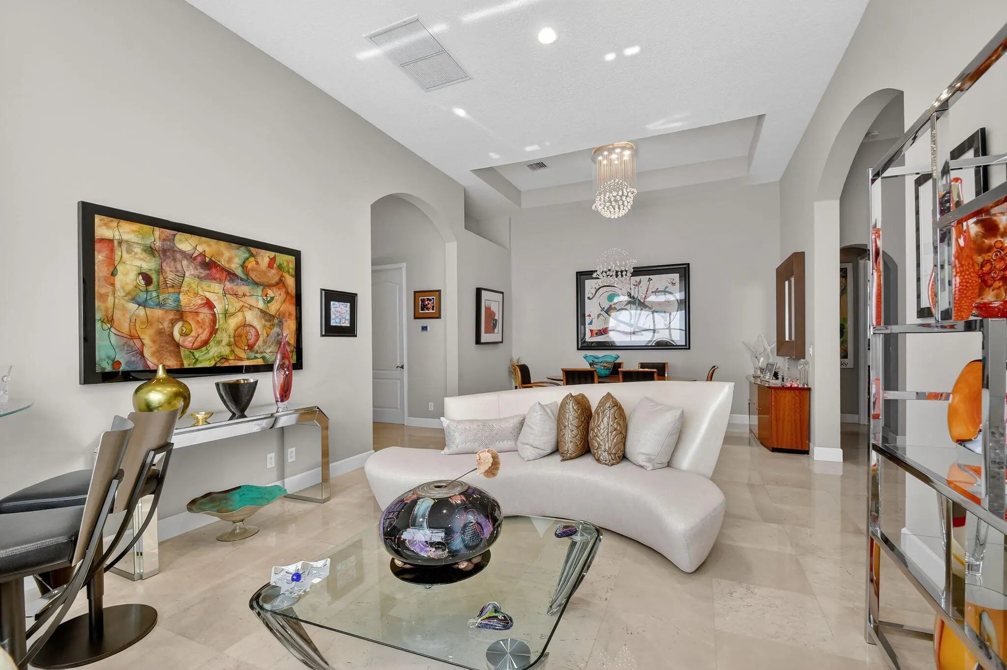 REDUCED 25K FOR QUICK SALE! Stunning Rare Florencia Model w/Accordion Hurricane Shutters is situated on a Private Corner Lot. Gourmet Kitchen was upgraded w/Beautiful Modern Cabinetry, Built in Pantry, Premium Granite Counters, Full Backsplash, Cook Island, Large SS Sink, SS Appliance Package, Convection Microwave & More! Seller spent a fortune on upgrades. Designer Crystal Chandeliers, Pendants & Fans grace this home! Marble Floors in main living area, Laminate in 2 rooms. Both bedrooms offer custom walk in closets. Built in large Safe. A/C Unit was upgraded. Gas Hot water heater & Gas Dryer! Real Wood Doors & High Ceilings! LED high-hats galore, smoke detectors piped into Vector Security. Gutter Guards installed. Large Back Covered/Screened patio w/Concrete Stamped Floor. Splash sink