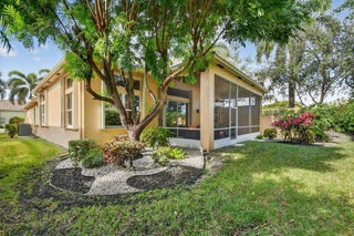 Absolutely Stunning Rare Florencia Model w/Accordion Hurricane Shutters is situated on a Private Corner Lot. Gourmet Kitchen was upgraded w/Beautiful Modern Cabinetry, Built in Pantry, Premium Granite Counters, Full Backsplash, Cook Island, Large SS Sink, SS Appliance Package, Convection Microwave & More! Seller spent a fortune on upgrades. Designer Crystal Chandeliers, Pendants & Fans grace this home! Marble Floors in main living area, Laminate in 2 rooms. Both bedrooms offer custom walk in closets. Built in large Safe. A/C Unit was upgraded. Gas Hot water heater & Gas Dryer! Real Wood Doors & High Ceilings! LED high-hats galore, smoke detectors piped into Vector Security. Gutter Guards installed. Large Back Covered & Screened patio. w/Concrete Stamped Floor. Splash sink in garage.This is the home you have been waiting for! Very Unique & Designed & Upgraded Beautifully Modern. Designer Modern Window Treatments throughout, many of them are black out. 50 gallon hot water heater. A/C was upgraded and approx. 3 years new. Pull outs in the gourmet kitchen plus over counter lighting. Garage offers extra cabinets for storage. Home equipped with central Vacuum. Seller upgraded electrical panel in garage for free standing generator. Front door offers keyless entry & garage keyless entry. Vector Security Doorbell with Video. Front Garage Coach Lights are Upgraded. Seller leaving 2nd BR & Den Wall mounted TVs. Come live the Country Club Lifestyle without paying Country Club Fees. Now try the Florida lifestyle and sit outside on the large screen-enclosed patio, perfect for relaxing or having your morning coffee. This inviting home blends comfort with style! Pristine location close to restaurants, shopping, grocery stores, malls & the works. Even close to Gyms, although great Gym on site plus close to hospitals and medical offices & anything you can think of. Mizner Falls boasts a resort-style living experience. There is a manned gate, Renovated clubhouse, fitness center, meeting room, library, billiards, and an many amenities. Sports include pickleball, tennis and bocce courts. Additionally, the community offers lots of clubs and activities. There is always something to do if you so desire. Pet friendly. Conveniently located close to shopping, dining, entertainment, and major highways, this home offers the perfect blend of luxury, comfort, and convenience. Don't miss your chance to experience the best of South Florida living in this extraordinary Mizner Falls residence!