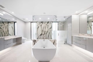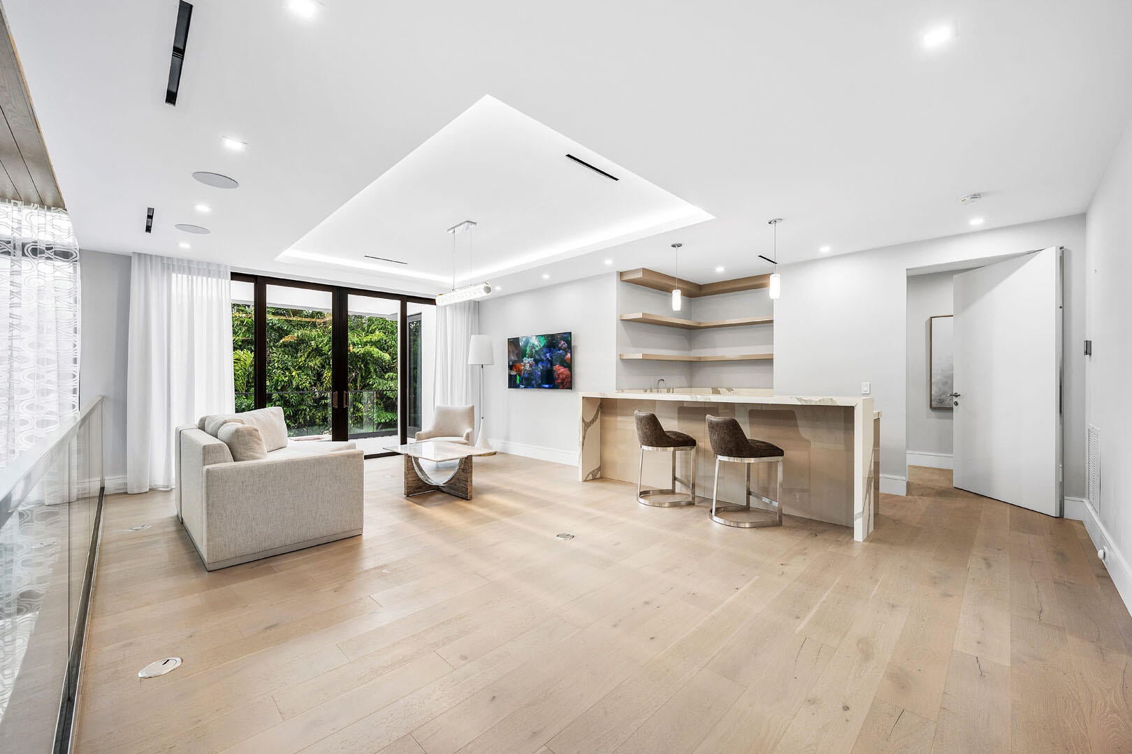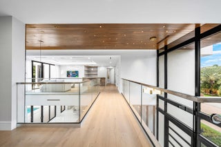 Welcome to 2391 Areca Palm Rd, a modern estate designed by BE Design and built by Albanese & Sons, nestled on a quiet street within the prestigious Royal Palm Yacht & Country Club. This newer construction residence offers over 6,000 square feet of refined living space with 5 bedrooms and 6.5 baths, showcasing exceptional craftsmanship and finishes throughout. The open-concept layout is ideal for contemporary living and entertaining, featuring soaring ceilings, expansive impact glass, and clean architectural lines. The main level is centered around a spacious great room that opens to covered outdoor areas, alongside formal dining and a chef's kitchen with Miele appliances, quartzite countertops, custom cabinetry, and a generous pantry.A private en-suite guest bedroom and a separate club room with bar and cabana bath provide flexibility for guests and entertaining. Upstairs, a central lounge connects the bedroom suites. The primary retreat features a spa-style bathroom with dual vanities, walk-in closets, a morning bar, and private balcony access. Additional en-suite bedrooms are generously sized, many with balconies or terraces. Outdoor living includes a resort-style pool and spa, covered loggias, and inviting entertaining areas. Additional features include a three-car garage plus a dedicated golf cart garage. Ideally located within a gated enclave near shopping, dining, beaches, and top-rated schools.
