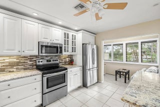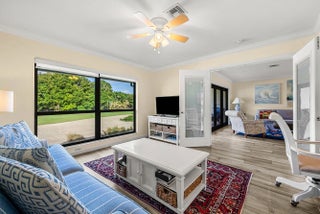 Spacious 3-bedroom, 2-bath condo featuring wood-look tile flooring throughout. Sliders open to a private balcony with beautiful golf course views. French doors lead to a den or third bedroom, offering flexible living space. Open kitchen with white cabinetry and beige granite countertops. Impact glass windows and updated bathrooms enhance comfort and peace of mind. Located in a desirable country club setting.Revel in access to world-class amenities, including two challenging golf courses, a racquet sports center, fitness center & spa, and a clubhouse offering fine dining and beyond. Quail Ridge is a mandatory membership club.