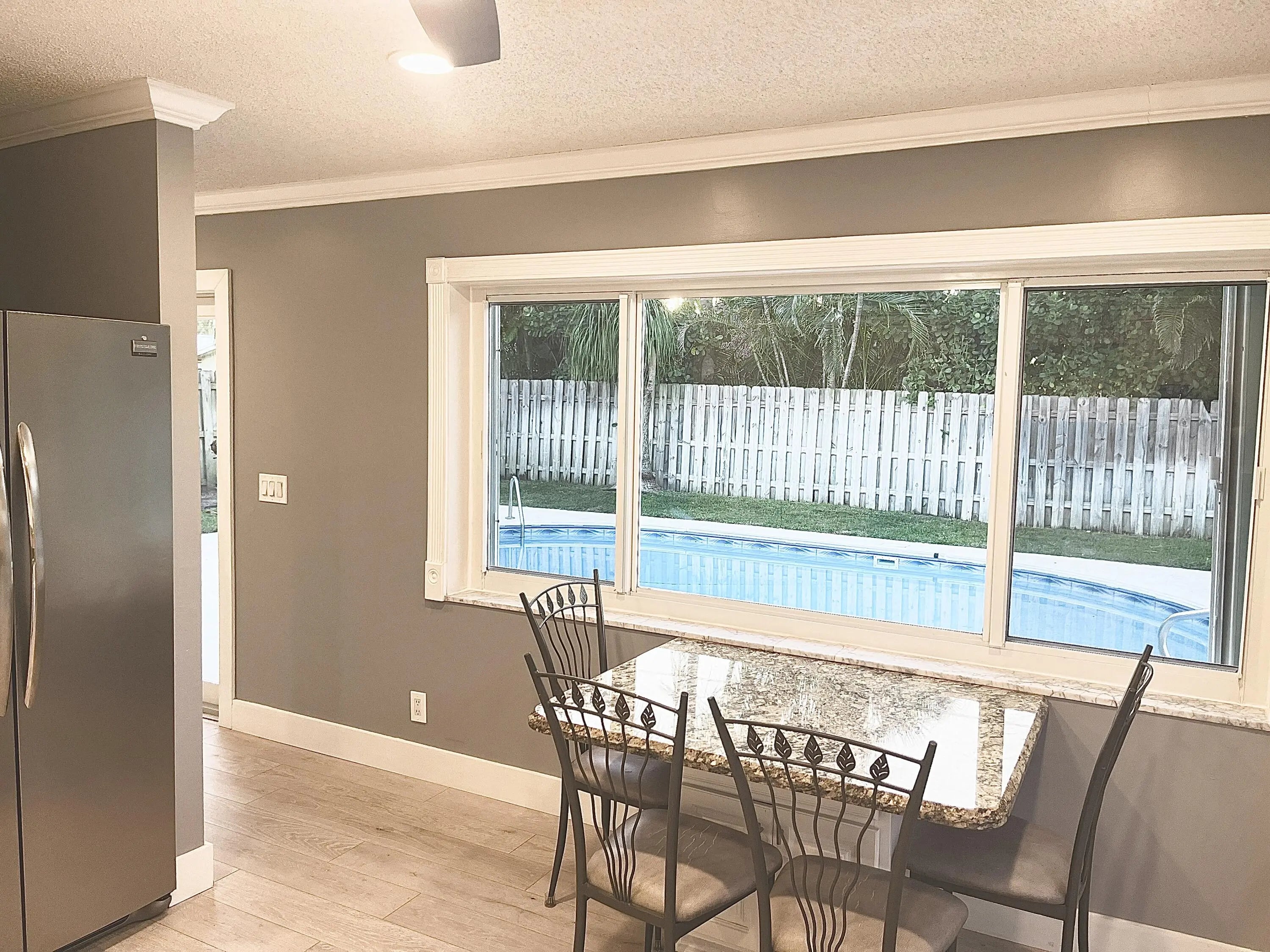 Live in the sought out quaint neighborhood of Chapel Hill. This 4 bedroom 2 bath pool home is in the perfect location close to the beach, shopping and downtown Delray. Updated with huge granite kitchen overlooking pool area, wood floors in bedrooms and vinyl plank flooring in main. Backyard is fenced with the tropical vibes you would expect in beautiful south Florida. Owner will take care of lawn and pool.Call Listing agent for showings