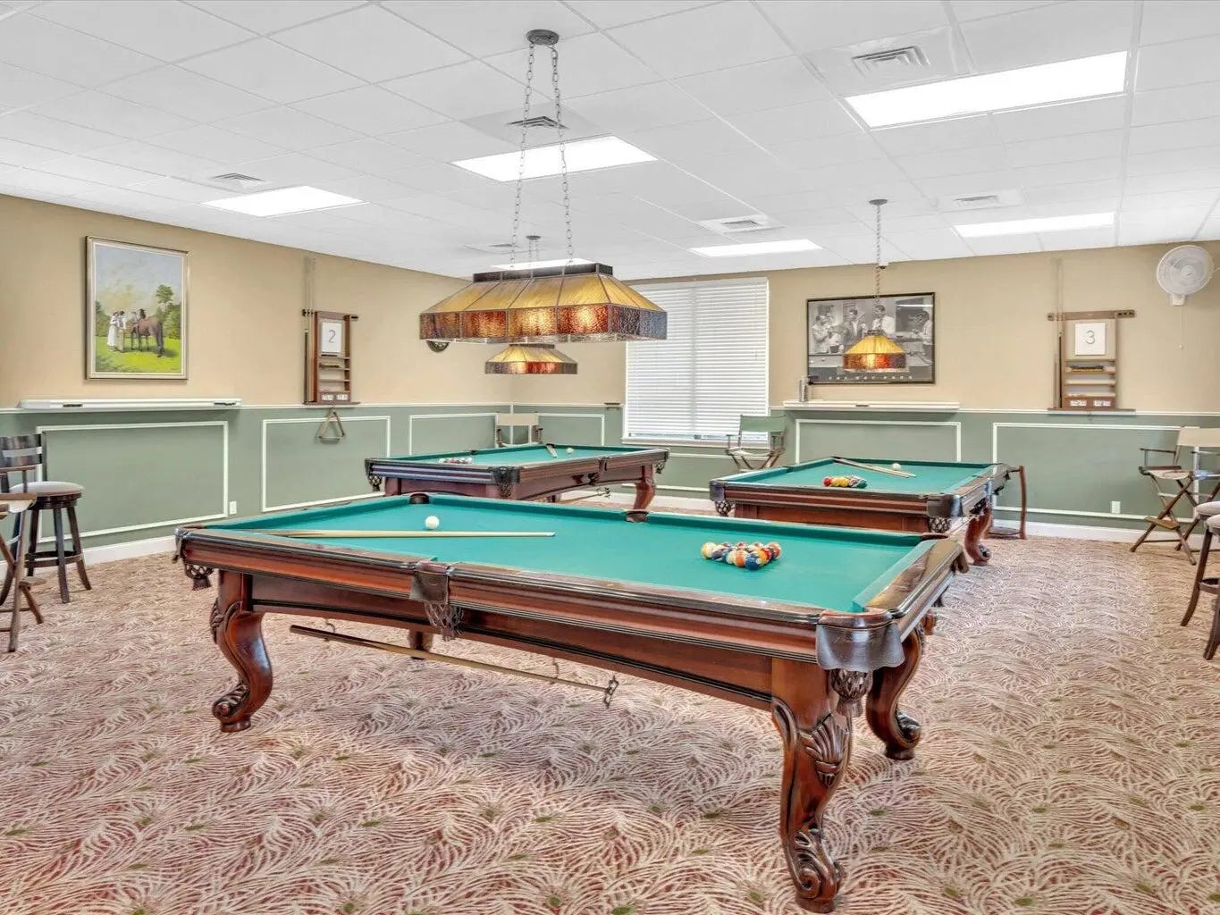 Billiards, Clubhouse, Community Room, Fitness Center, Game Room, Internet Included, Library, Pickleball, Pool, Shuffleboard, Tennis, Whirlpool