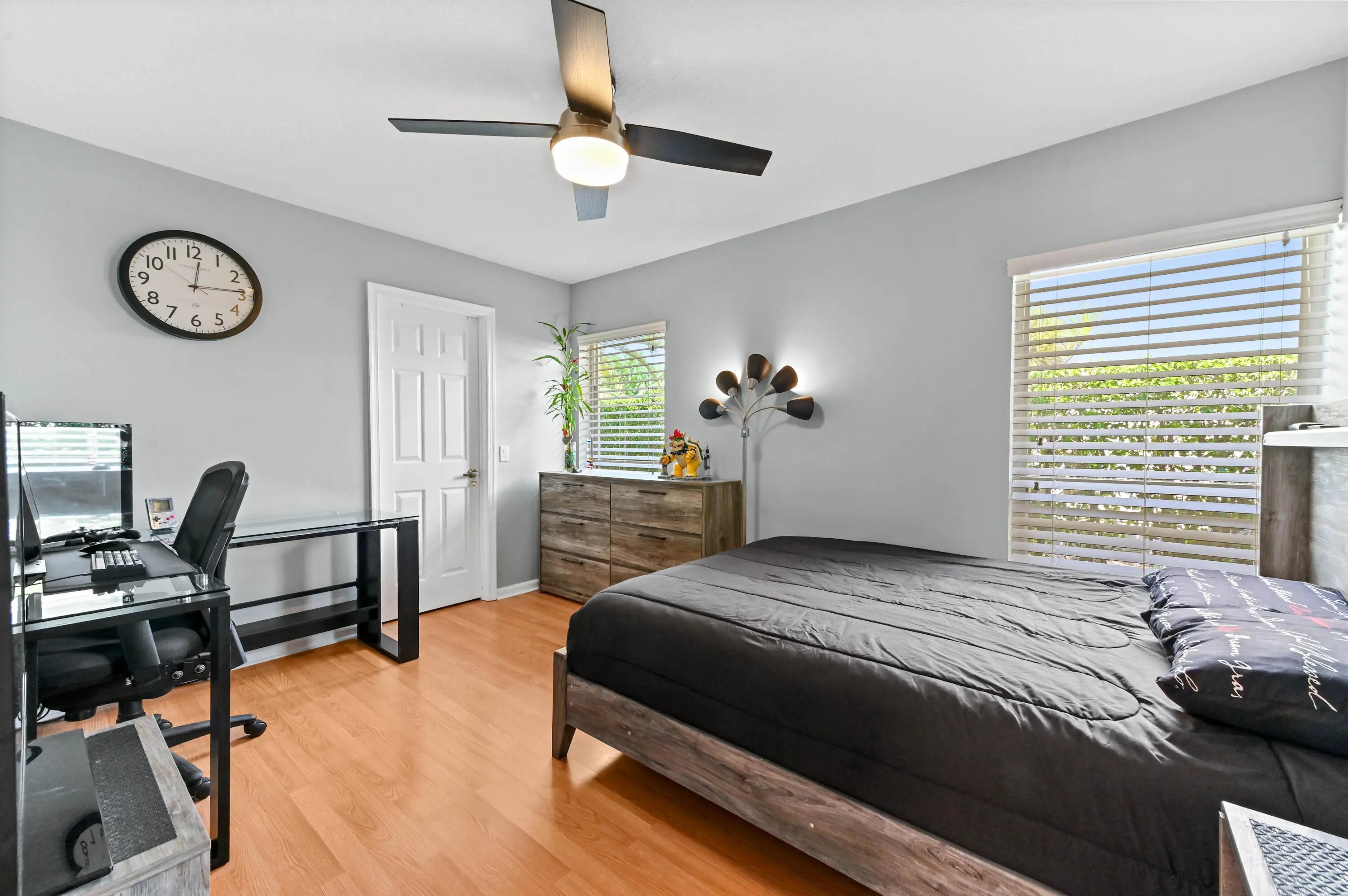 Welcome to this stunning waterfront home located in the gated community of Boynton Waters. Offering 2,301 sq ft of living space, this spacious residence features 4 bedrooms and 3 bathrooms, including a handicap-accessible en-suite bathroom, thoughtfully designed for comfort and convenience. A new roof was installed in 2024, providing added peace of mind for years to come.The home welcomes you with double-entry doors leading into a formal foyer and a large living room, highlighted by vaulted ceilings and crown molding throughout. The upgraded kitchen features granite countertops, ample cabinetry, a pantry, a snack bar, and bar seating--perfect for casual dining and entertaining.