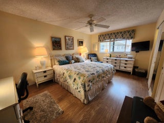 A Must-See Gem in a Vibrant Community! Discover this beautiful 1-bedroom, 1.5-bathroom move in ready! offering comfort & style. Features :Spacious Open Florida Room: with AC-,serene garden views, impact windows, & a queen sofa bed, ,updated master bath countertop / sink/faucet Kitchen has Updated ceiling and lighting, Granite and Quartz countertops, a newer GE refrigerator, wall oven with air fryer setting, Stunning hardwood ceramic tile floor. Entertainment-Ready: Swivel-mounted TV for viewing in both Florida room & family room, 2 more TVs in bedroom & kitchen. Elegant Tommy Bahama-style dining table with Italian-carved stand & cane chairs, king-size bedroom set,& a newer upholstered sofa & chair Upgraded elec panel 2 pools ,jacouzi Tennis/pickleball, entertainment plus.. Near beach..