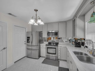 Step into this beautifully updated home featuring a redesigned kitchen with new appliances and a convenient pantry closet. The home boasts hurricane-impact windows throughout, ensuring both safety and peace of mind. Enjoy the convenience of a 1-car garage complete with additional pantries and closets, plus a garage refrigerator, washer, and dryer that may convey. Freshly painted interiors create a move-in ready feel, while thoughtful upgrades like ceiling fans with lights and a built-in breakfront add both comfort and character. The primary suite offers a stunning walk-in closet with built-ins and an updated walk-in shower with ADA grab bars. Outside, relax or entertain on the pavered and leveled patio, perfect for gatherings. All Furniture is negotiable!