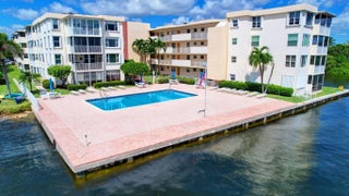 55+ ACTIVE LIFESTYLE COMMUNITY. THIS IMMACULATE TOP FLOOR 1/1 CONDO WITH OPEN FLOOR PLAN. LARGE GLASS DOORS FACING SOUTHERN EXPOSURE, BRING IN AN ABUNDANCE OF SUNSHINE, MAKING THE CONDO VERY BRIGHT. BEAUTIFUL VIEW OF LUSH GREENERY AND INTRACOASTAL WATERWAY, VERY PRIVATE. UPDATED KITCHEN WITH WOOD CABINETRY, COZY EATING AREA OPENS TO LARGE LIVING ROOM NEXT TO THE ENCLOSED OPEN PATIO, NEW A/C OCTOBER 2024. FANTASTIC USE OF SPACE. LARGE BEDROOM OFF LIVING ROOM. FABUOLUS COMMUNITY, POOL HAS UNBELIEVABLE PANORAMIC VIEWS OF INTRACOASTAL WATERWAY FOR RELAXING TIMES.