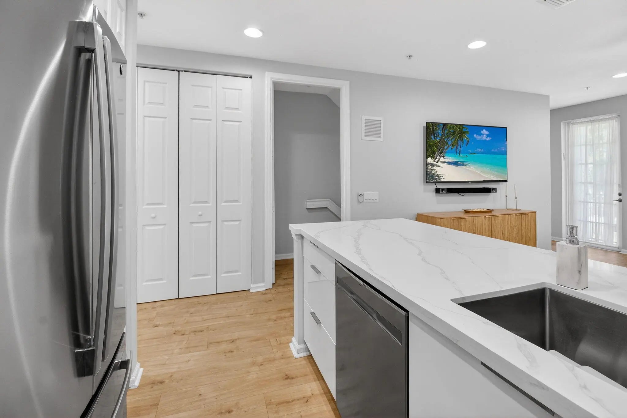 Welcome to this charming 3-story townhome, perfect for modern living & entertaining & completely NEWLY UPDATED! 3 spacious bedrooms & 4 well-appointed baths, this home boasts plenty of space for family & guests. Bright & airy living room w/ large windows/doors leading to a terrace, allowing natural light to flood the space. The kitchen is a chef's delight w/ high-end appliances, ample counter space/breakfast bar, ideal for casual dining. Adjacent to the kitchen is where you relax & enjoy your downtime. This floor has its own bedroom & full bath! The 3rd floor hosts the luxurious master suite, complete w/ a walk-in closet & ensuite bath featuring frameless shower door & new tile. An additional large queen suite is on the 3rd floor as well! Enjoy the 1st floor private bed & bath too.....