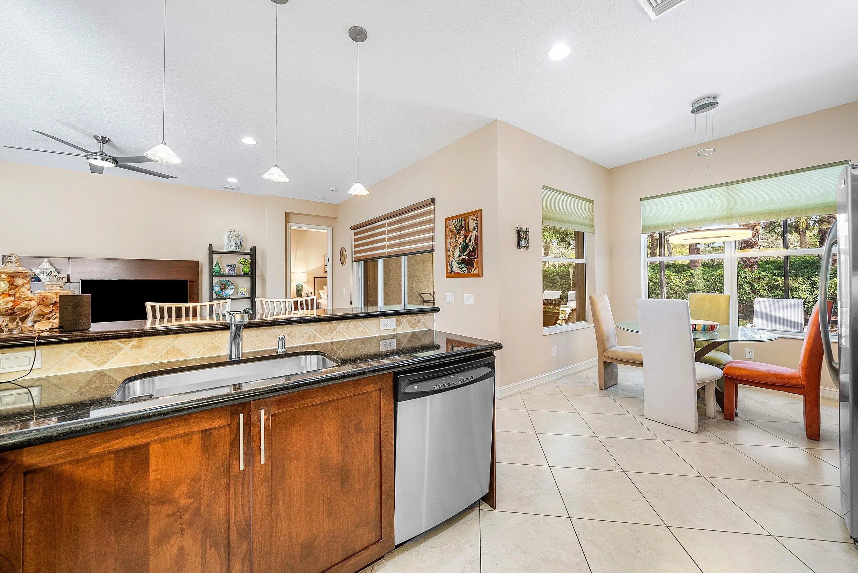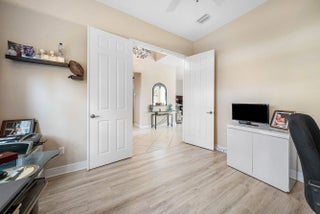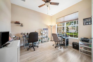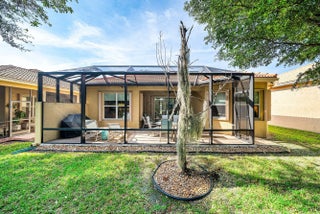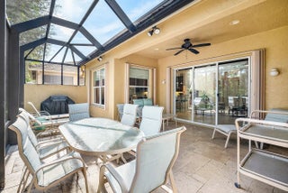 Immaculate 3 Bedroom Home in Valencia Reserve. There are Accordion Shutters for the Whole Home for Peace of Mind. The Open Great Room Floor Plan will Delight the Most Discriminating Buyer. The Home Includes Smooth Walls Throughout. Entering the Home, The Large 3rd Bedroom Currently Used as a Den has a Double Door Entry . The Gorgeous Kitchen Boasts Many Upgrades Including 42'' Wood Cabinets Including a Set of Glass Doors and a GE Profile Stainless Steel Appliance Package. There's a Massive Cabinet Pantry as Well. Out Back is a Private and Secluded Paradise with Custom Travertine Pavers and Extended Screened Patio Overlooking Lush Landscaping. The Large Primary Suite has 2 Walk In Closets and a Luxurious Bath with Marble Counters and Upgraded Tile. Beautiful Fixtures Throughout as Well.