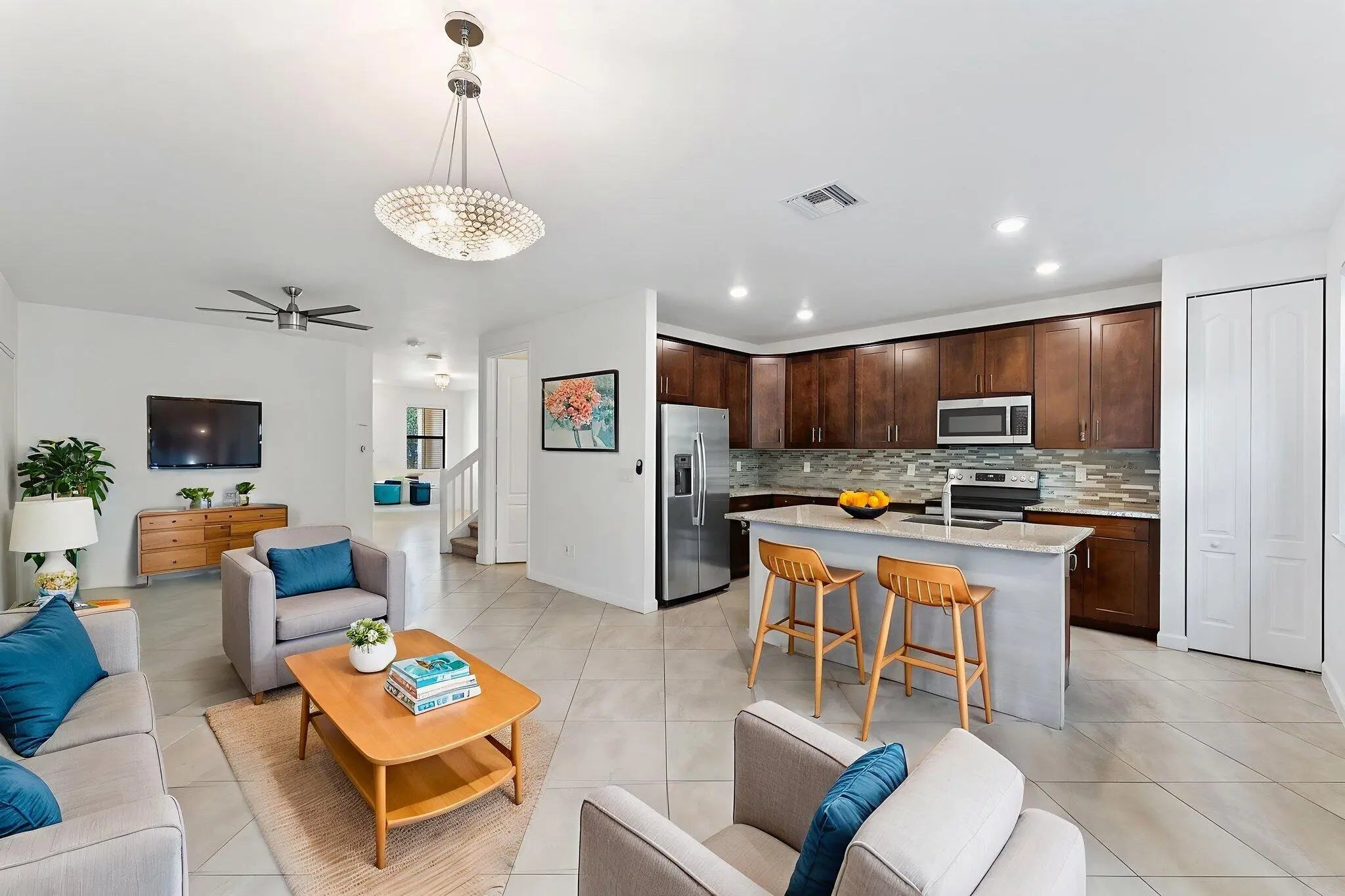 Welcome home to Cambria Parc, this recently built townhome community located in the heart of south central Palm Beach County is conveniently located to everything you need. Including 10 minutes to both major highways, 15 minutes to the beach and Atlantic Ave with all the restaurants and nightlife one would expect to enjoy the south Florida living experience. This townhome offers 3 bedrooms and 2.5 bathrooms with an attached garage and 600 sq foot fenced in yard with all new sod and landscaping. Kitchen features SS appliances, granite countertops & backsplash with an island for entertaining. Half bath downstairs for convenience. W/D located upstairs with 2 guest bedrooms and full bath. Oversized master with large walk in closet and walk in shower with dual sinks.