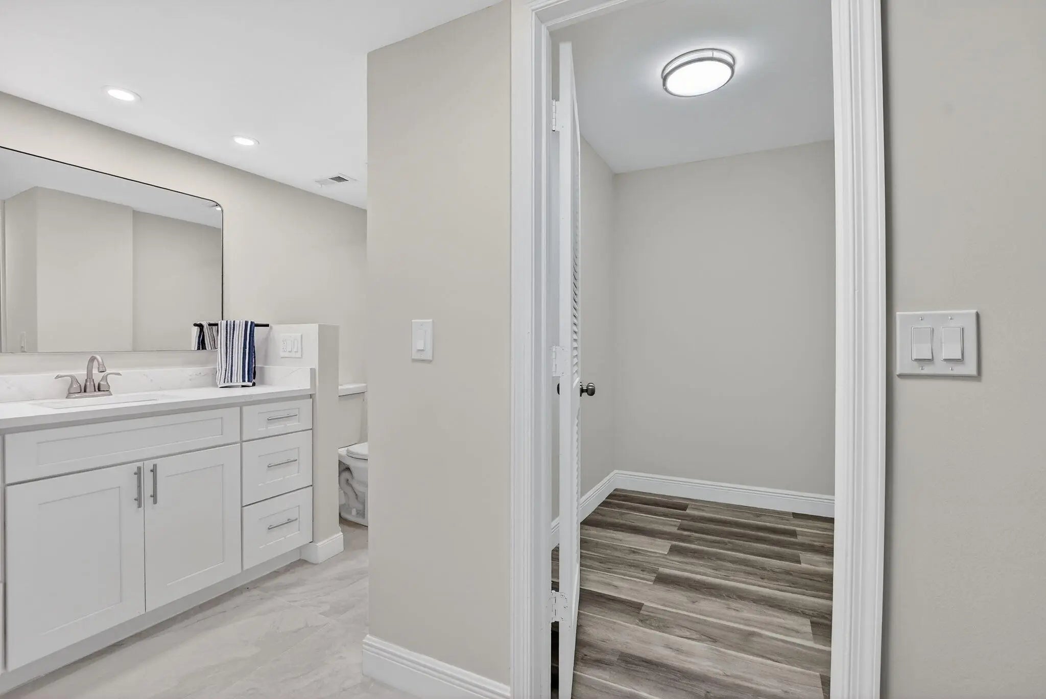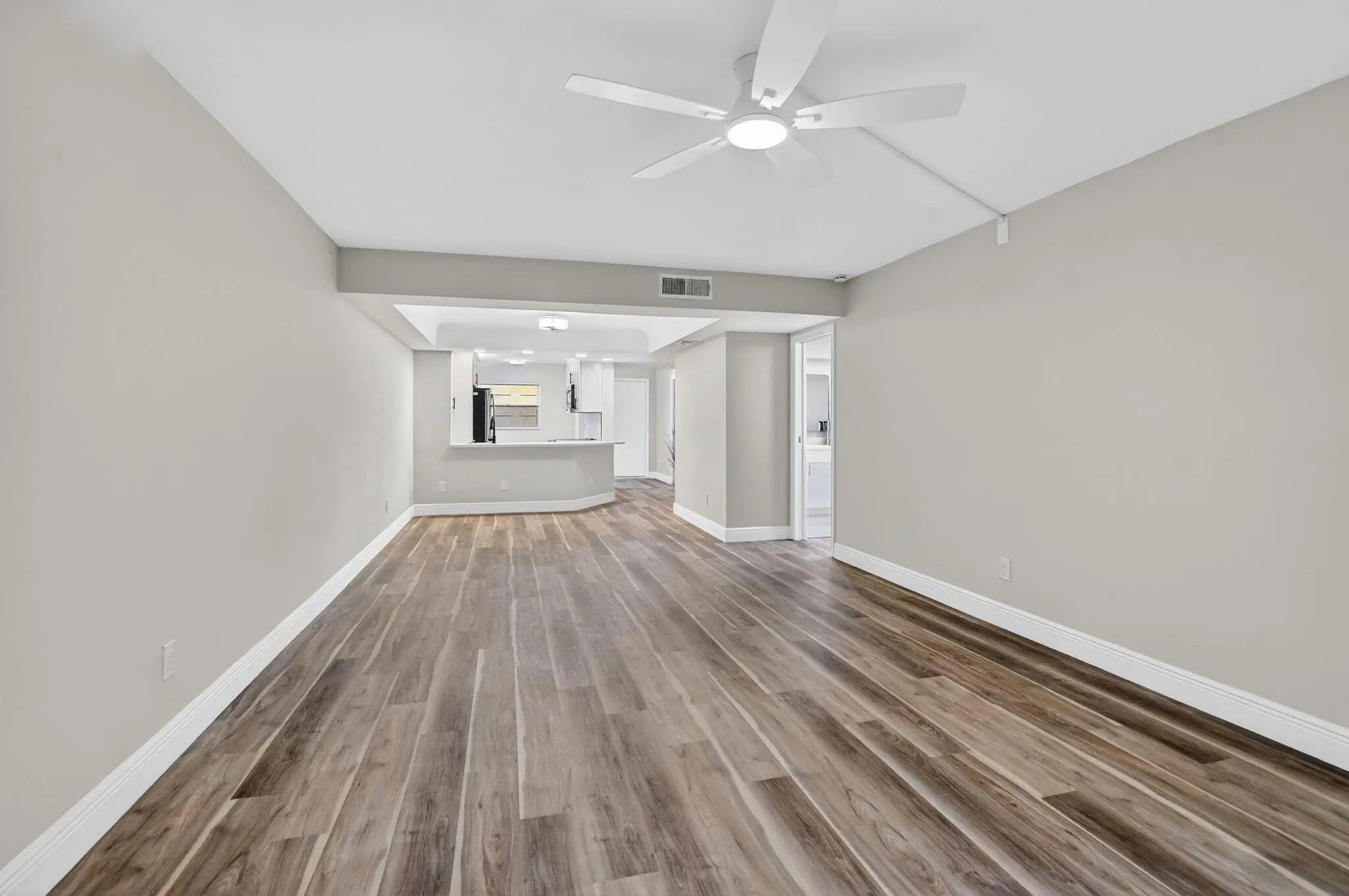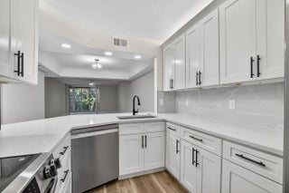 Completely remodeled and fully permitted, this secluded 2nd-floor Boca Barwood condo offers peace, privacy, and modern upgrades throughout. Features include a brand-new kitchen with quartz countertops, new appliances, fully renovated bathrooms, new washer and dryer, new A/C, new electrical panel, and Honey Oak luxury vinyl flooring. Boca Barwood is a well-maintained 55+ community surrounded by mature landscaping and offers a clubhouse, heated pool, sauna, tennis and pickleball courts, shuffleboard, walking paths, and an active women's club. Conveniently located near shopping, dining, golf, and beaches--ideal for full-time or seasonal living.