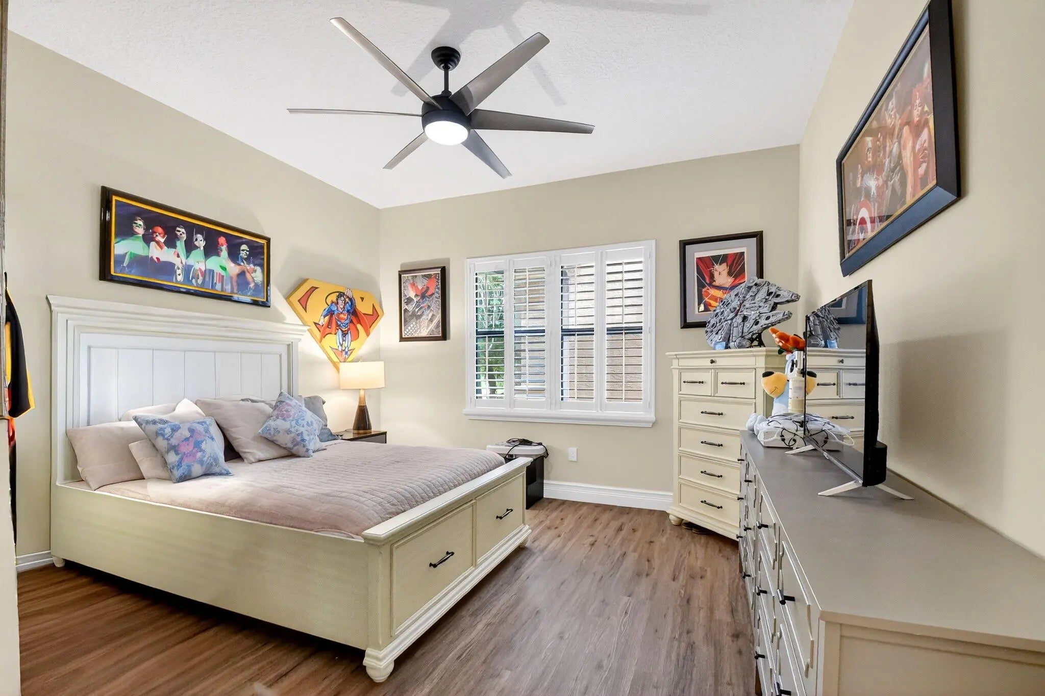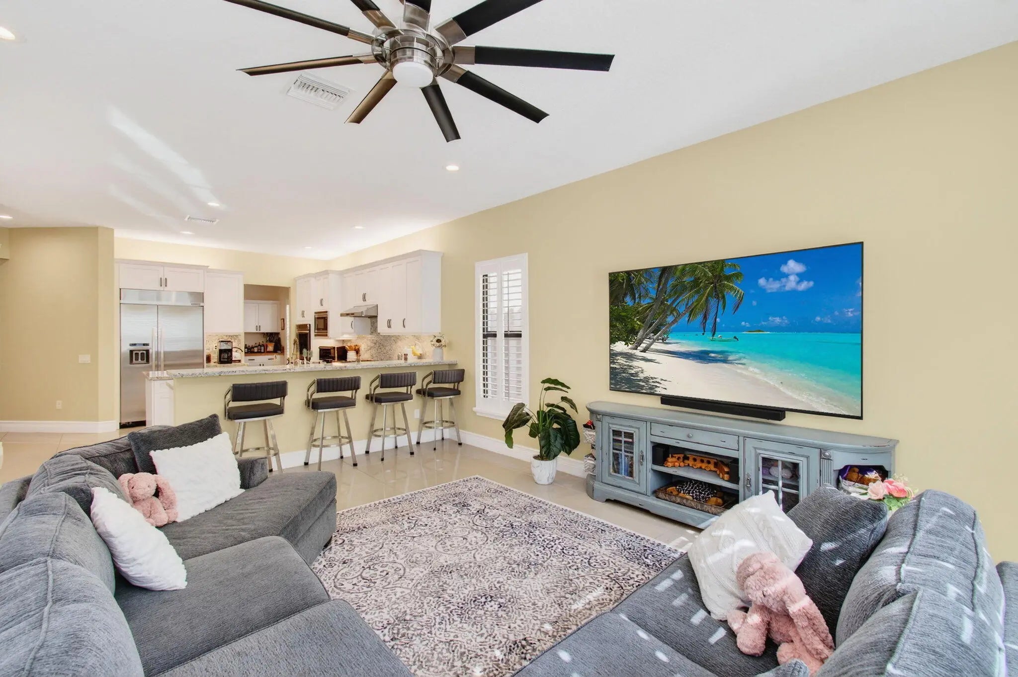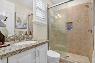 Located in Delray Beach's highly desirable, resort-style community of The Bridges--offering no mandatory club membership or equity buy-in--this upgraded Newport model offers over 4,260 sq ft of elegant living space. The home features 6 spacious bedrooms, 5 baths, and a loft, highlighted by volume ceilings, 24x24 tile flooring, and a dramatic turned staircase. The gourmet eat-in kitchen is ideal for entertaining, showcasing granite countertops, a breakfast bar, custom cabinetry, double ovens, and a 4-burner gas cooktop with stainless steel appliances. Upgrades include a wet bar, designer accents, impact windows, plantation shutters throughout, and a 3-car garage. The luxurious primary suite offers dual walk-in closets, double vanities, a soaking tub, and spa-like shower. She is a must see!!