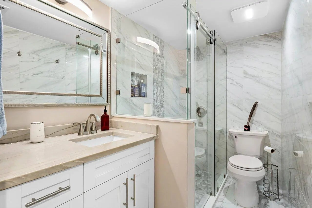 Welcome to this beautifully upgraded 2BD/2BTH nestled in the peaceful Manor Forest community of Boynton Beach. With a new roof installed in 2024 and thoughtful updates throughout, this residence blends modern comfort with everyday functionality. Step inside to find large-format porcelain tile flooring (31'' x 31'') that runs throughout the home, creating a clean, contemporary feel. The stylish kitchen features white shaker cabinetry, granite countertops, a tile backsplash, and a generous breakfast bar with seating for six--perfect for casual dining or entertaining. A reverse osmosis water filtration system adds an extra touch of quality for everyday living.