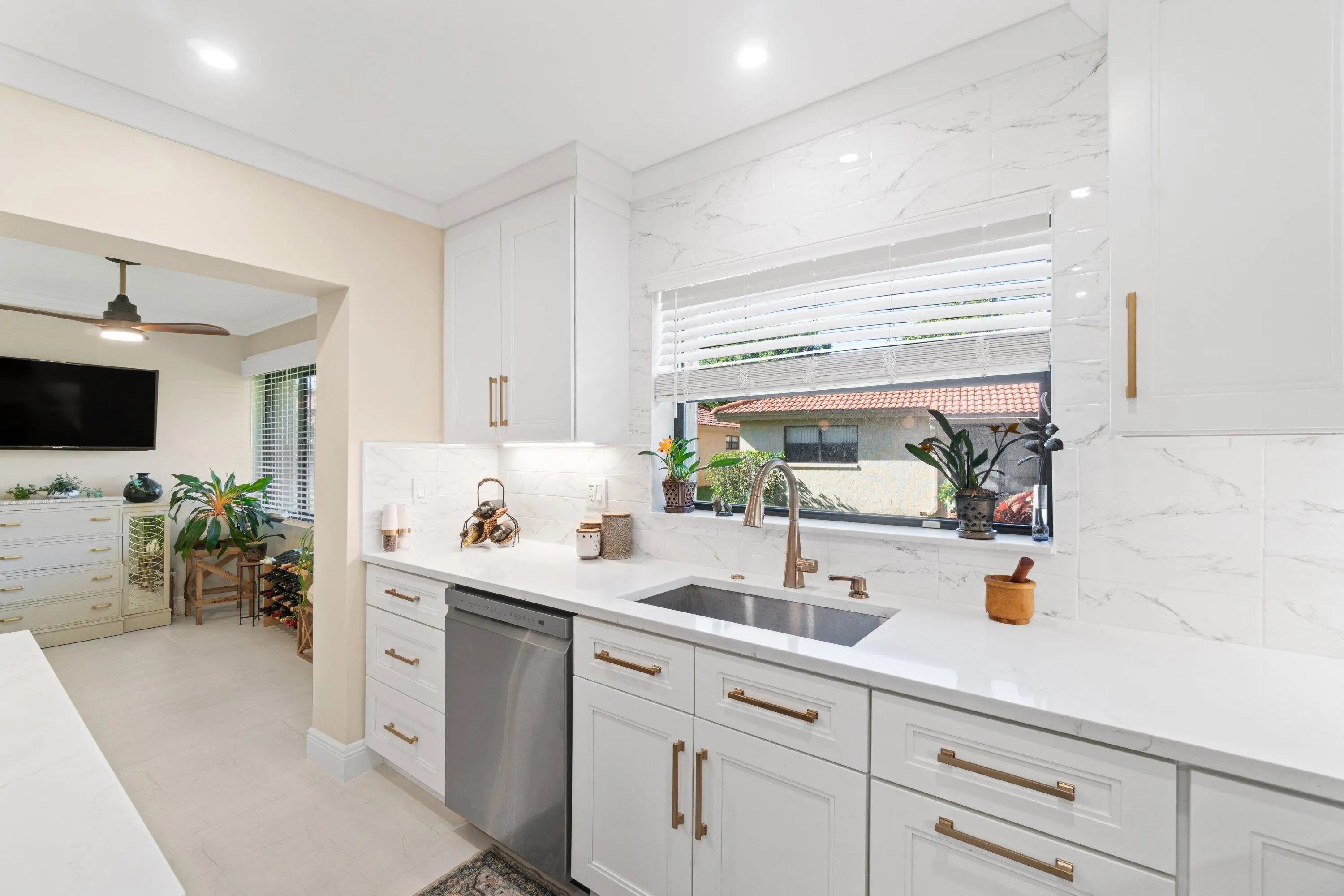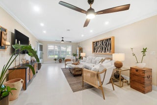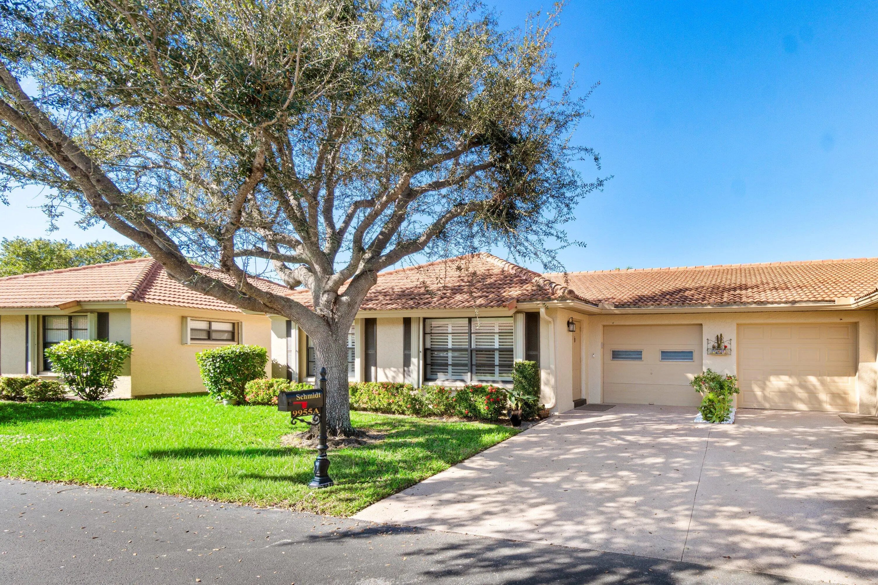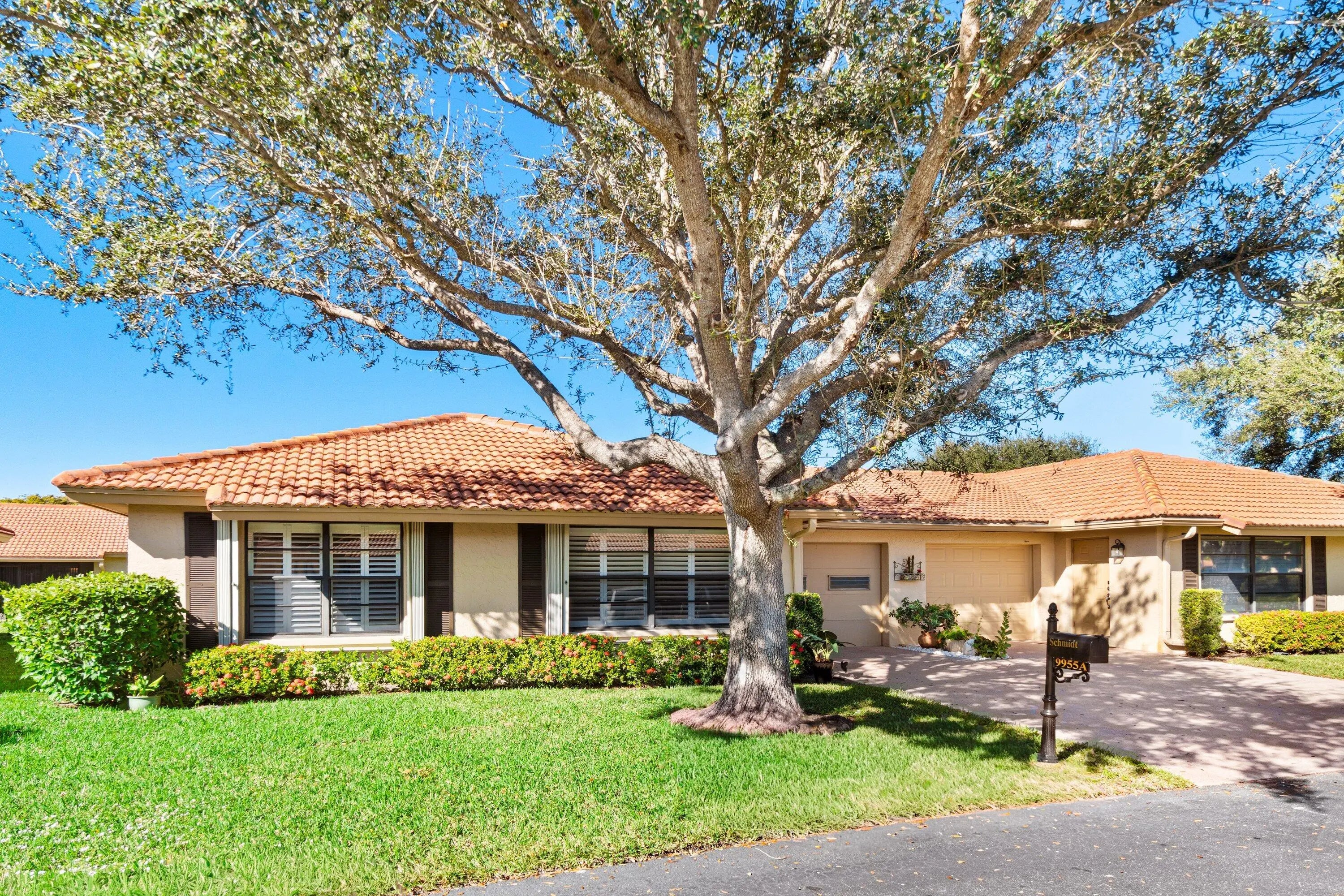EXPERIENCE LUXURY LIVING IN THIS STUNNING VILLA FEATURING ELEGANT 30X30 PORCELAIN TILE THROUGHOUT, AN OPEN LIVING AREA WITH FLAT CEILINGS AND CROWN MOLDING, AND PLANTATION SHUTTERS FOR ADDED CHARM. THE GOURMET KITCHEN BOASTS QUARTZ COUNTERTOPS, QUARTZ ISLAND, 42' INCH WOOD CABINETS WITH CROWN MOLDING, AND STAINLESS STEEL APPLIANCES. ENJOY THE COMFORT OF CEILING FANS AND STRATEGICALLY PLACED ELECTRICAL WIRING FOR TVs AT EVERY ELEVATION.BOTH BATHROOMS FEATURES A MODERN SHOWER FOR A SPA-LIKE EXPERIENCE WITH QUARTZ COUNTERTOPS.SHORT WALK TO THE CLUBHOUSE/POOL FROM THIS LOCATION.PEACEFUL NEIGHBORHOOD . ATTIC WITH PULL DOWN STEPS, UPGRADED ELECTRICAL PANEL AND MUCH MORE....BOTH A & B VILLAS ARE FOR SALE, LIVE NEXT DOOR TO YOUR BFF 55& OLDER COMMUNITY