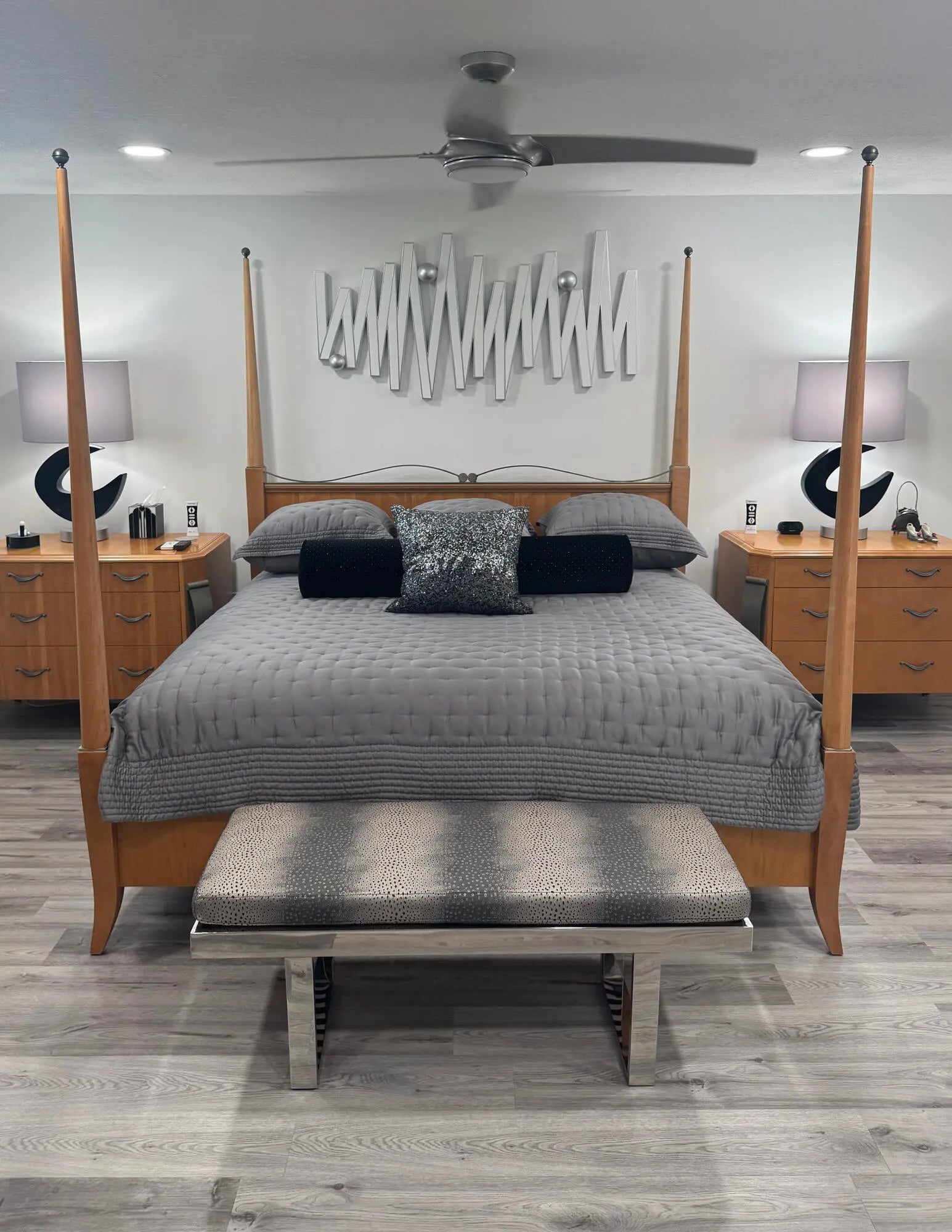 This top-of-the-line designer decorated 2-bedroom-plus-den, 2-bath ground floor unit includes private carport parking. Open plan. Completely renovated in 2022: new kitchen, new appliances, water filtration, wine chiller, tankless water heater, Roman shades, new a/c, new hot water heater, new roof and gutters in 2025. World-classs amenities include tennis, pickel ball, pools, clubhouse, theatre, fitness -- everything EXCEPT golf! Active 55+ adult community. Club offers breakfast and lunch daily and dinner can be delivered right to your door with a tip. Furniture is available.