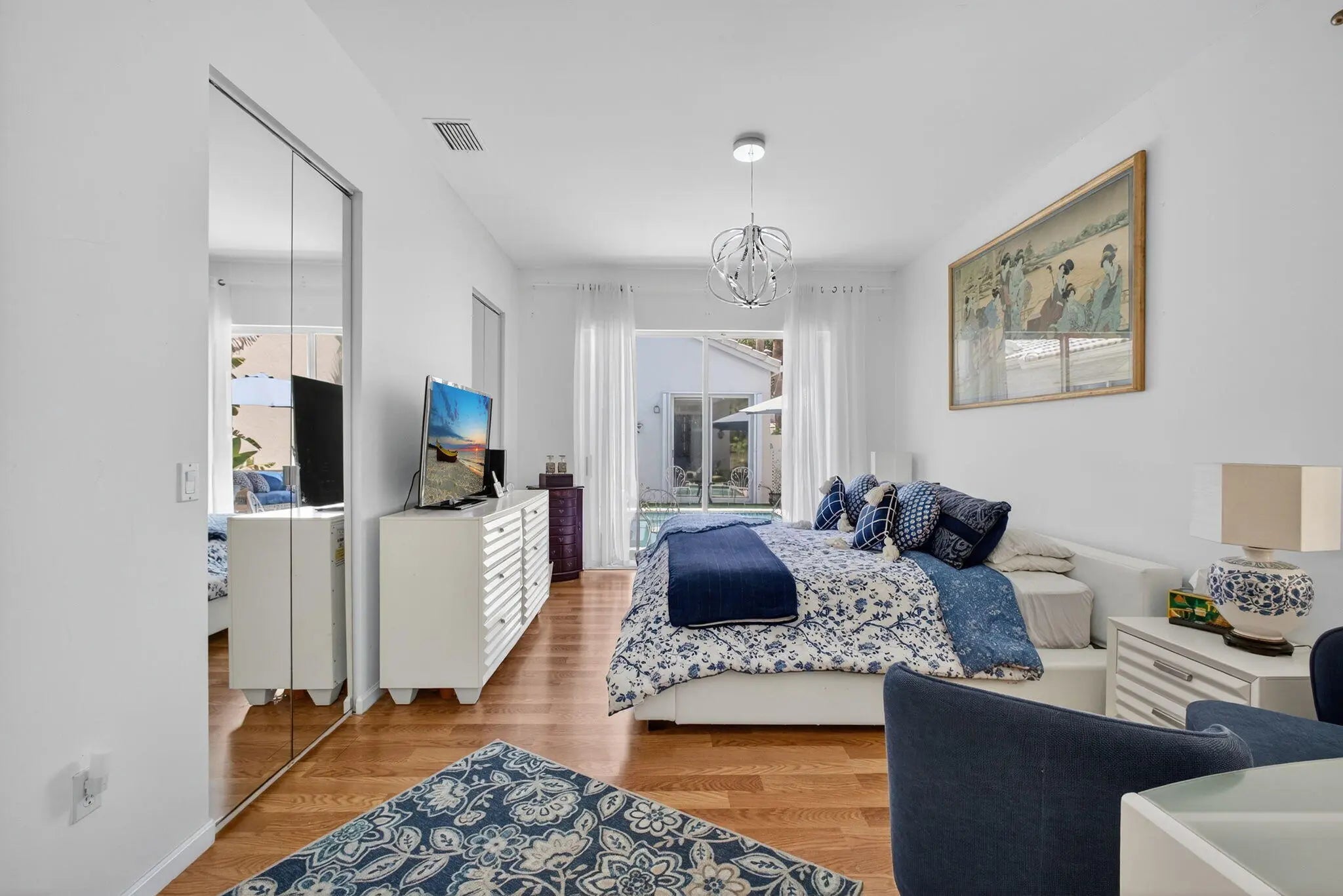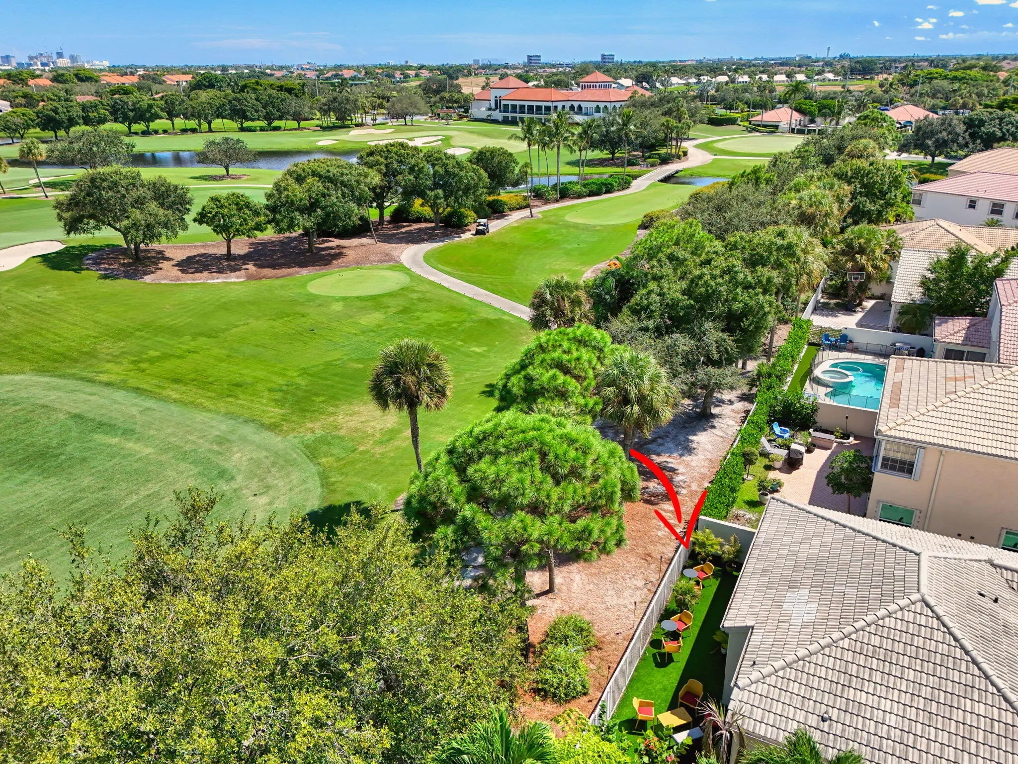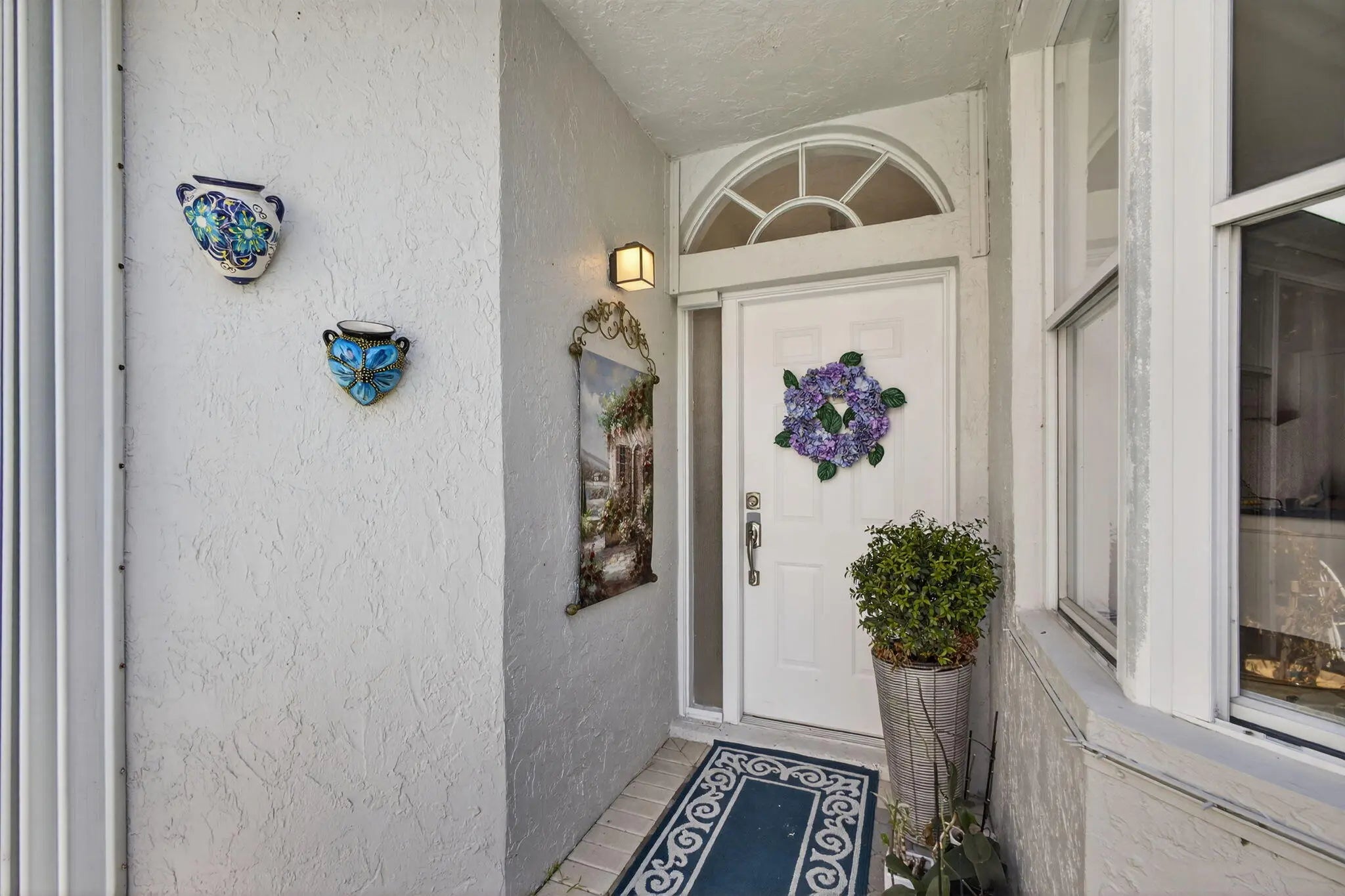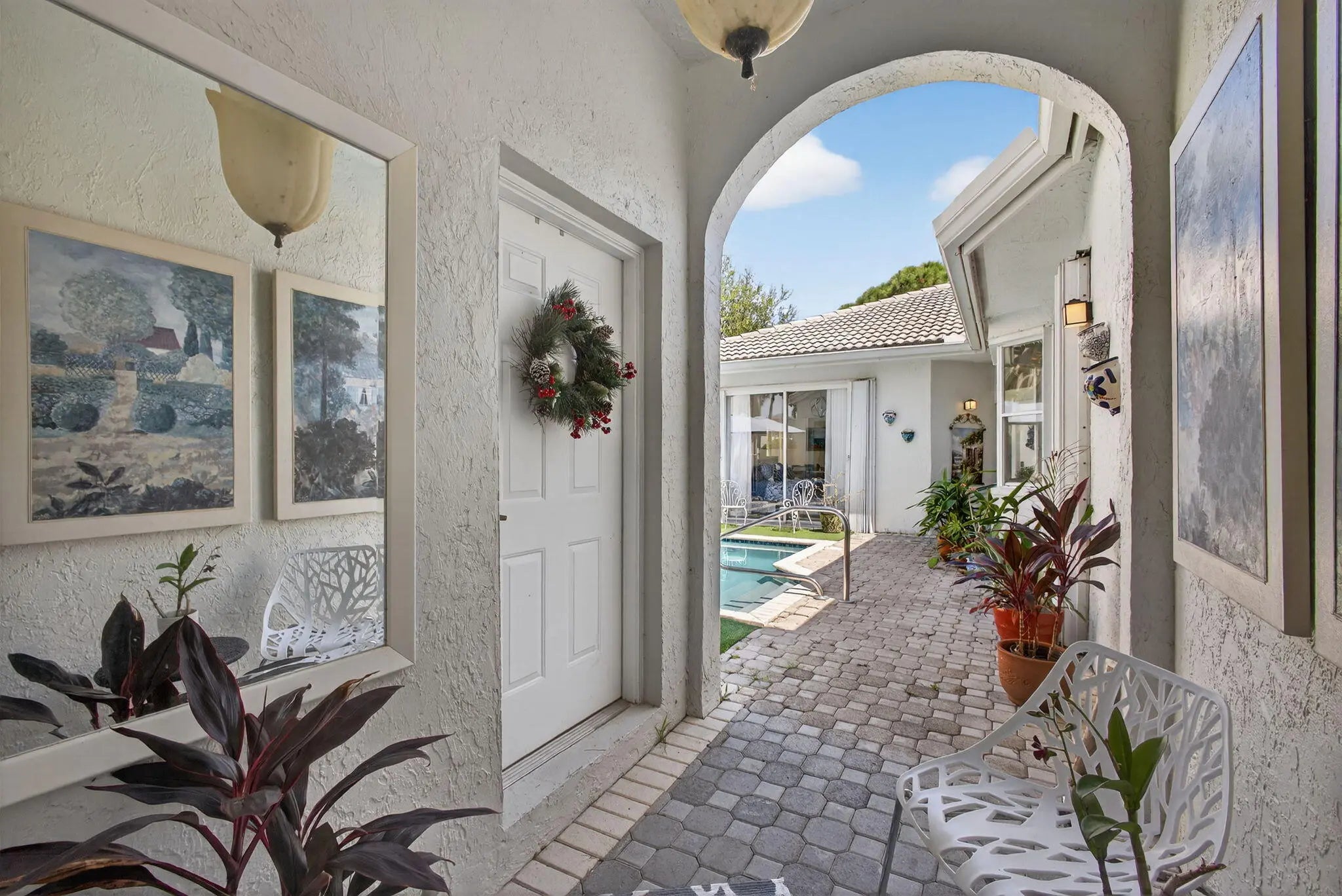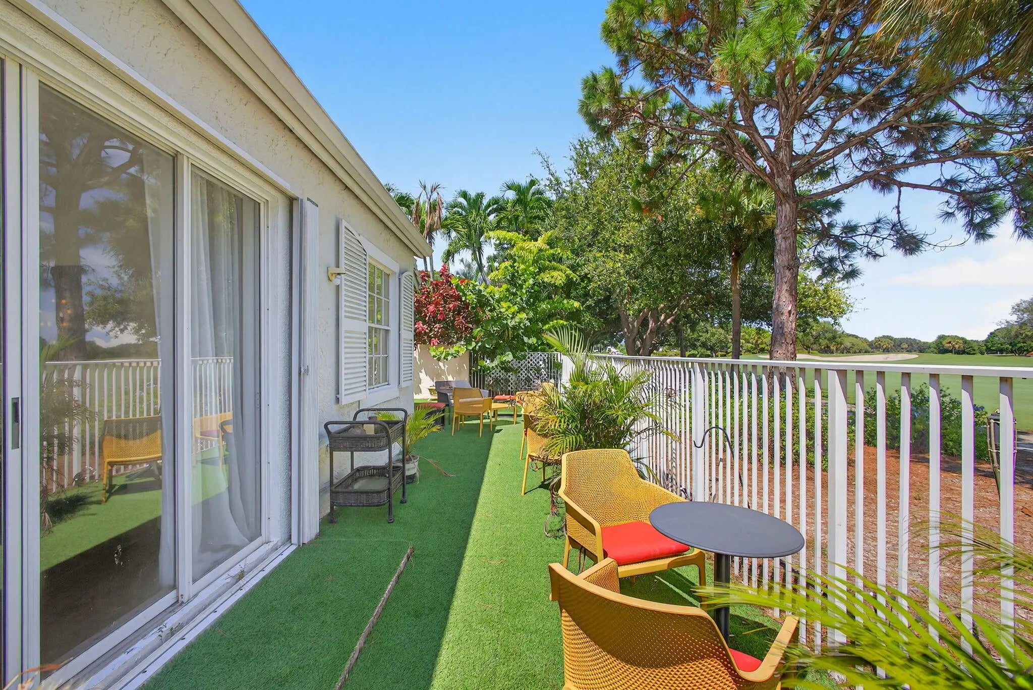 Rarely available single-story courtyard home perfectly situated on a private golf course lot! Experience the best of South Florida living with this distinctive floor plan, where the heart of the home opens to a private courtyard and sparkling pool surrounded by lush tropical landscaping. Start your mornings with coffee overlooking the tranquil fairways or unwind poolside in total privacy. The main residence boasts 2 bedrooms and 2 bathrooms, filled with natural light and highlighted by wood and tile flooring (no carpet!) The open airy design seamlessly blends indoor comfort with picturesque golf course views, creating a home that is both inviting and unique. The kitchen has been tastefully updated with plenty of cabinetry, Corian countertops,