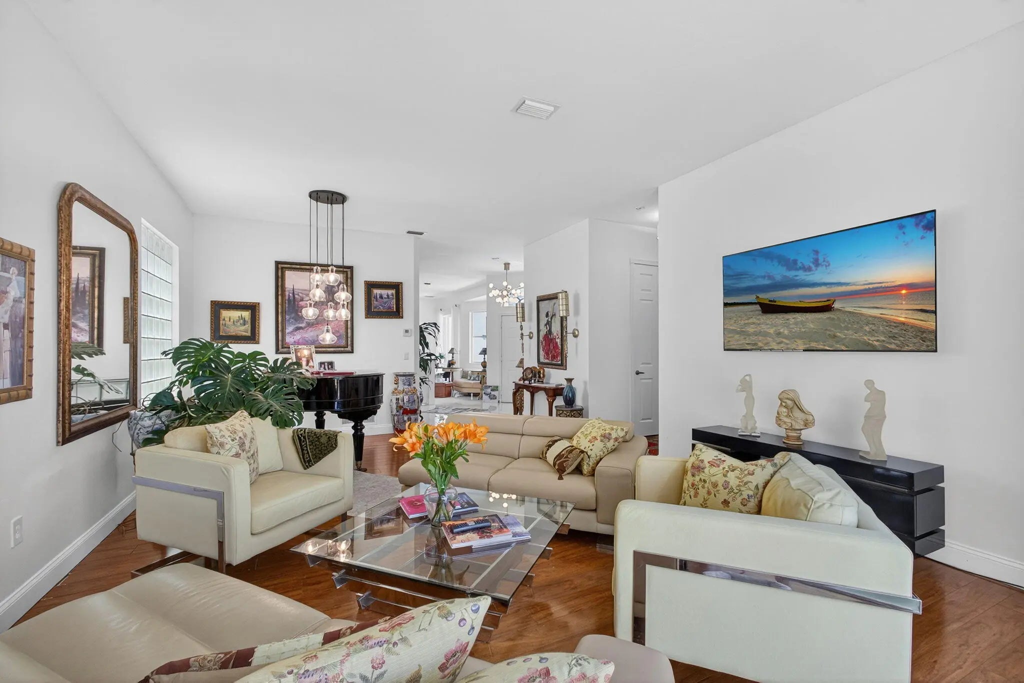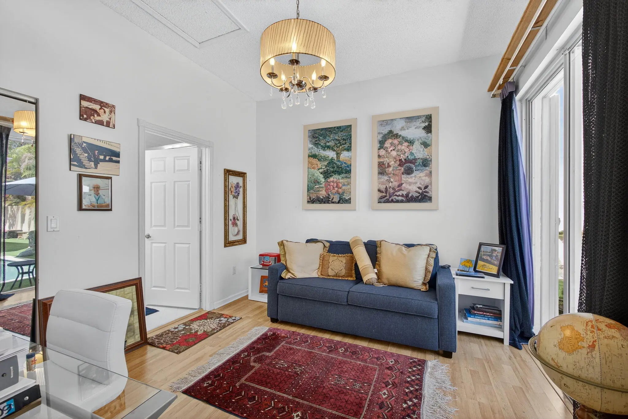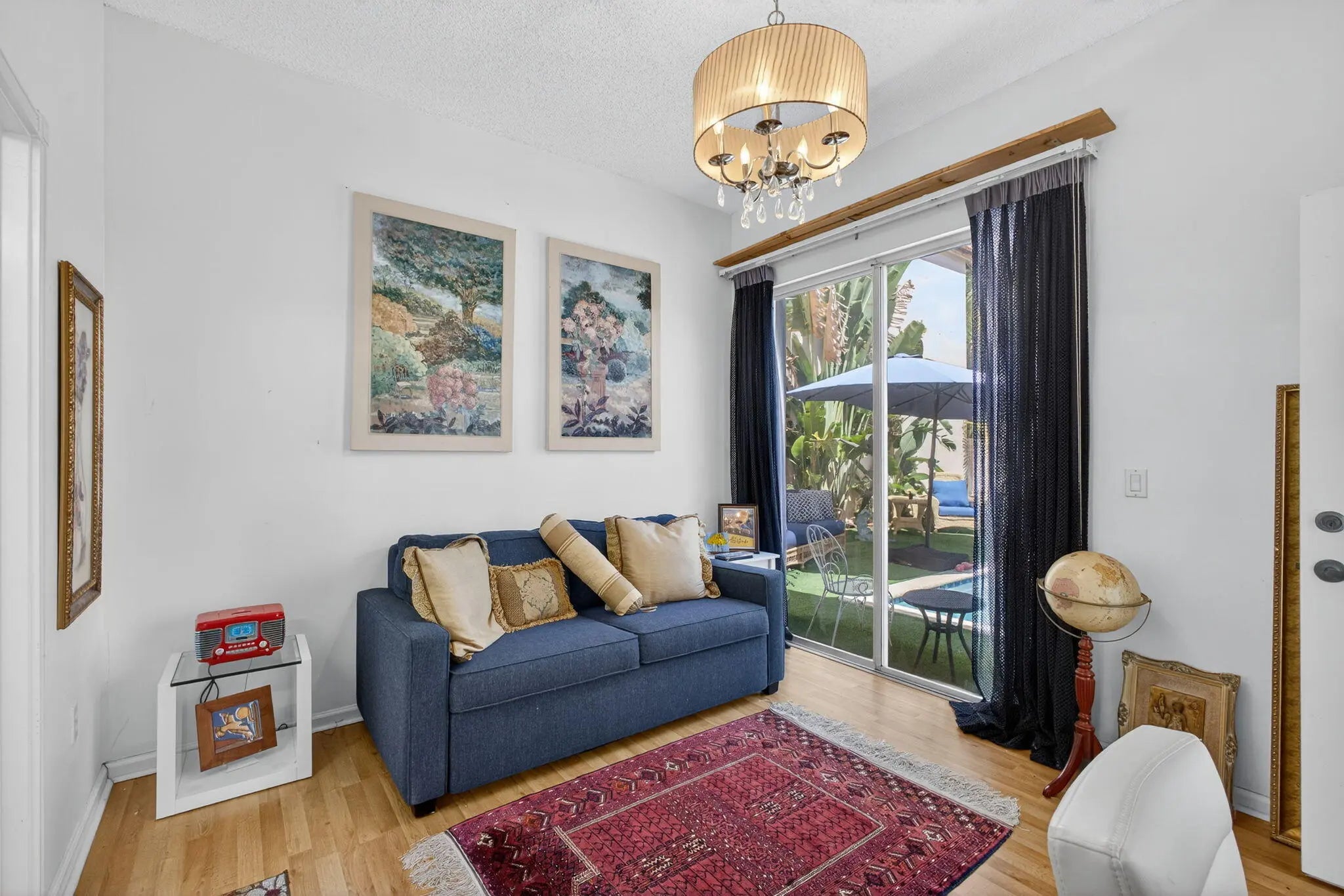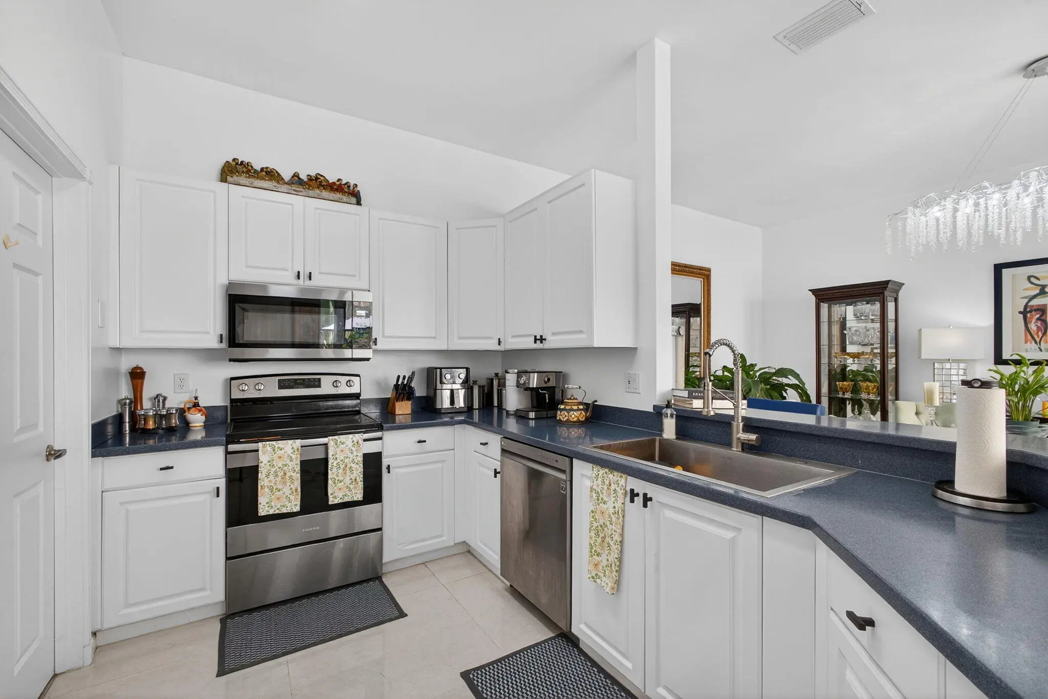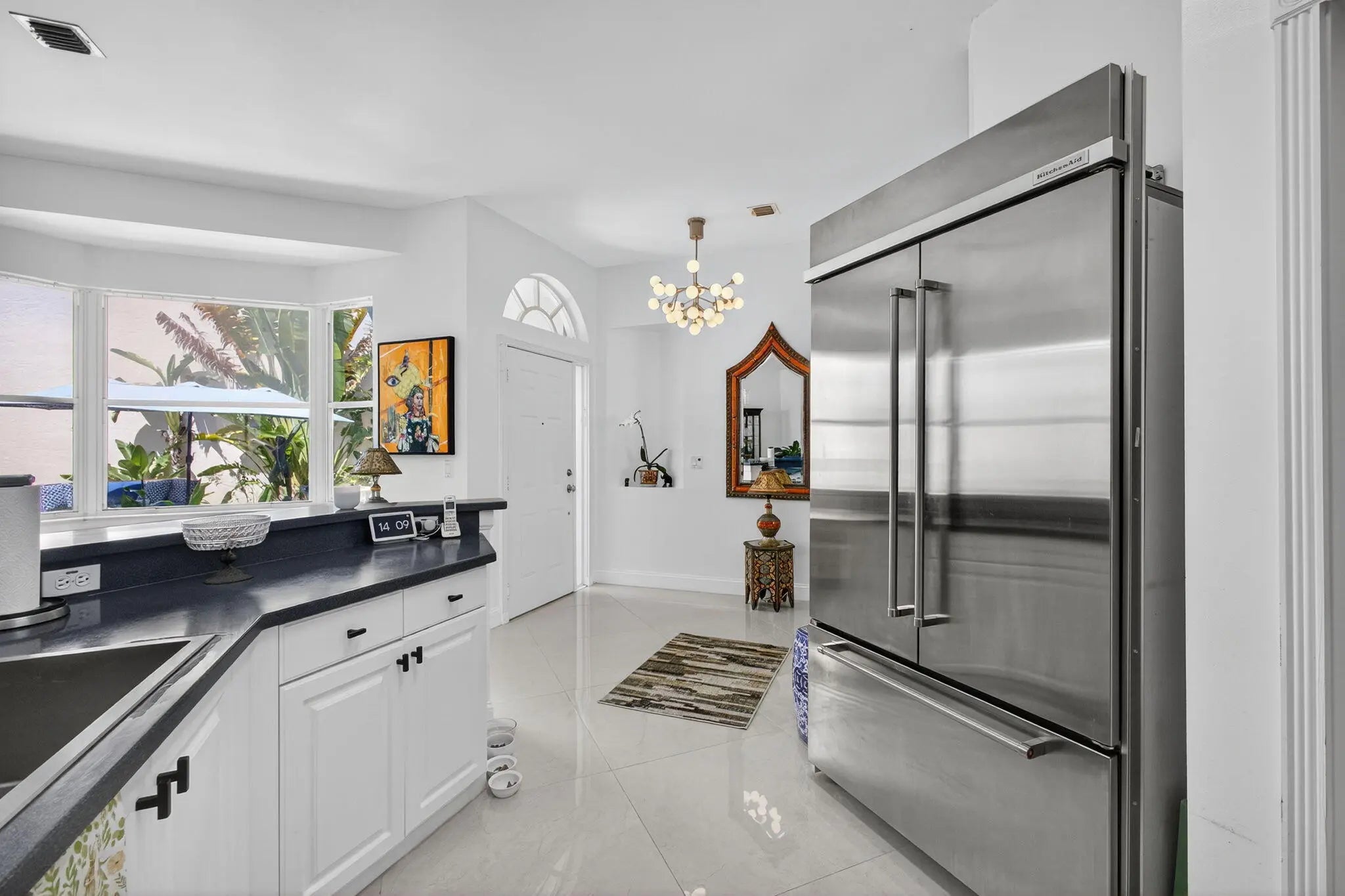 Rarely available single-story courtyard home perfectly situated on a private golf course lot! Experience the best of South Florida living with this distinctive floor plan, where the heart of the home opens to a private courtyard and sparkling pool surrounded by lush tropical landscaping. Start your mornings with coffee overlooking the tranquil fairways or unwind poolside in total privacy. The main residence boasts 2 bedrooms and 2 bathrooms, filled with natural light and highlighted by wood and tile flooring (no carpet!) The open airy design seamlessly blends indoor comfort with picturesque golf course views, creating a home that is both inviting and unique. The kitchen has been tastefully updated with plenty of cabinetry, Corian countertops,