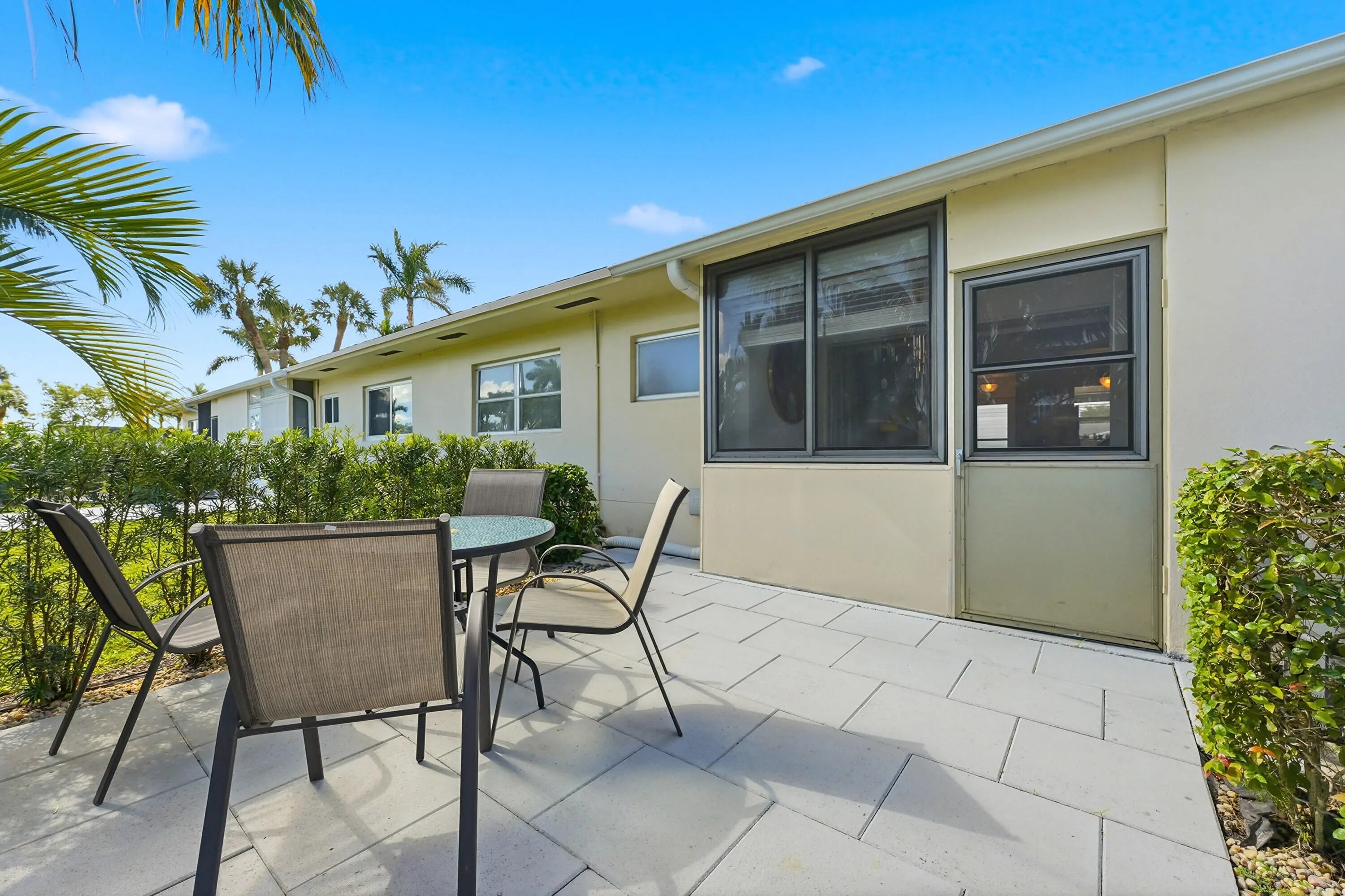 Charming 2/2 Updated Villa! Wood-Look Tile flooring, Updated Kitchen, Tasteful Coastal Decor! Brand New A/C 2025! New Water Heater 2024! All new electric wiring and New appliances 2024! Association takes care of everything on the outside, including the roof, landscaping and painting! Plus insurance on the outside! Saving You $$.Your basic cable TV is provided by the association! It's a short Walk to the clubhouse and Pool! Partially furnished so It's a perfect vacation home, as well! EASY TO SHOW