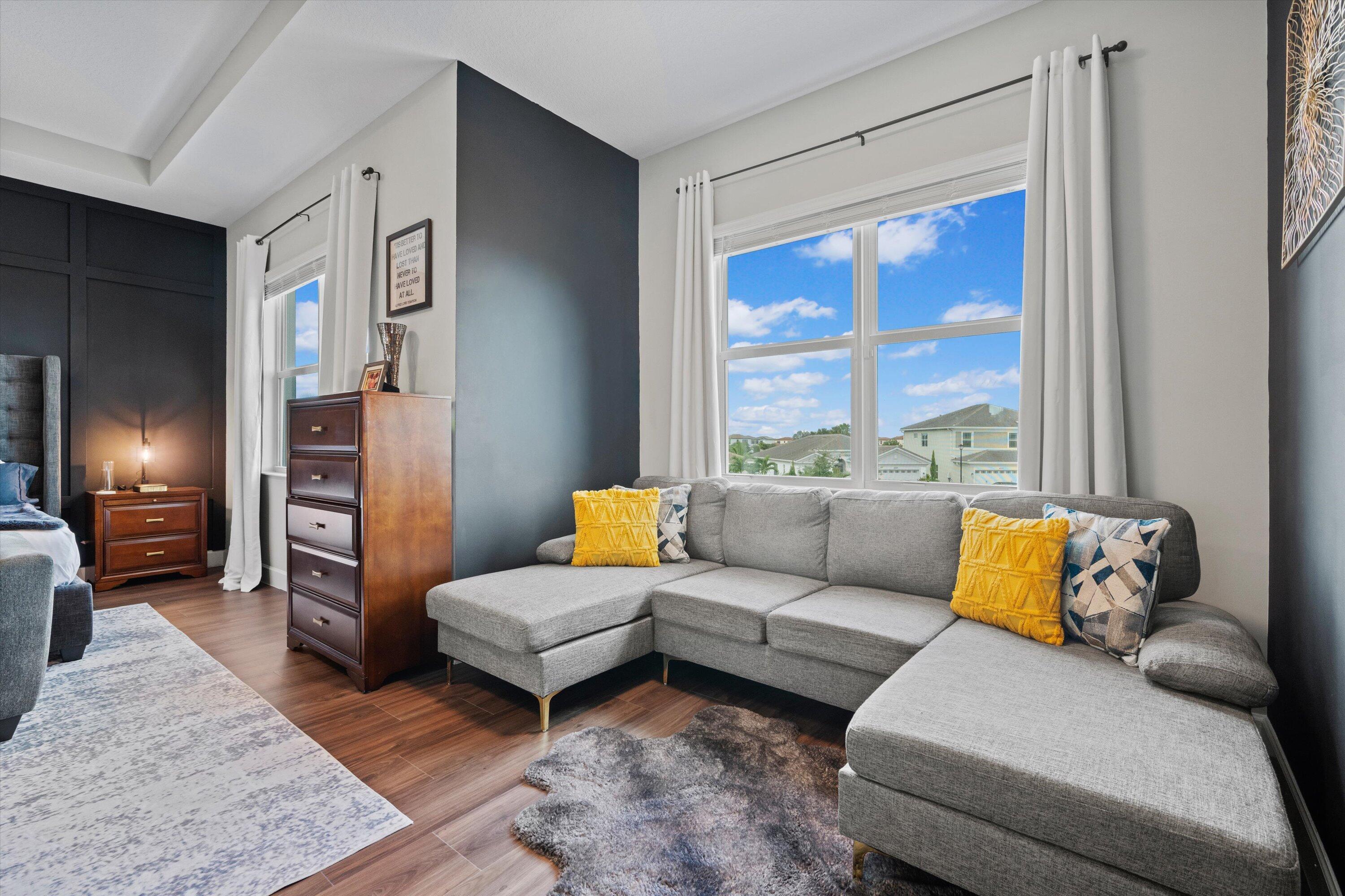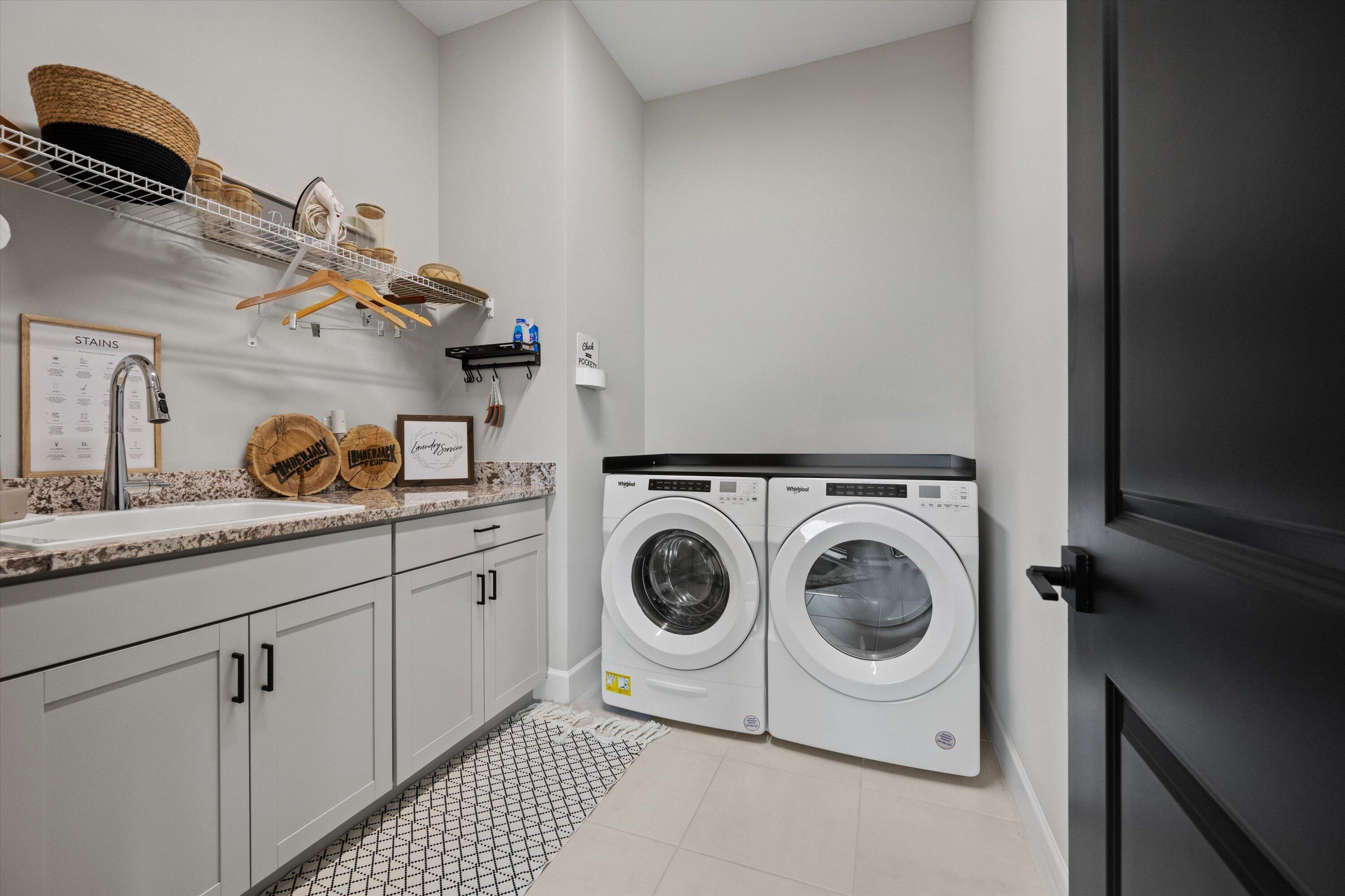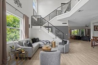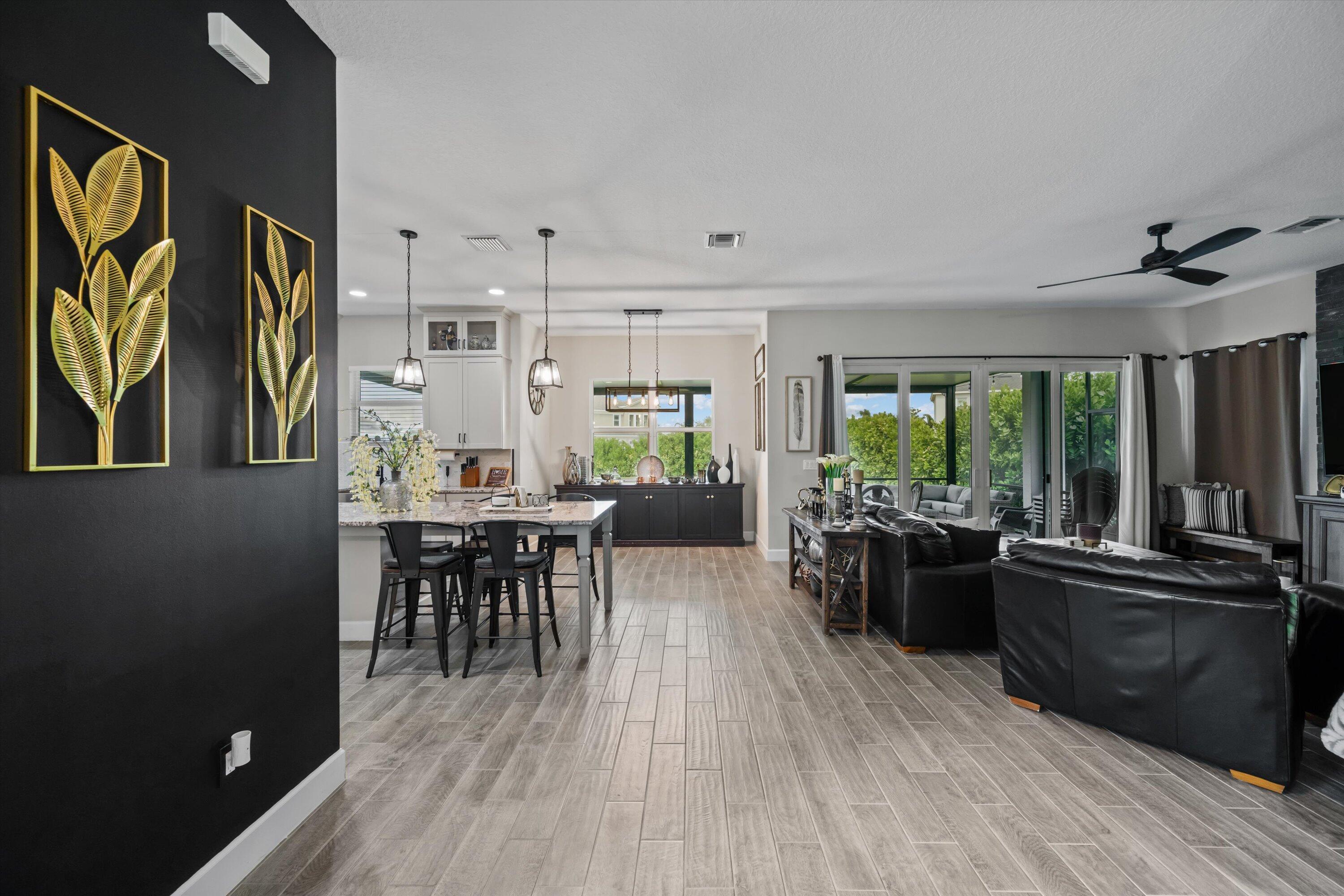 This stunning Laurel Grand model delivers modern design and effortless living in one of Westlake's most desirable neighborhoods. A dramatic double-door entry opens to soaring ceilings, a sleek open layout, and wood-look tile throughout the main living areas. The chef's kitchen takes center stage with an oversized island, granite countertops, full-height stacked cabinetry with glass-front uppers, stainless steel appliances, gas cooktop, wall oven, farmhouse sink, and statement pendant lighting - perfect for both everyday living and entertaining.The great room and dining area flow seamlessly to wide sliding glass doors leading to a gorgeous extented screened-in patio, ideal for indoor-outdoor living.Upstairs, a spacious loft offers a flexible entertainment retreat for movie nights, game days, orsecondary living space. The primary suite is a true escape, featuring a custom accent wall, tray ceiling, and a spa-style bath with dual vanities and a frameless glass shower. Additional features include a flex room for office or play, a designer laundry room with cabinetry and sink, and a three-car garage with upgraded storage. The fenced backyard offers privacy, green space, and room for a future pool. Located in The Groves of Westlake, residents enjoy access to Adventure Park with a lagoon-style pool, water slide, splash pad, sports courts, playground, dog park, and more.