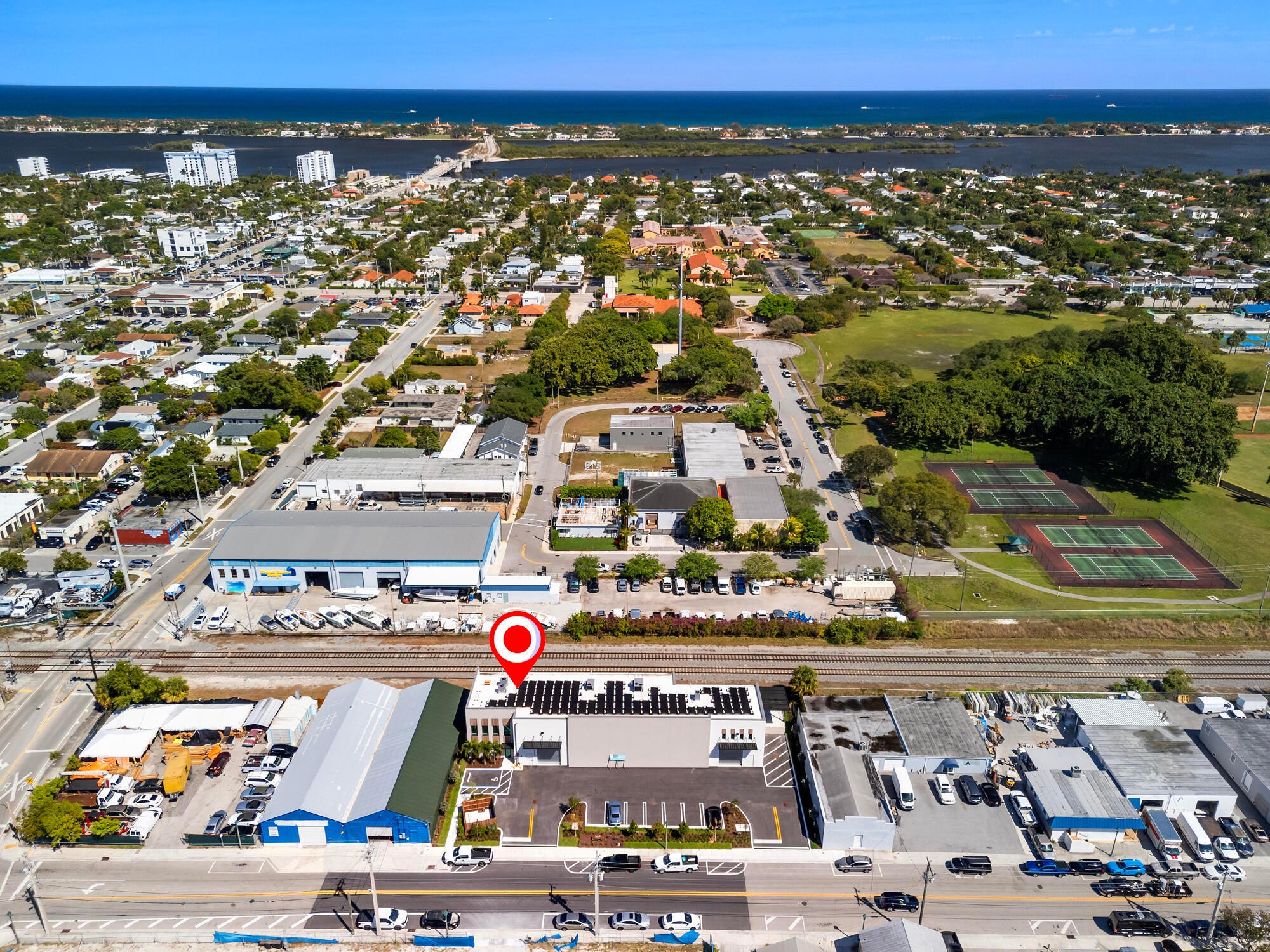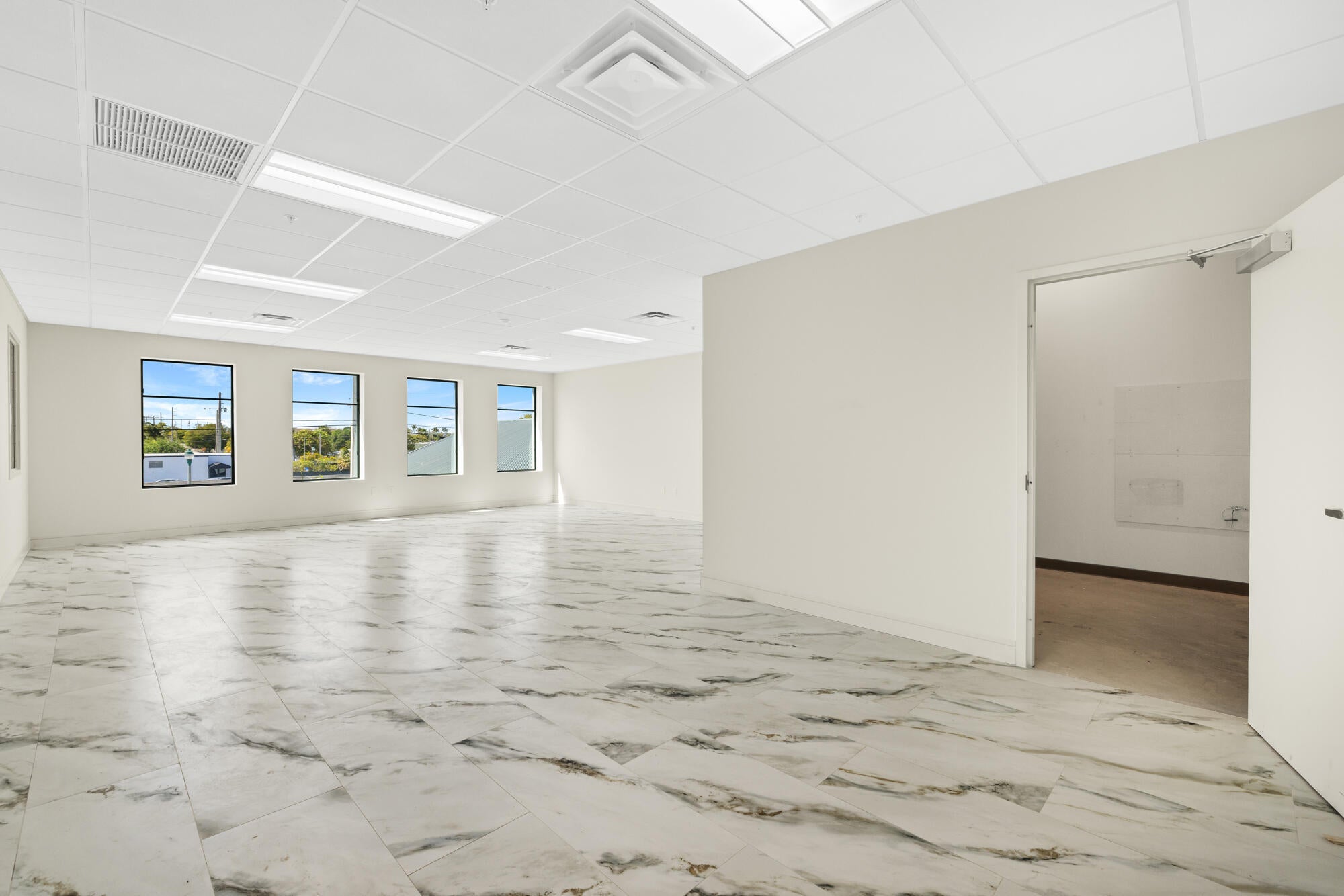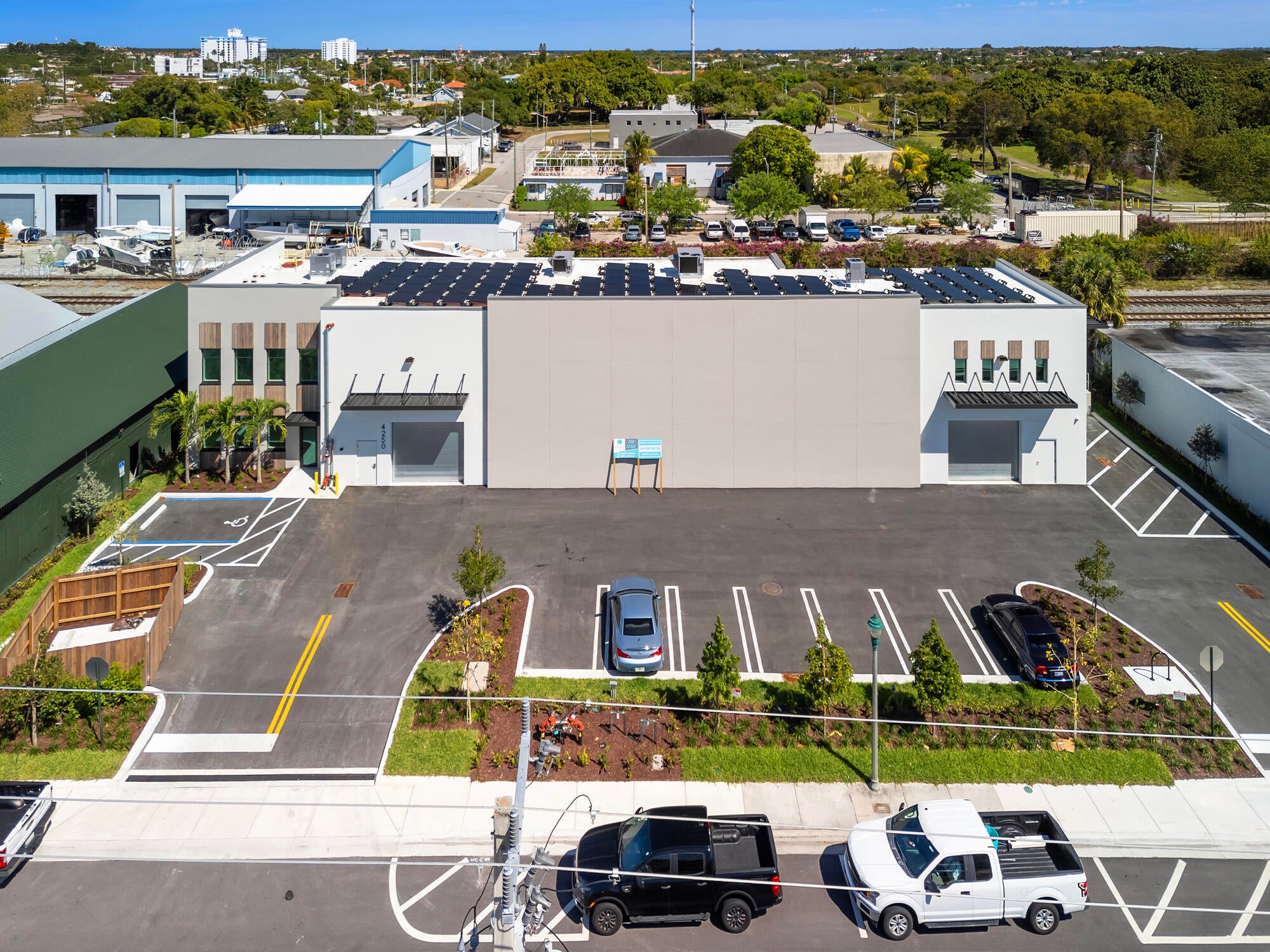 This state-of-the-art ''green'' warehouse prioritizes sustainability and environmentally conscious construction and design. The project is 100 % completed and ready for immediate occupancy. The entire warehouse is approximately 7100 square feet in size, with almost 3500 square feet available for lease. The space includes two finished office/flex areas totaling 1350 square feet and two finished bathrooms. The warehouse is equipped with 100 solar panels that provide sustainability of electricity during the day, I.E, little to NO FPL bill! The windows and doors are made of high-impact material that provides protection from the elements and cooling efficiency. Large integrated ceiling fan provides additional cooling and air circulation for additional efficiency, and the entire 3500 SFwarehouse space is under air. Accessibility is a breeze with the large roll-up garage door. 4 parking spaces plus 1 handicap. Currently equipped with a state of the art security system that future tenant can purchase at a discount. Conveniently located just South of Southern Blvd and just West of Dixie on Georgia Ave, a 5 min drive downtown WPB, to PB Island or I95.