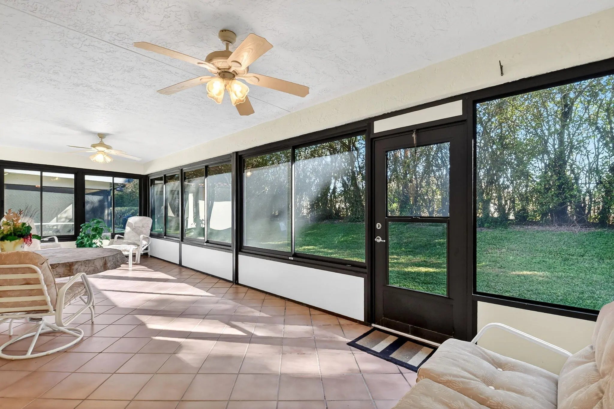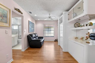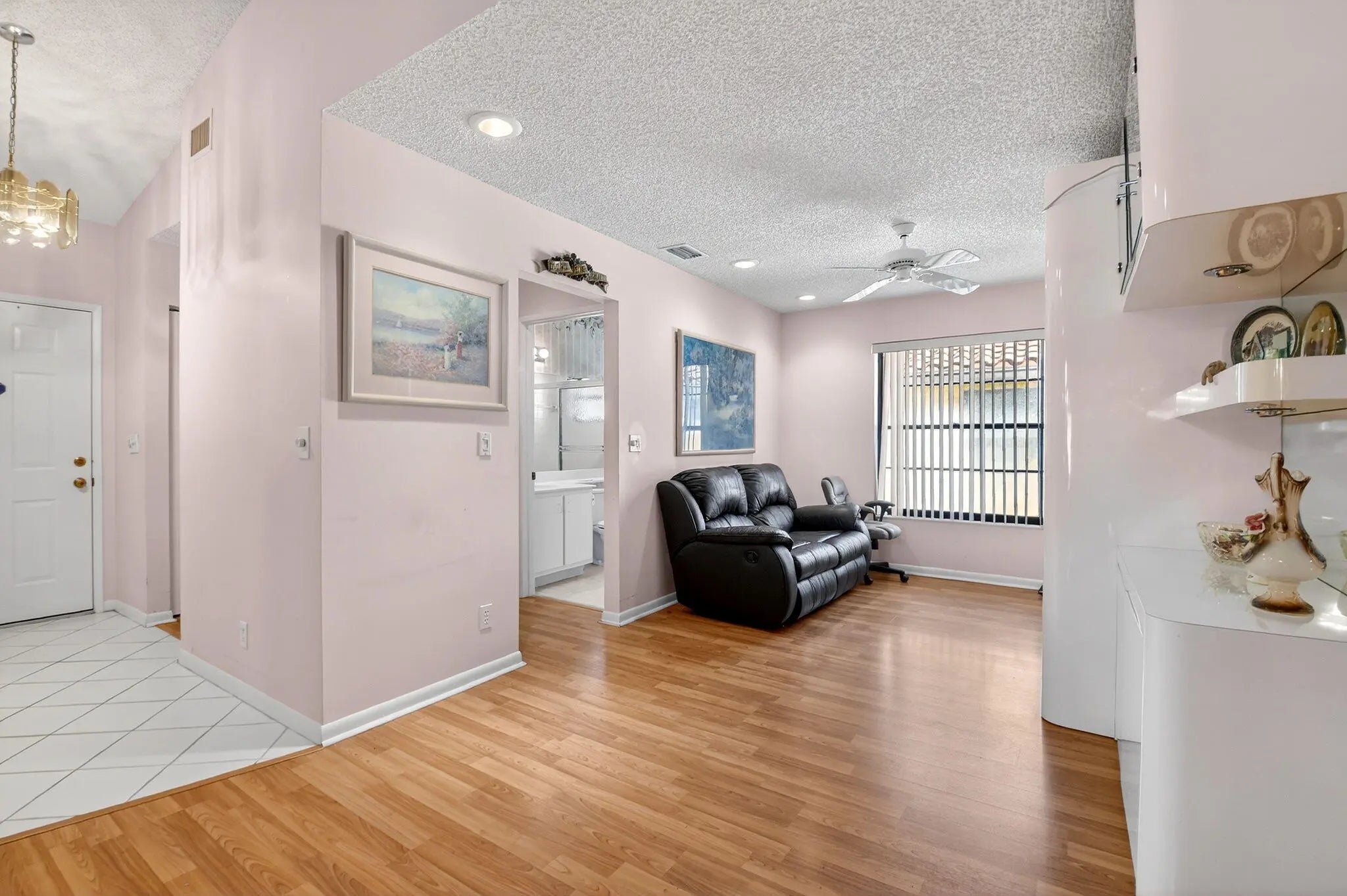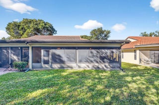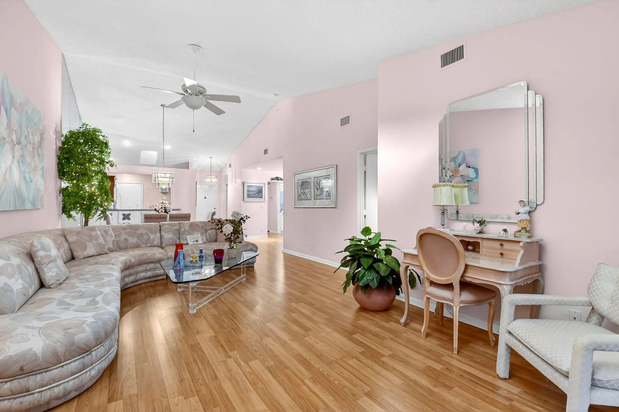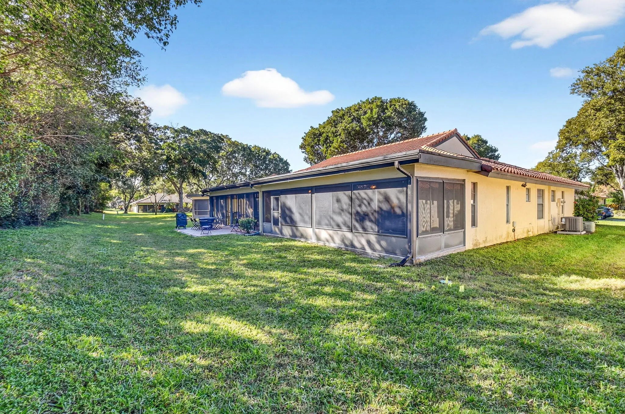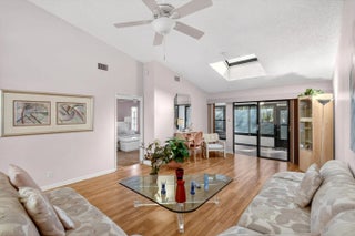 Well-kept 3BR/2BA villa with a one-car garage and a large 300 sq ft enclosed lanai in the desirable 55+ Palm Chase Lakes community. This light-filled home offers two bedrooms plus a flexible den or third bedroom, skylights, and a 2024 A/C & 2023 WH. Enjoy resort-style living with a clubhouse, fitness center, pools and sauna, pickleball, tennis, billiards, shuffleboard, and an active social calendar. Ideally located close to I-95, the Florida Turnpike, shopping, dining, and within walking distance to houses of worship.