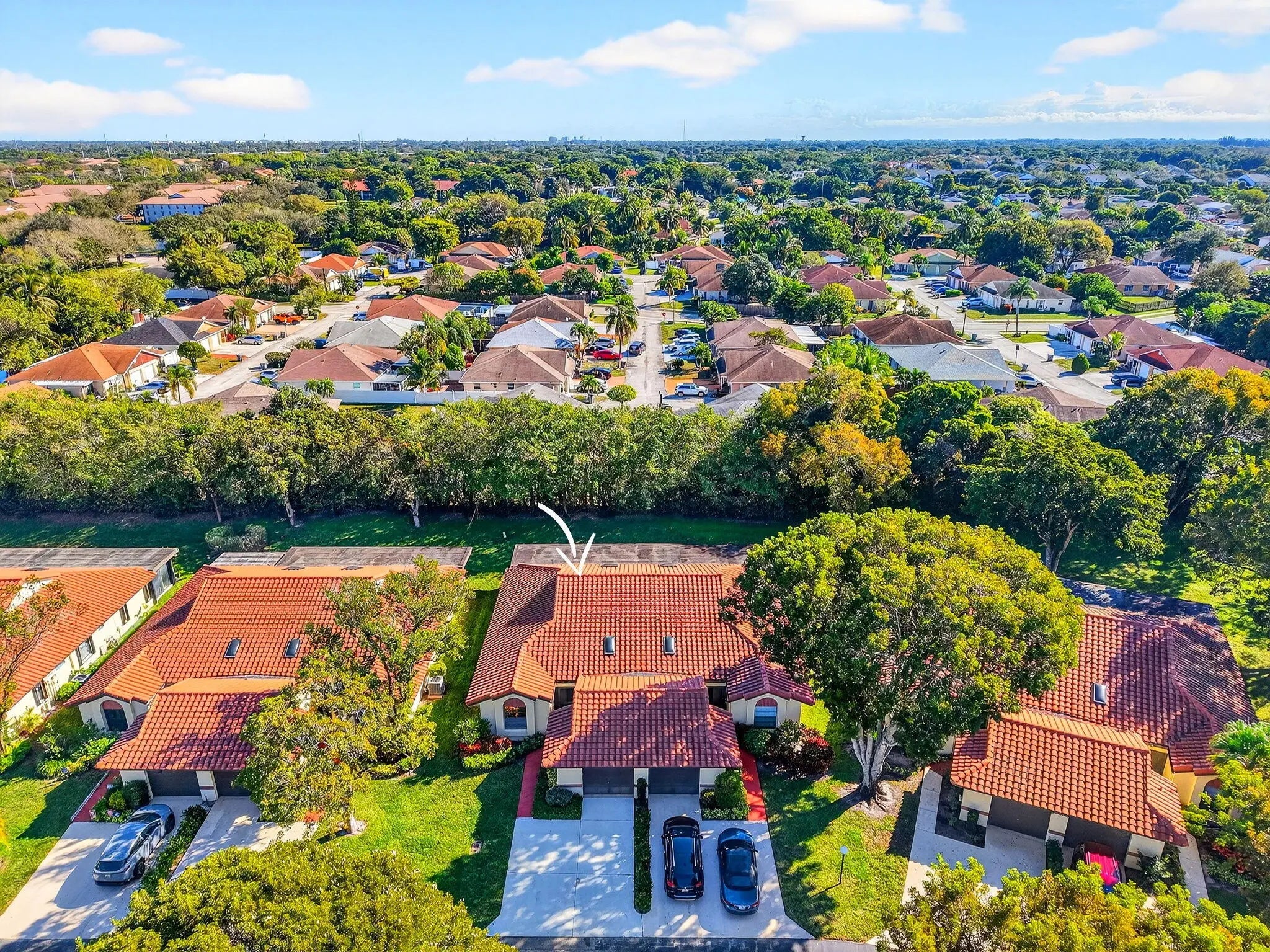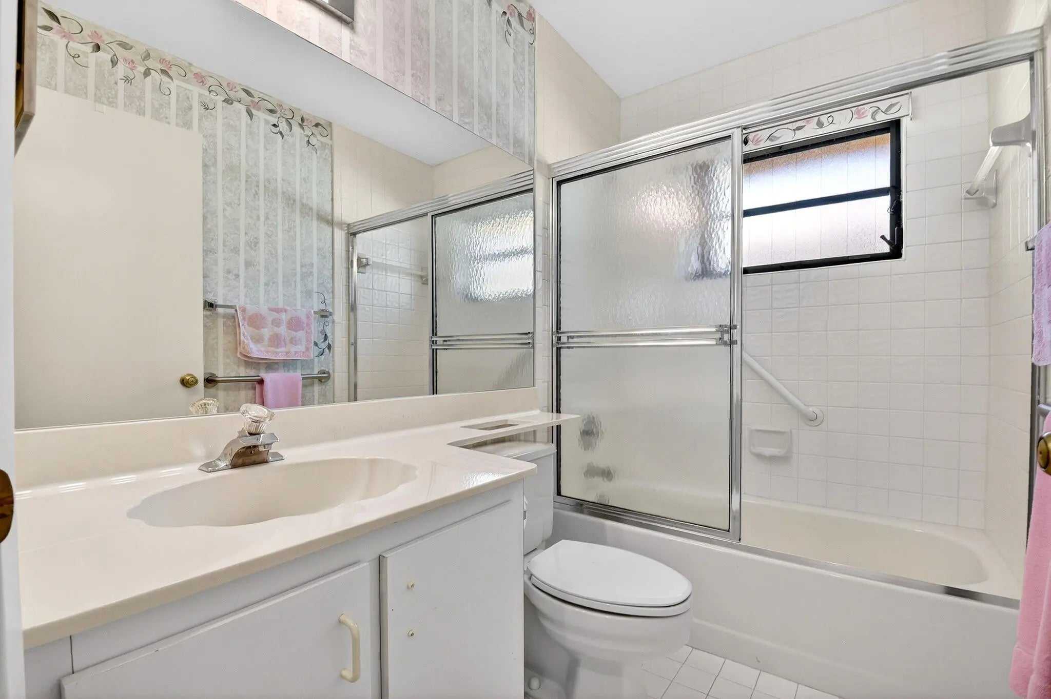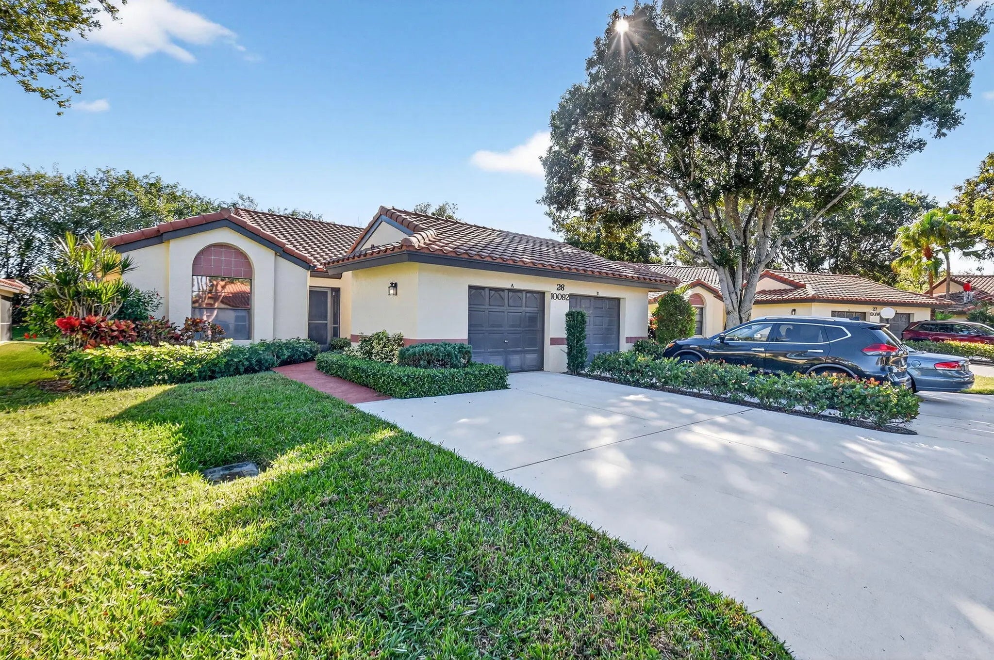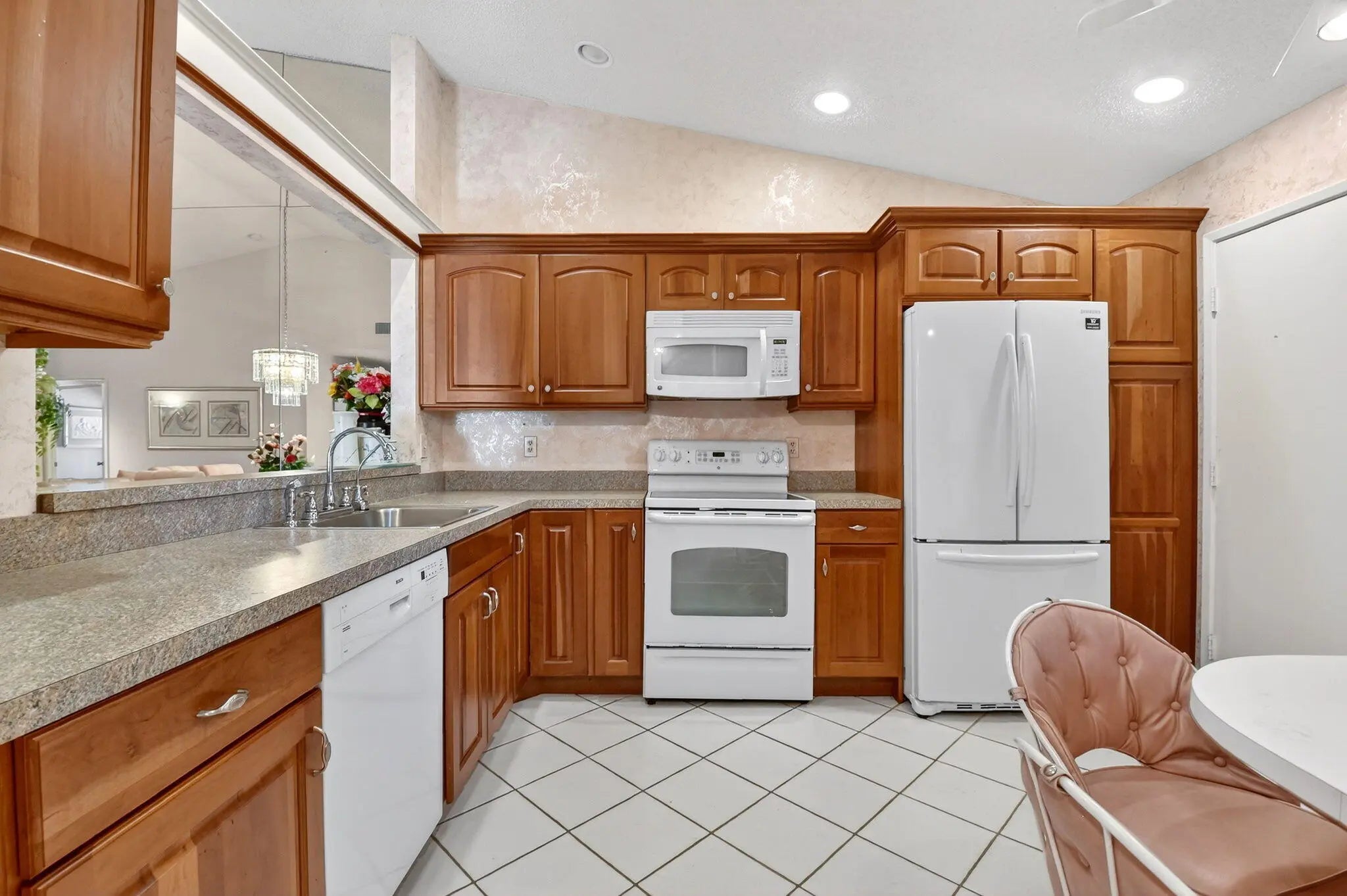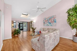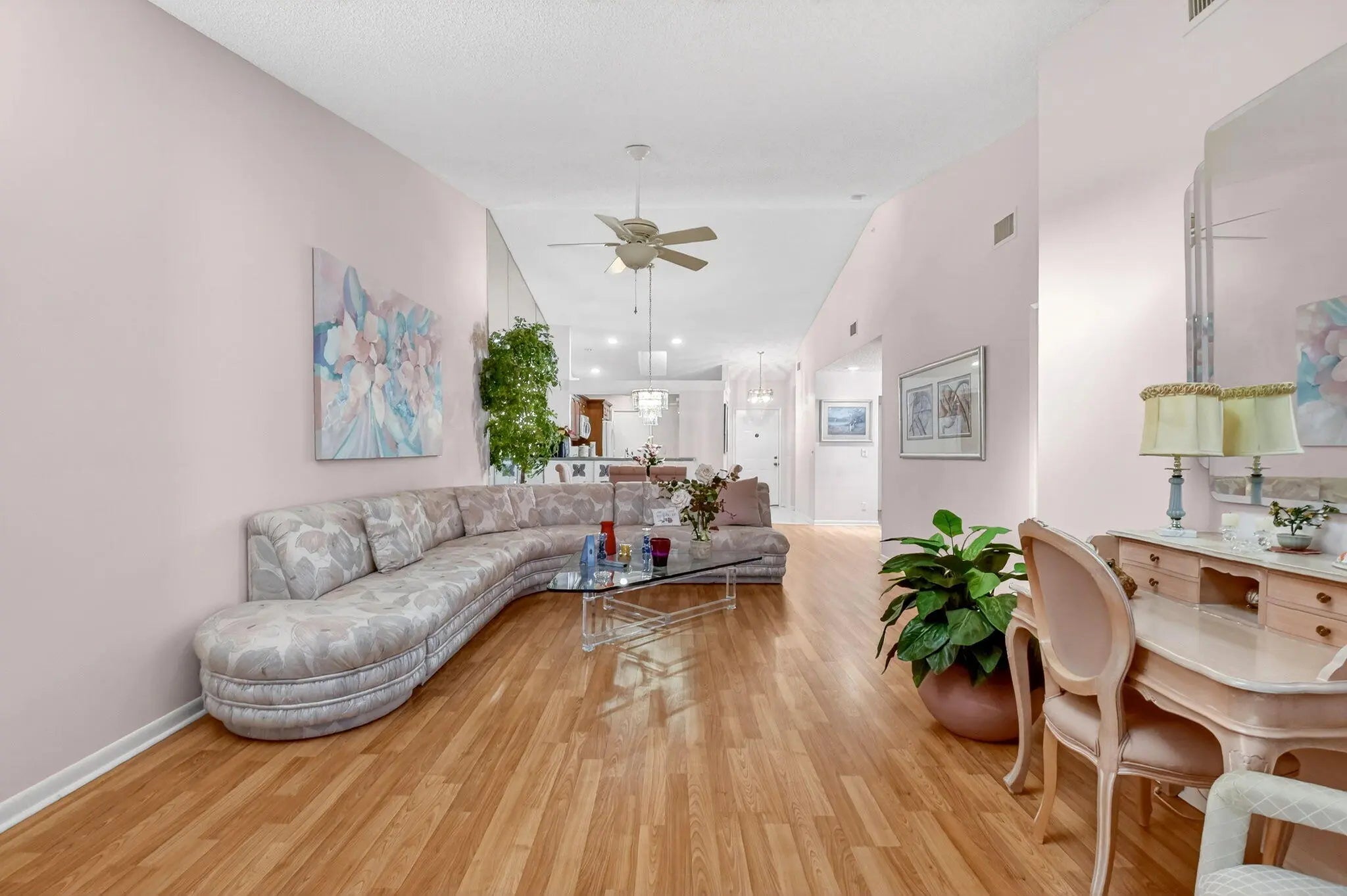 Well-kept 3BR/2BA villa with a one-car garage and a large 300 sq ft enclosed lanai in the desirable 55+ Palm Chase Lakes community. This light-filled home offers two bedrooms plus a flexible den or third bedroom, skylights, and a 2024 A/C & 2023 WH. Enjoy resort-style living with a clubhouse, fitness center, pools and sauna, pickleball, tennis, billiards, shuffleboard, and an active social calendar. Ideally located close to I-95, the Florida Turnpike, shopping, dining, and within walking distance to houses of worship.
