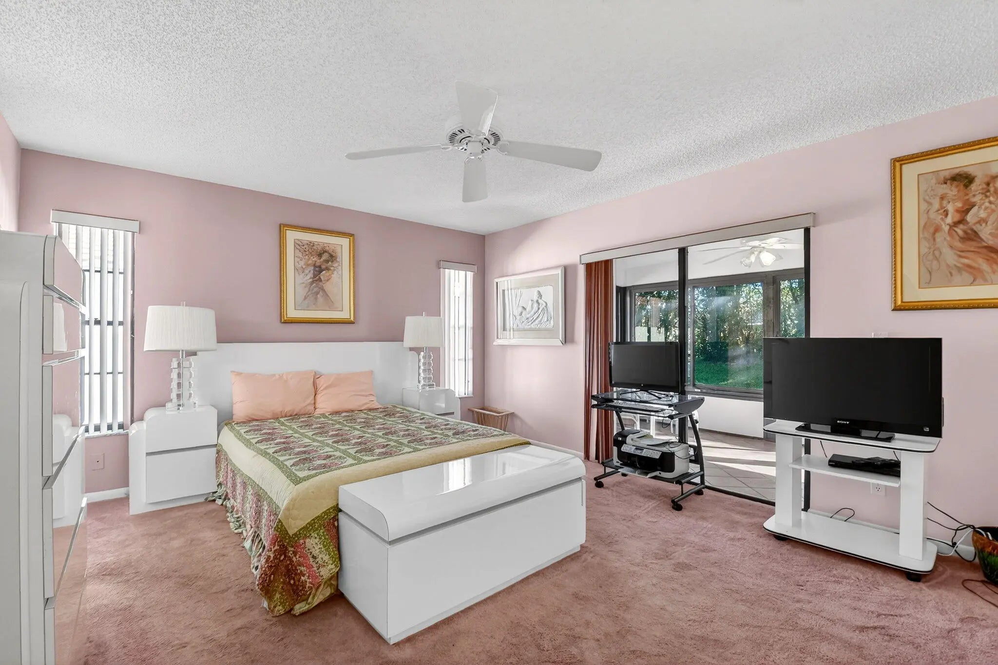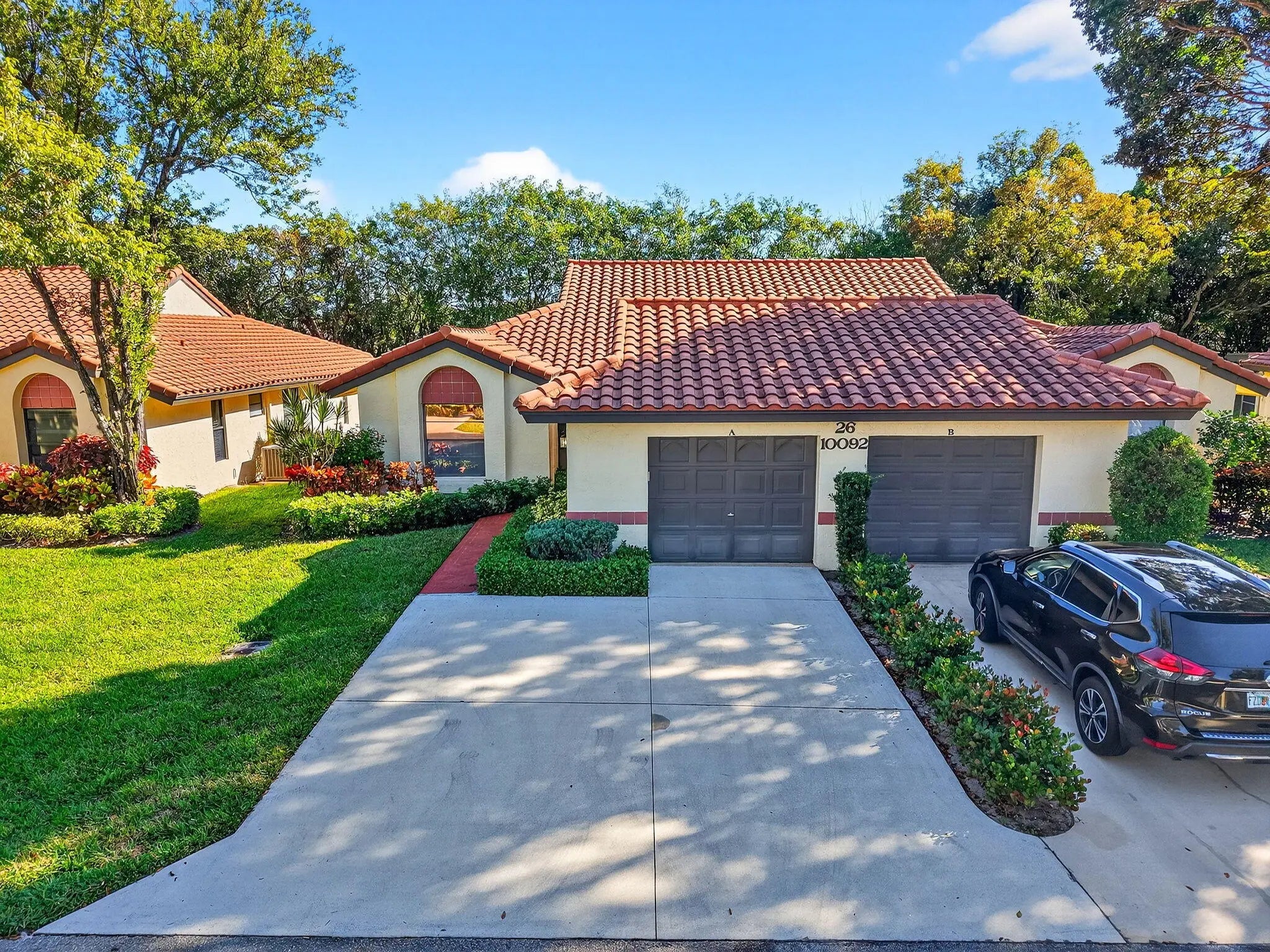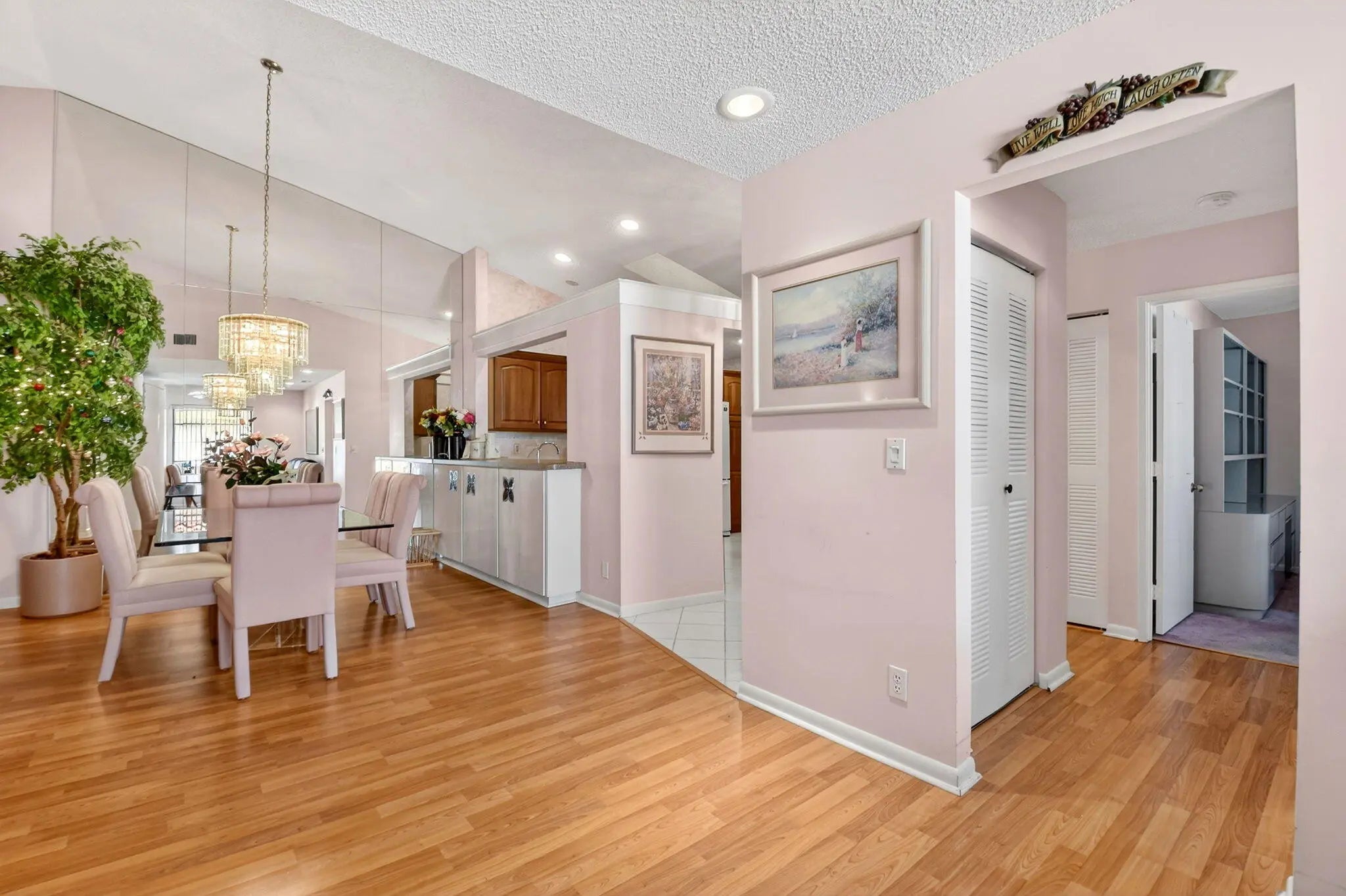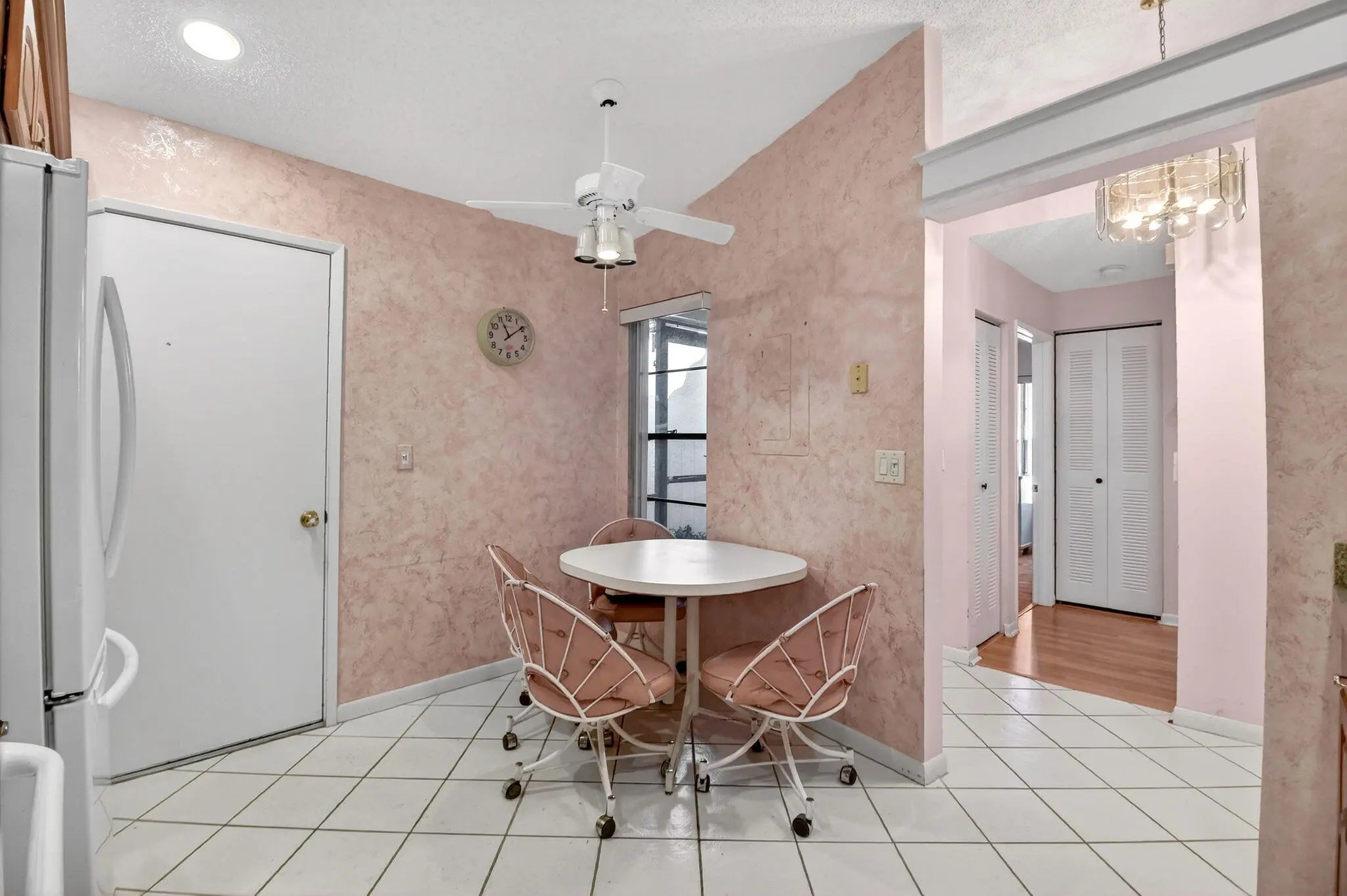 Well-kept 3BR/2BA villa with a one-car garage and a large 300 sq ft enclosed lanai in the desirable 55+ Palm Chase Lakes community. This light-filled home offers two bedrooms plus a flexible den or third bedroom, skylights, and a 2024 A/C & 2023 WH. Enjoy resort-style living with a clubhouse, fitness center, pools and sauna, pickleball, tennis, billiards, shuffleboard, and an active social calendar. Ideally located close to I-95, the Florida Turnpike, shopping, dining, and within walking distance to houses of worship.
