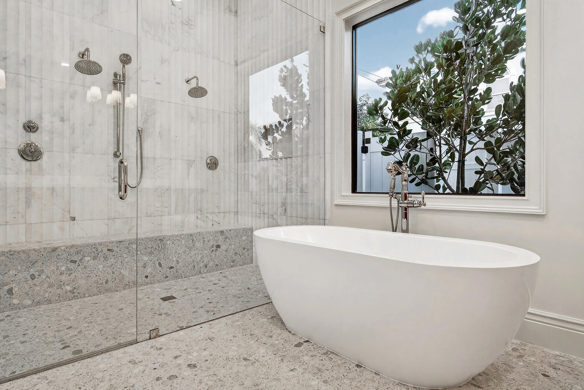 Completed in 2025, this new-construction residence is ideally positioned on a quiet street within the sought-after SoSo enclave, offering coastal living moments from the Intracoastal Waterway. Spanning 4,358 SF of living space (5,133 TSF), the home features five bedrooms, an office, five full baths, and one half-bath. The layout includes a first-floor primary suite and a second upstairs primary suite, providing rare flexibility for modern living. Light-filled interiors showcase clean architectural lines, volume ceilings, wood flooring, and an open-concept layout that flows seamlessly to covered outdoor living, pool, and spa. Select second-floor rooms offer glimpses of the Intracoastal.Located near the Flagler Drive bike path, Summa Beach, tennis and golf, marinas, downtown West Palm Beach, CityPlace, and PBI Airport, the home enjoys a quiet residential setting with convenient access to Palm Beach Island and the surrounding waterfront and beaches. Note: FPL is currently working on undergrounding electrical power lines in the neighborhood. All measurements and information are deemed reliable but not guaranteed. Buyer to independently verify.