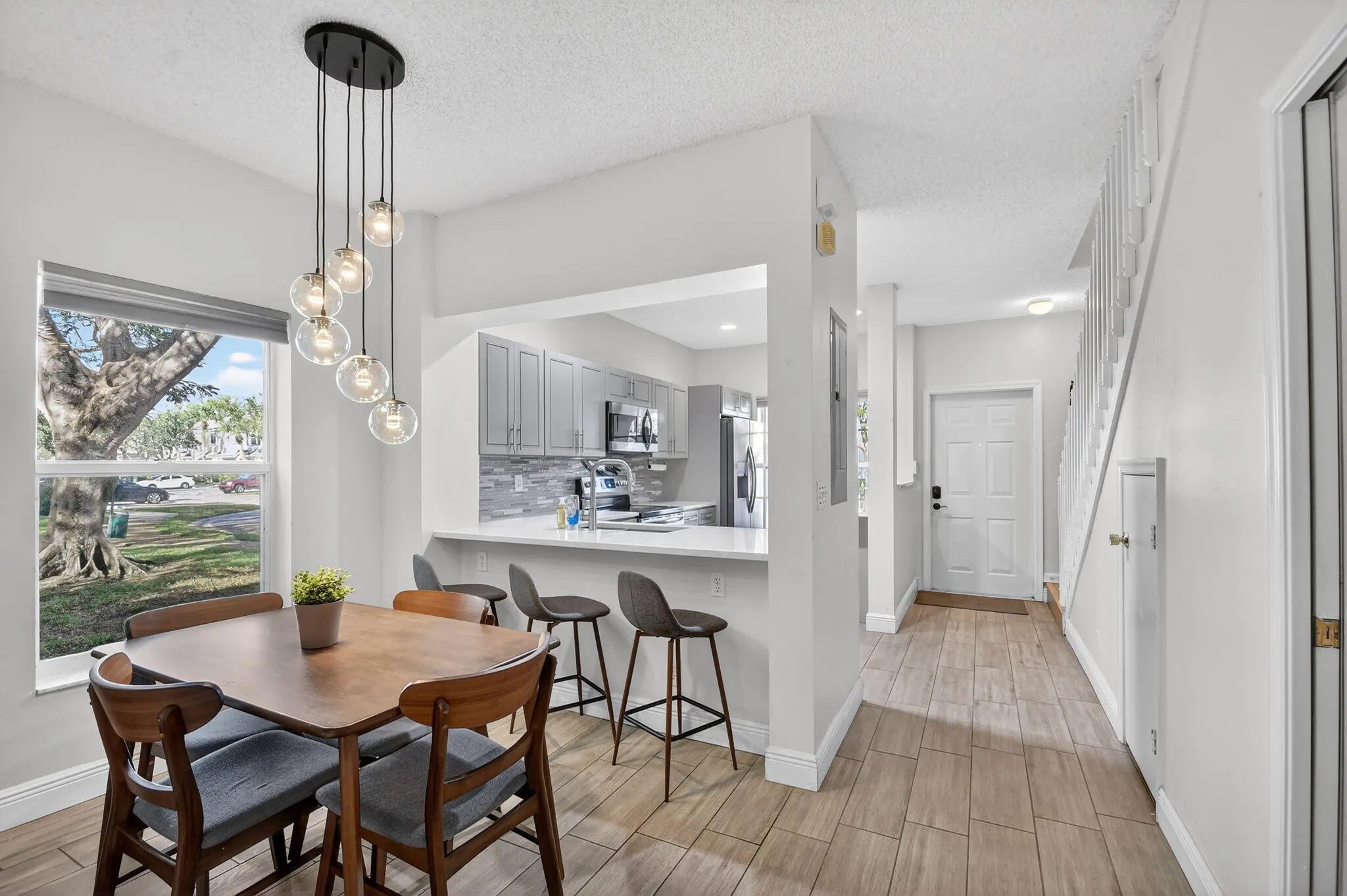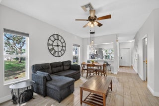 Updated and impeccable end unit townhouse in the highly sought after Jonathan's Cove community. Porcelain wood plank tile throughout the first floor and an updated kitchen with quartz countertops. 2 master suites upstairs with their own private bathrooms (exquisitly updated master bath), laundry is conveniently located between them (brand new dryer). Furniture negotiable, available furnished or unfurnished. Great location close to the ballparks, Citiplace, beaches, airports, shopping, etc. and all the West Palm Beach area has to offer.