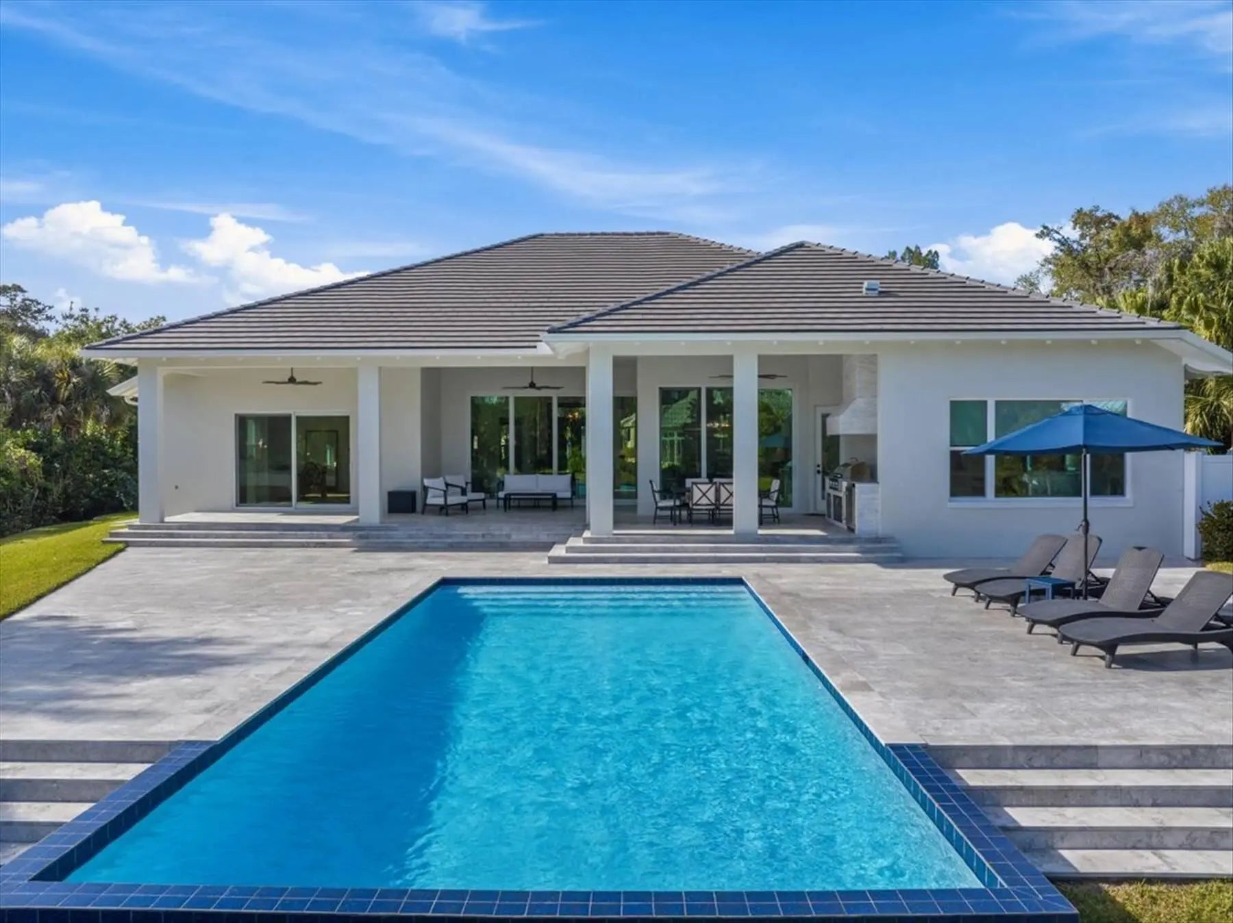 Welcome to your dream home in The Shores, Vero Beach! This stunning 4-bedroom, 3.5-bath residence, built in 2024, offers 3,859 sq ft of modern elegance and serene lakefront charm. A dedicated flex room/office is perfect for remote work or relaxation. Enjoy airy 10-foot sliders in the main room, providing breathtaking lake views & natural light. Step outside to your private oasis w/ a sparkling pool--ideal for refreshing swims or gatherings. The gourmet kitchen features high-end appliances & elegant wood floors enhance the contemporary aesthetic. Ample storage throughout ensures space for all your belongings. Nestled between the Indian River & Atlantic Ocean, The Shores offers a tranquil lifestyle w/ easy access to beautiful beaches, vibrant local amenities, Stargazing & Rocket Launches!