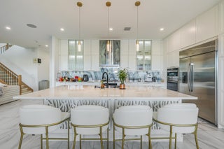 Experience elevated living in this stunning Mariana model located in the highly desirable Lotus Palm community. Offering a true resort-style lifestyle, this 5-bedroom plus loft, 5-bath residence spans approximately 3,888 sq. ft. with bright, open-concept layout ideal for both entertaining and everyday living. Luxury upgrades include hardwood floors on the 2nd level, a fireplace, high-end fixtures, custom shower doors, smart toilets, and striking chandeliers.Enjoy tranquil Lake views, an all-weather private pool, natural gas barbecue, and outdoor lighting.The home is enhanced with smart automated drapery, EV charging, prewired indoor/outdoor sound, custom furniture and premium closet systems. The upper level features a lavish primary suite, three additional bedrooms, and a versatile loft.