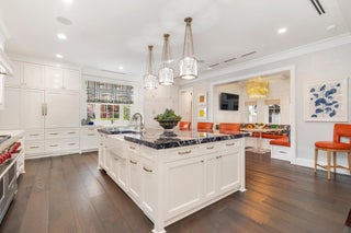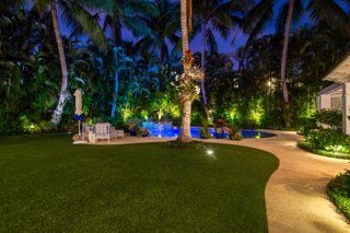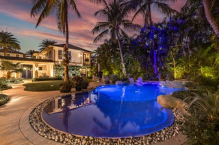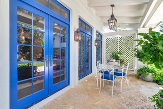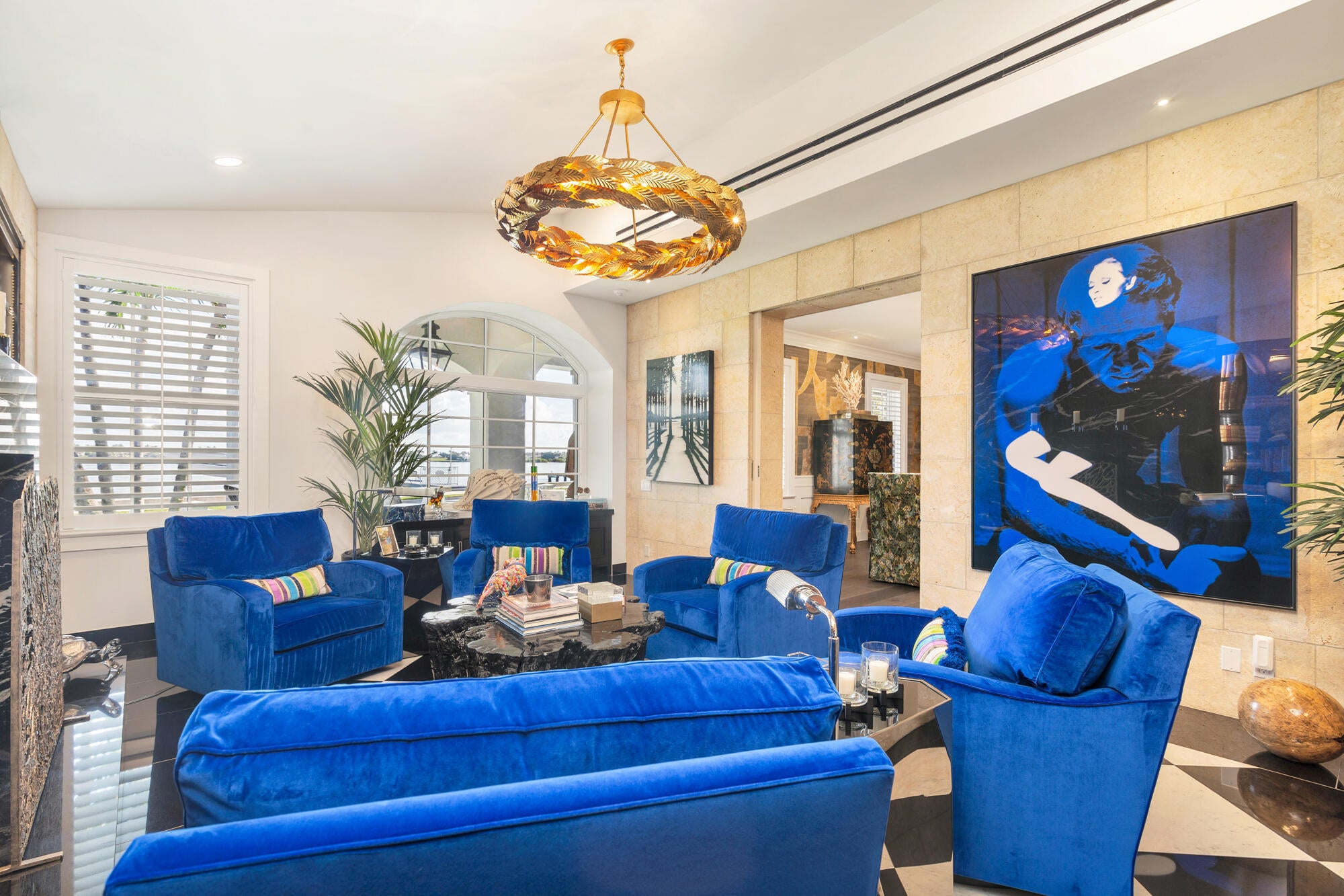Regarded as the Jewel of South Flagler, this beloved waterfront residence sits on over a half-acre of prime Intracoastal property with over 130 feet of water frontage, celebrated for its striking architecture and inspired design.Originally envisioned by Roy & Posey Architects and completed by Island Construction in 2013 and now fully-transformed and elevated by the world-renowned Robert Trown and Associates, the estate spans over 9,000+/- square feet under roof and is composed of a main residence complemented by a separate guest house. The primary home includes five bedrooms and four and a half baths, with a first-floor bedroom currently enjoyed as an office, and a separate one-bedroom guest house replete with a full kitchen, vaulted ceilings, and private balcony.Oriented to capture wide-water views, the main living areas offer an open family room flowing into an eat-in kitchen, appointed with imported custom Italian cabinetry and a dramatic rare imported blue Sodalite island. The formal dining room frames the Intracoastal, while expansive glass doors open to covered loggias to create an effortless indoor-outdoor rhythm. The owner's suite is light-filled and airy, featuring panoramic views and balcony. Throughout, curated designer finishes and custom dramatic light fixtures add definition and artistry to every space. Outdoors, the property lives as a private resort, with a heated pool and spa, generous terraces for lounging and dining, and a backyard oasis highlighted by an artistic living wall. The private dock includes a 50,000-pound boat lift, accommodating substantial vessels with ease. A detached guest house with private entry, full kitchen, and studio-style living/sleeping space provides ideal accommodations for guests or extended stays. Located minutes from beaches, the Flagler Drive waterfront path, PBIA, dining, shopping, and .9 miles from Mar A Lago, this offering represents waterfront living at its most refined, architecturally significant, beautifully finished, and rarely available. DISCLAIMER: The written and verbal information provided including but not limited to prices, measurements, square footages, lot sizes, calculations and statistics have been obtained and conveyed from third parties such as the applicable Multiple Listing Service, public records as well as other sources. All information including that produced by the Sellers or Listing Company are subject to errors, omissions or changes without notice and should be independently verified by any prospect for the purchase of a Property. The Sellers and Listing Company expressly disclaim any warranty or representation regarding all information. Prospective purchasers' use of this or any written and verbal information is acknowledgement of this disclaimer and that Prospects shall perform their own due diligence. Prospective purchasers shall not rely on any written or verbal information provided when entering a contract for sale and purchase. Some affiliations may not be applicable to certain geographic areas. Copyright 2023 Listing Company. All Rights Reserved.