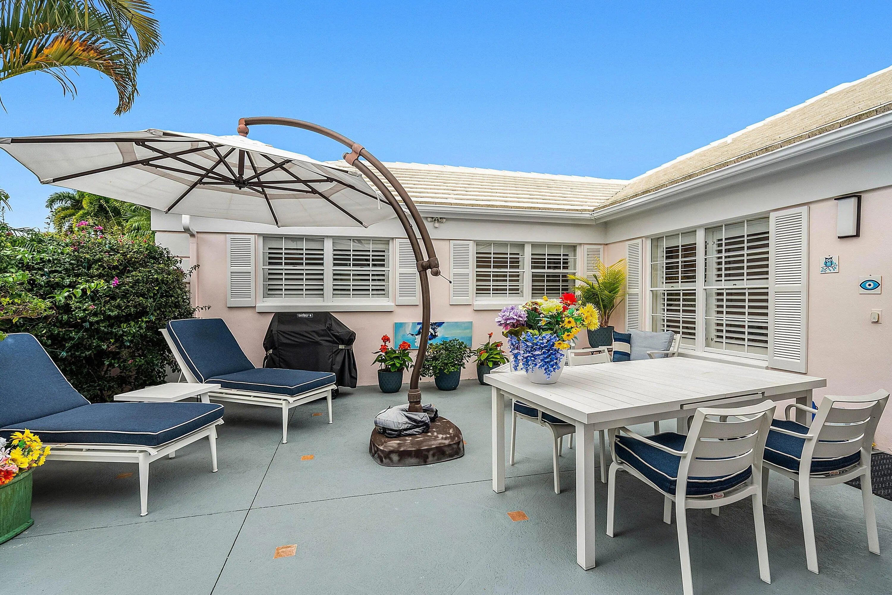 Beautiful villa in the Sanderling area of Quail Ridge, surrounded by lush garden views. An open front courtyard welcomes you into the home, creating a peaceful and private entry experience. Well-designed floor plan features three bedrooms, two full baths, and one half bath. Expanded kitchen with gas range. The spacious main bedroom offers a large walk-in closet, while the guest bedroom includes an ensuite bath for added comfort and privacy. Enjoy the convenience of a garage and the beauty of thoughtfully designed landscaping enhanced by both solar and electric lighting. A wonderful opportunity to enjoy relaxed living in a serene, country club environment. Quail Ridge is a mandatory membership community offering top tier golf courses, racquet sports, fitness center & spa, and a clubhouse