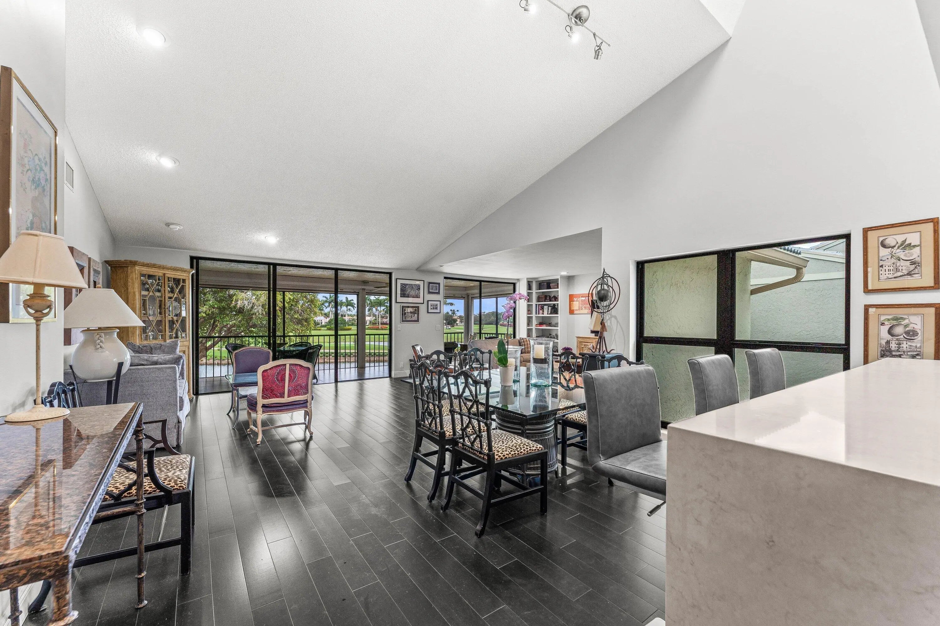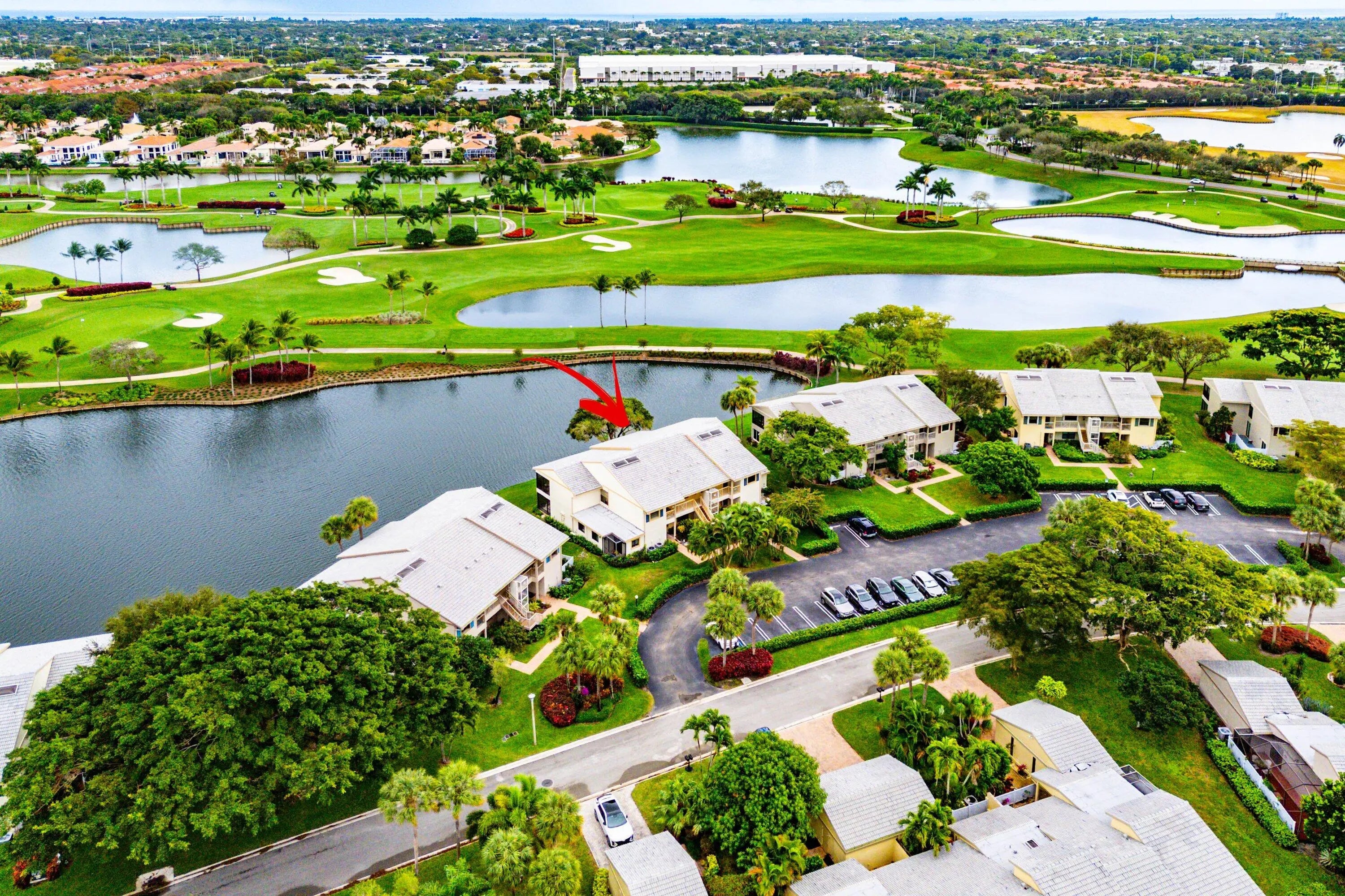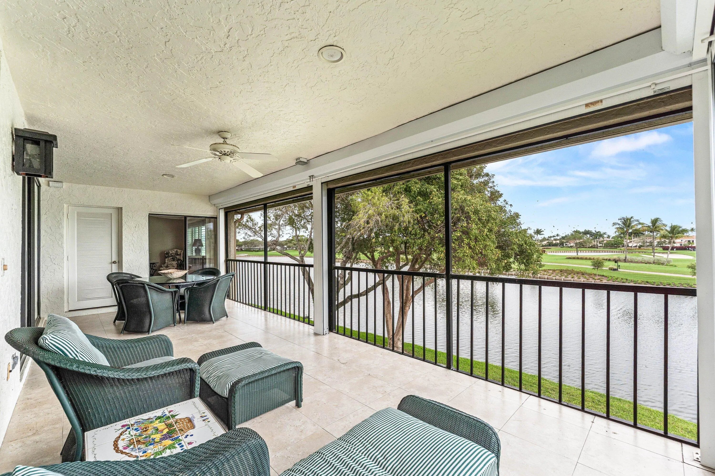 Welcome home to this exceptional, recently renovated upper-floor condominium where vaulted ceilings and refined finishes frame breathtaking views across the newly renovated East Course and a shimmering lake. This distinctive convertible 3-bedroom, 2-bath home offers a sophisticated open-concept design enhanced by bamboo flooring and an updated chef's kitchen featuring high-end appliances, custom lighting, & elegant flow for both entertaining and everyday living. Walls of new hurricane impact windows flood the home with natural light while offering peace of mind, and the screened lanai is equipped with Storm Smart category electric hurricane shutters to enjoy indoor-outdoor living. Additional highlights include a newer A/C system, full-size washer and dryer, and convenient elevator access
