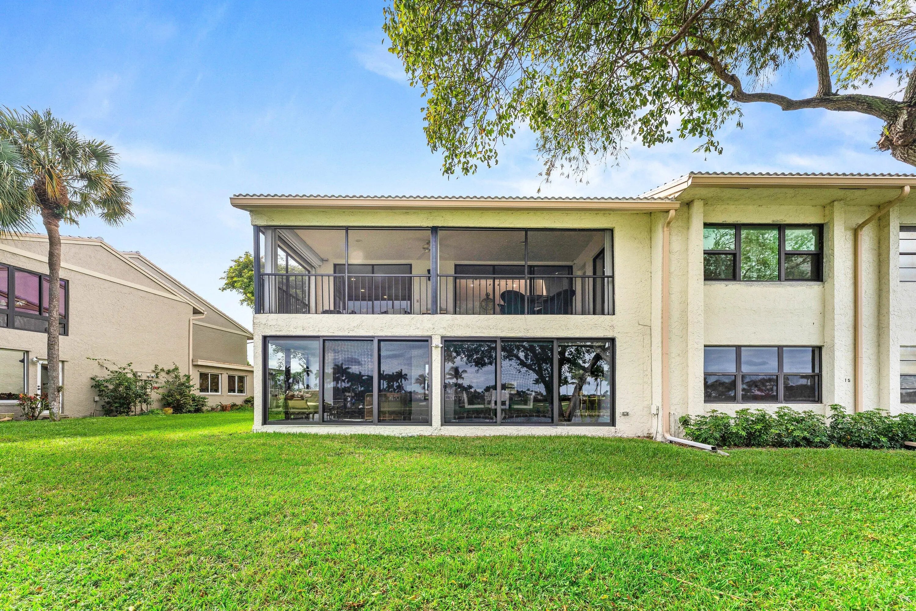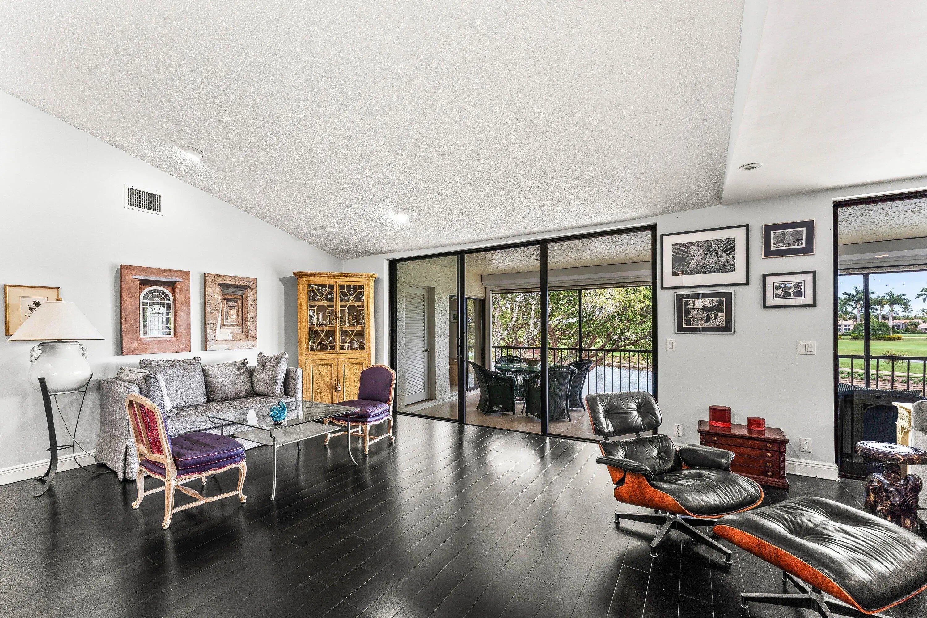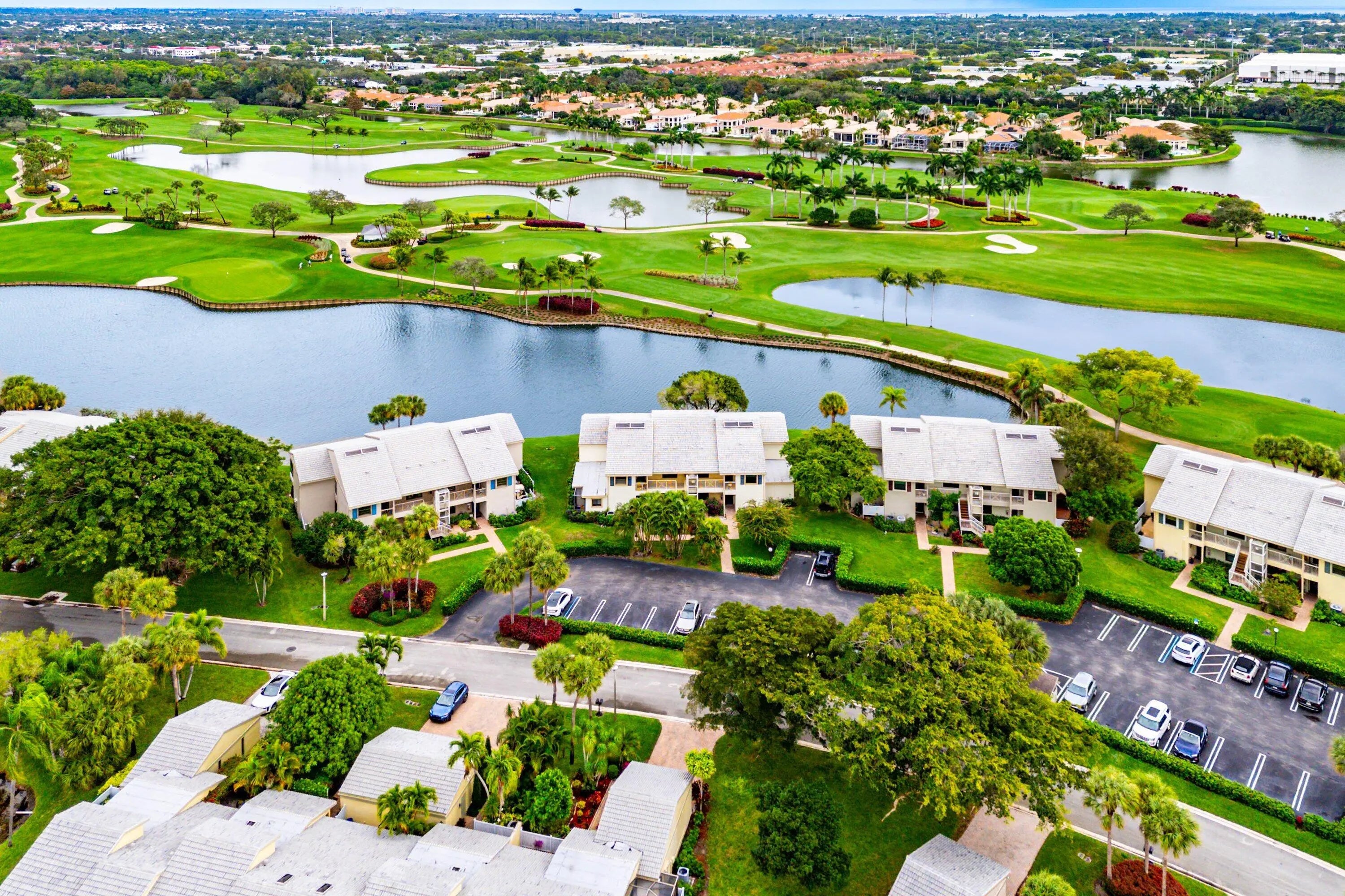 Welcome home to this exceptional, recently renovated upper-floor condominium where vaulted ceilings and refined finishes frame breathtaking views across the newly renovated East Course and a shimmering lake. This distinctive convertible 3-bedroom, 2-bath home offers a sophisticated open-concept design enhanced by bamboo flooring and an updated chef's kitchen featuring high-end appliances, custom lighting, & elegant flow for both entertaining and everyday living. Walls of new hurricane impact windows flood the home with natural light while offering peace of mind, and the screened lanai is equipped with Storm Smart category electric hurricane shutters to enjoy indoor-outdoor living. Additional highlights include a newer A/C system, full-size washer and dryer, and convenient elevator access
