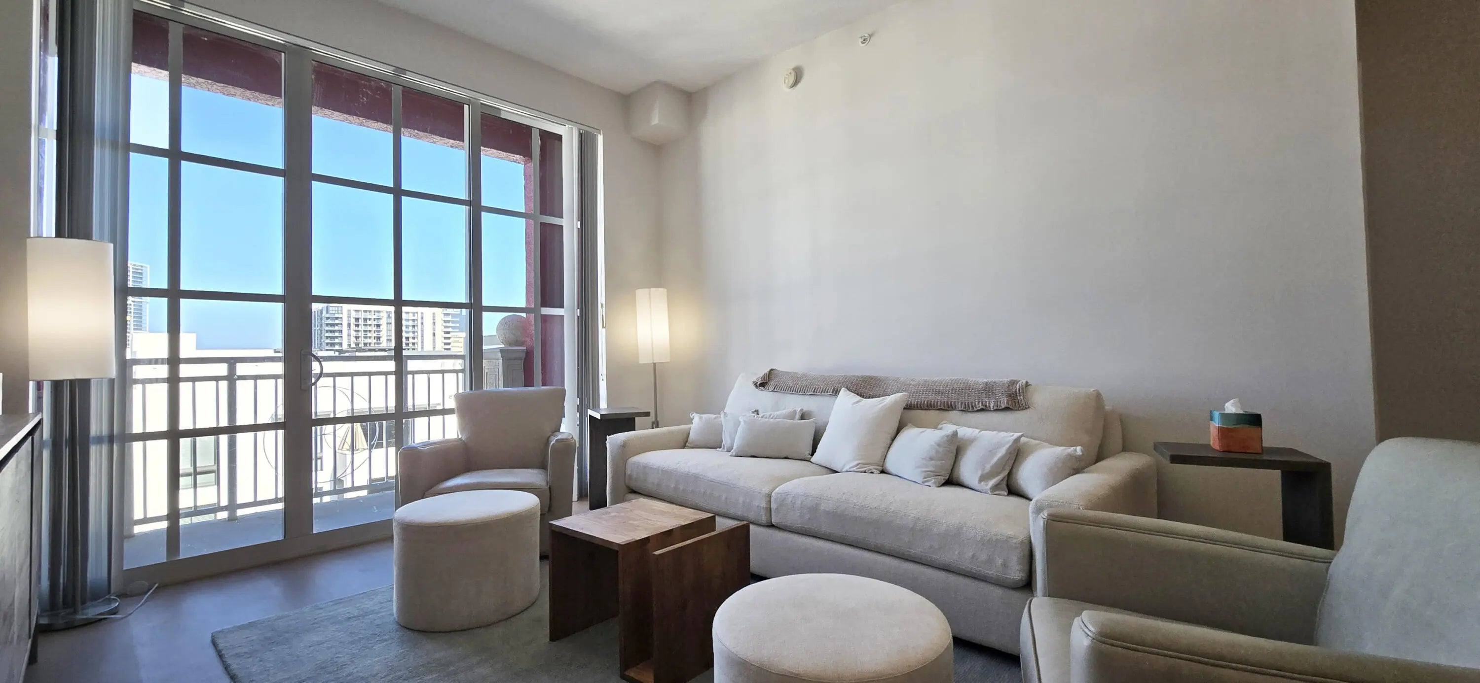 Welcome to the penthouse at The Whitney. Residence 827 offers over 1,100 square feet of living space with soaring ceilings and sweeping city views. This thoughtfully designed split floor plan features new appliances, new flooring, modern cabinetry, and stylish furnishings throughout. The condo is available furnished or unfurnished, providing flexibility to suit your lifestyle.The Whitney delivers full-service luxury living with a state-of-the-art fitness center, 24-hour concierge, on-site mini-mart, and gated garage parking. Perfectly positioned in the heart of West Palm Beach, you are just steps from the Brightline, CityPlace, Clematis Street, and the Flagler waterfront, placing the best dining, shopping, and entertainment right outside your door.