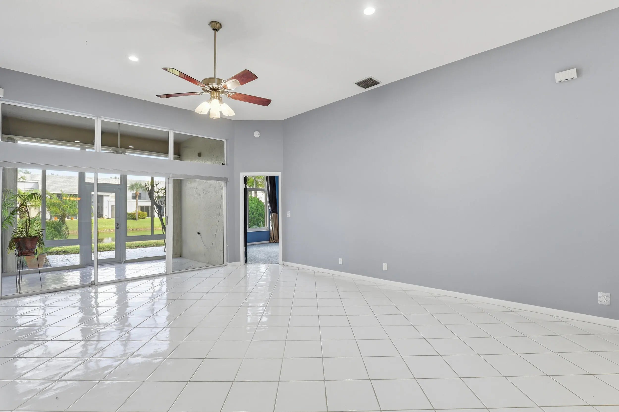 Enjoy relaxed South Florida living in this inviting 3-bedroom, 2-bath villa in the heart of Delray Beach. Surrounded by some of the area's finest country clubs, this light-filled home features 10-foot ceilings, an open-concept layout, hurricane impact windows, and beautiful lake views. The spacious living and dining areas flow effortlessly into a fully enclosed impact glass all-weather room, creating additional living space perfect for year-round enjoyment. Just beyond, a 12-foot oversized exterior patio offers the ideal setting for morning coffee, casual dinners, or unwinding at the end of the day while taking in the tranquil surroundings.Thoughtful updates provide peace of mind and everyday comfort, including a newly renovated kitchen, an updated bathroom, new appliances, hurricane